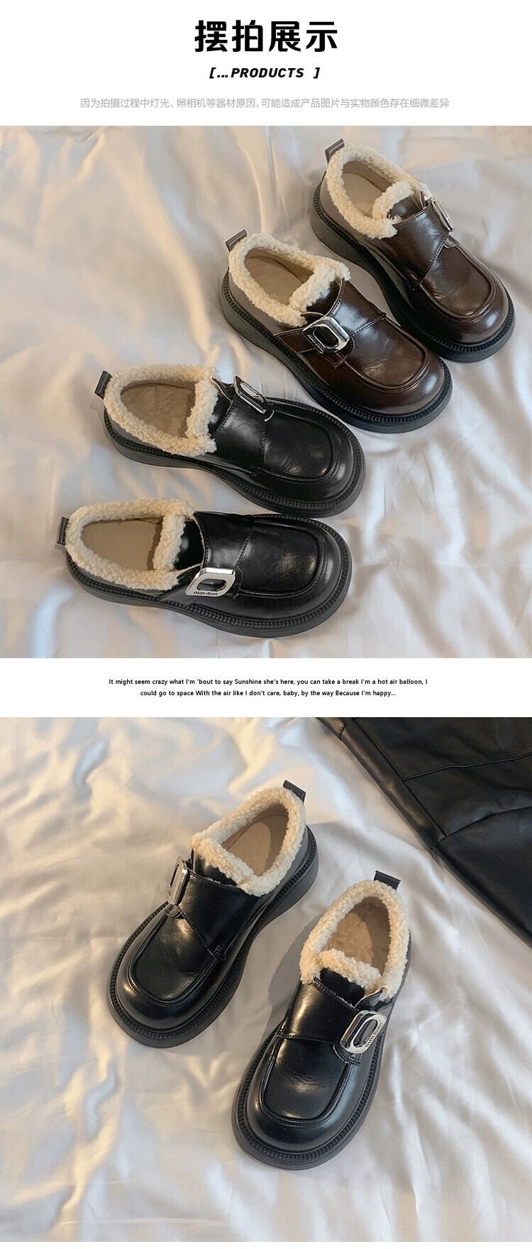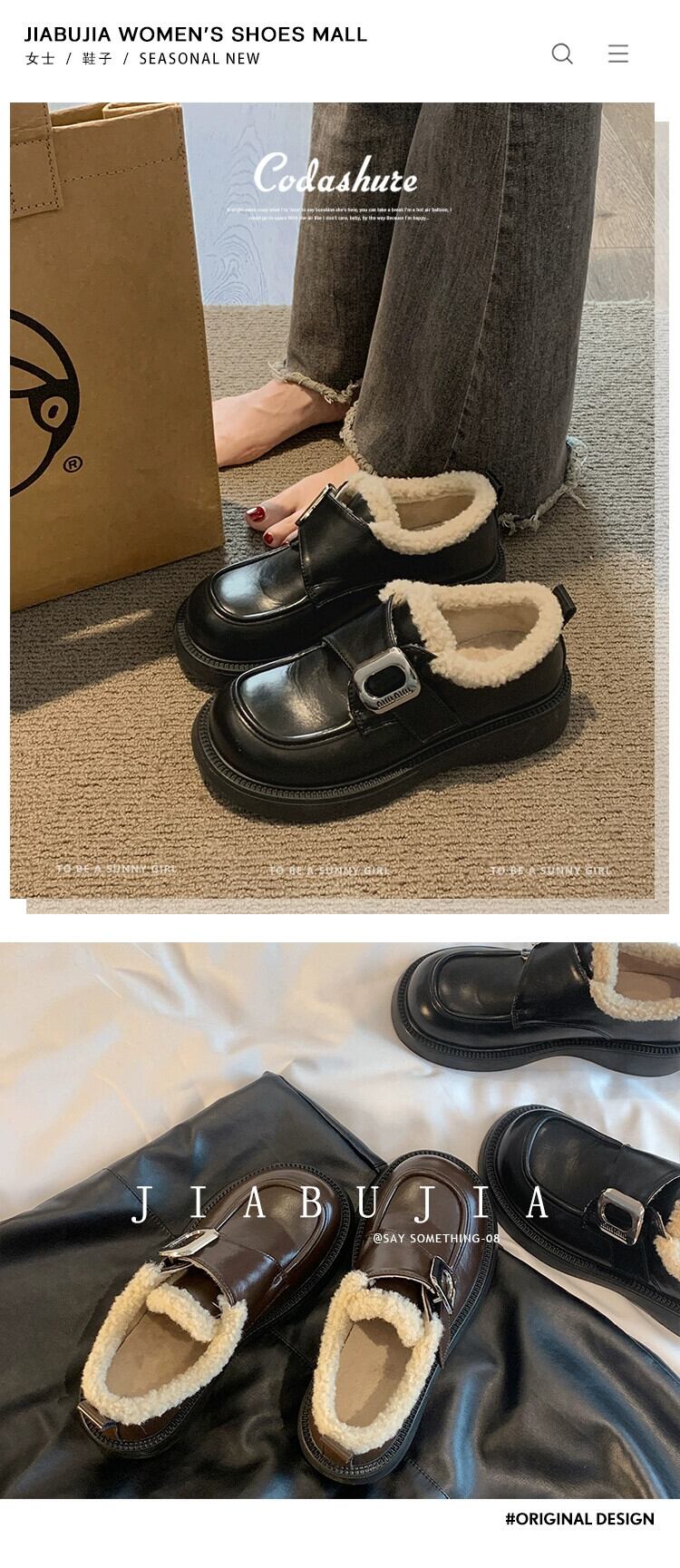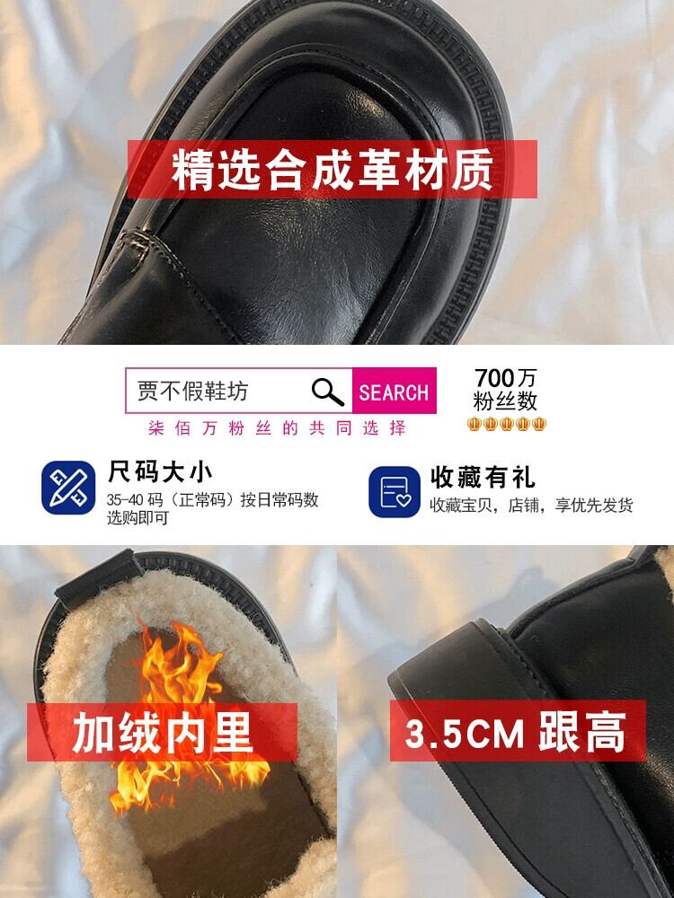 Jia Bujia ベルベットの小さな革の靴の女性 2023 秋と冬の新靴黒の厚底ローファー ese スタイルの靴 シューズ ブラック オータム 秋物 ウィンター 冬物 レザー jxjxf37628858679