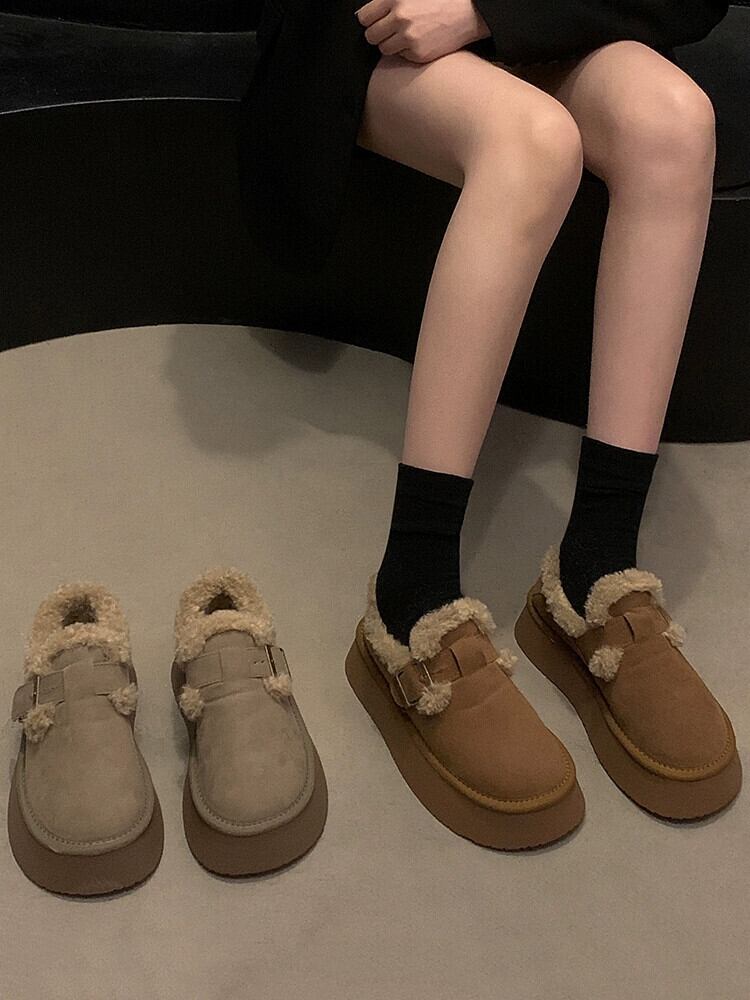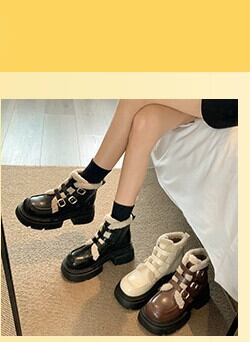 Jia Bujia レディース コットン シューズ 2024 春レトロ多用途小型厚底暖かいスノーブーツ 靴 スプリング 春物 jxjxf7674391617