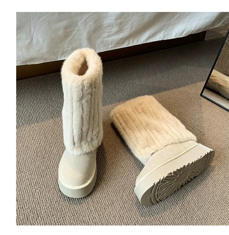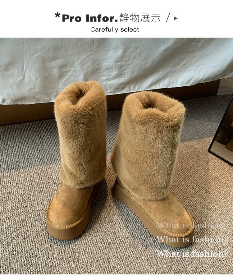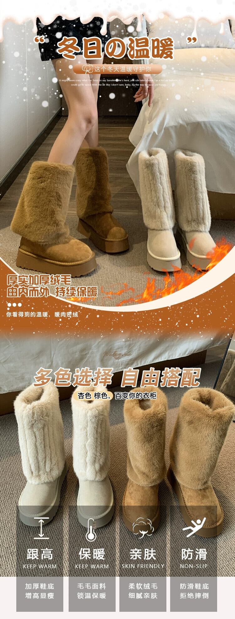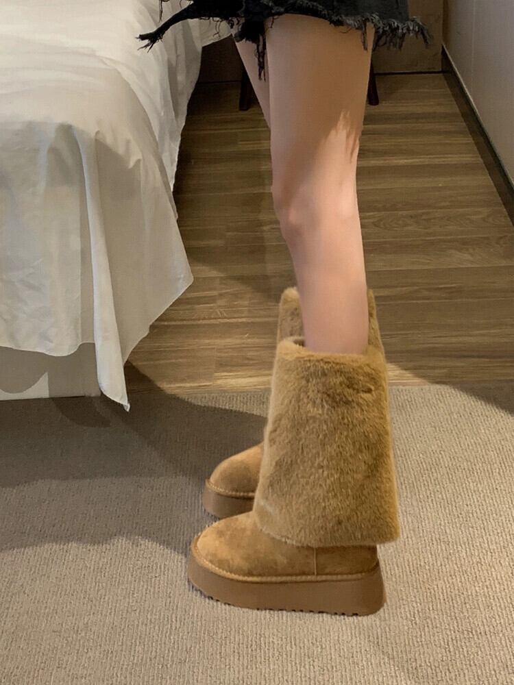 Jia Bufake スノーブーツ女性 2024 春の新スタイルレトロ多用途小型厚底ミッドカーフコットンブーツトレンディ 靴 シューズ スプリング 春物 jxjxf70666490745