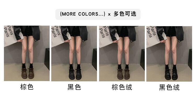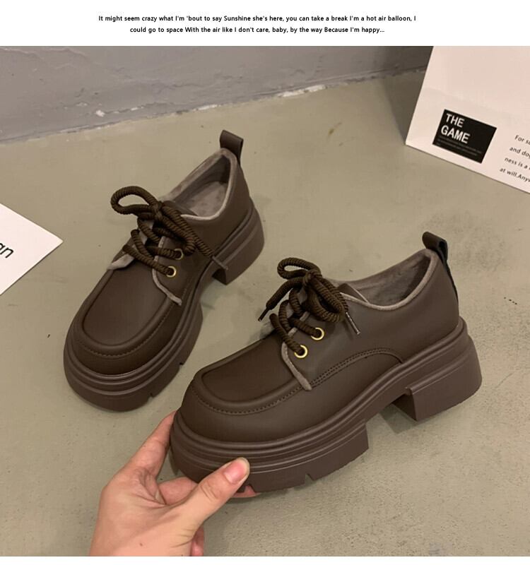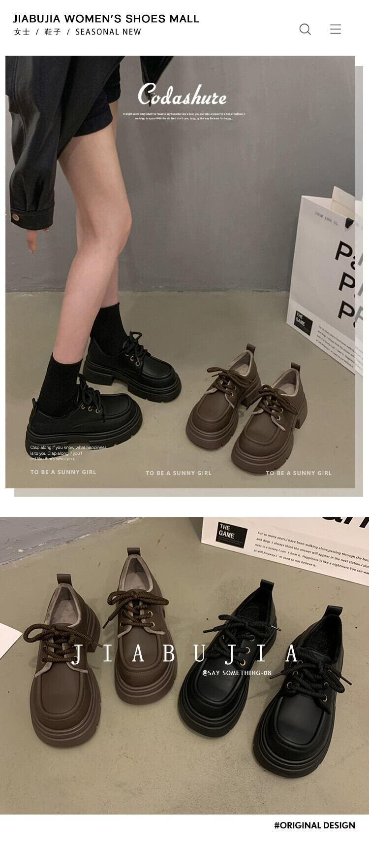 Jia Bujia 英国スタイルの小さな革の靴の女性 2023 冬の新ファッショナブルなフレンチスタイルの太いヒールとベルベットの靴 シューズ ウィンター 冬物 レザー jxjxf51044827701