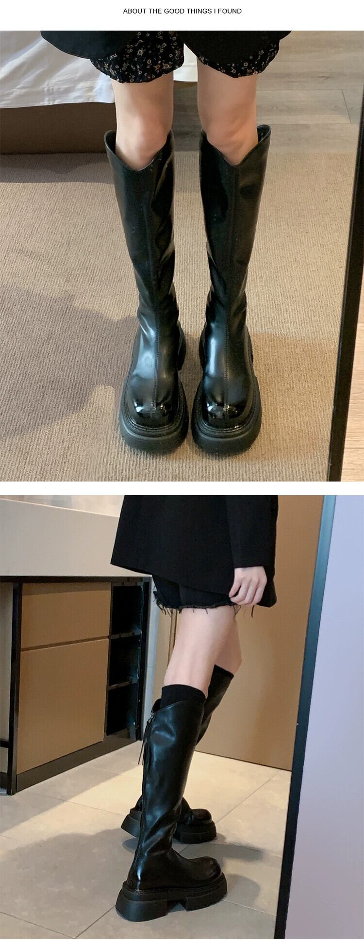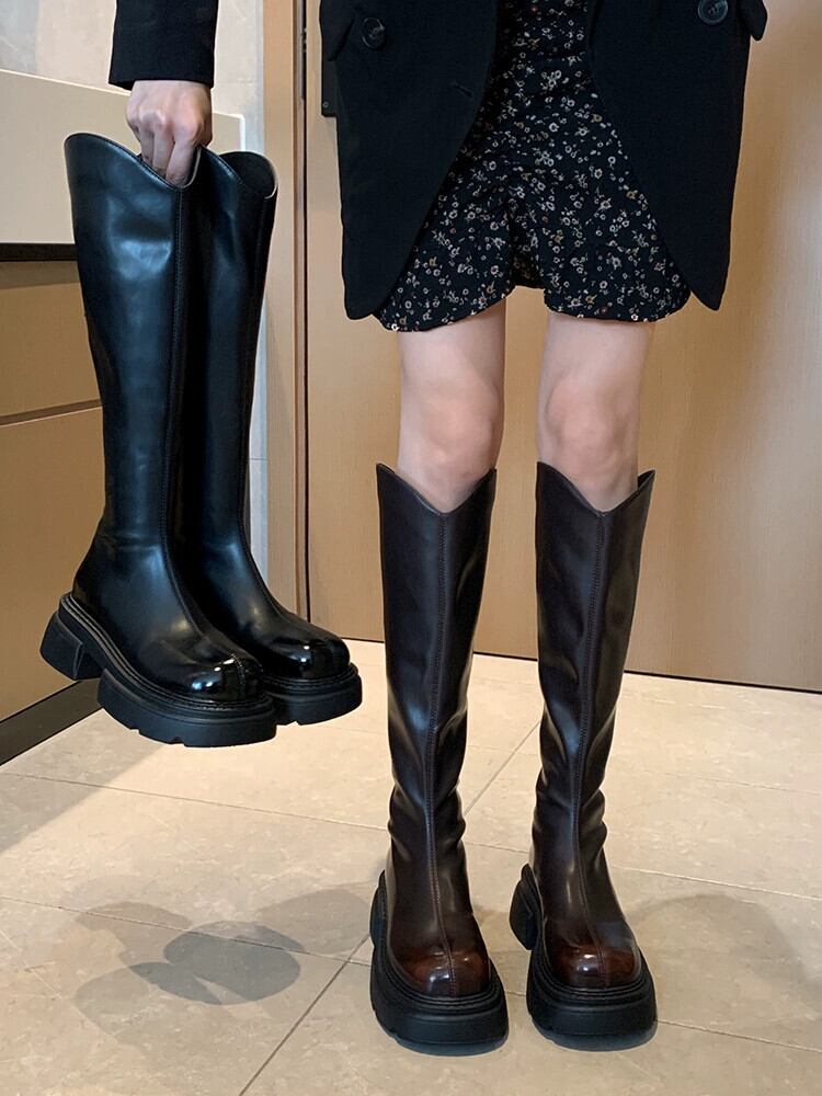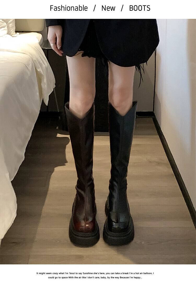 Jia Bufake ブーツの女性 2024 春の新スタイルのインターネット有名人レトロ多用途ハンサムな厚底プラスベルベットスリムブーツトレンディな 靴 シューズ スプリング 春物 jxjxf94066021871