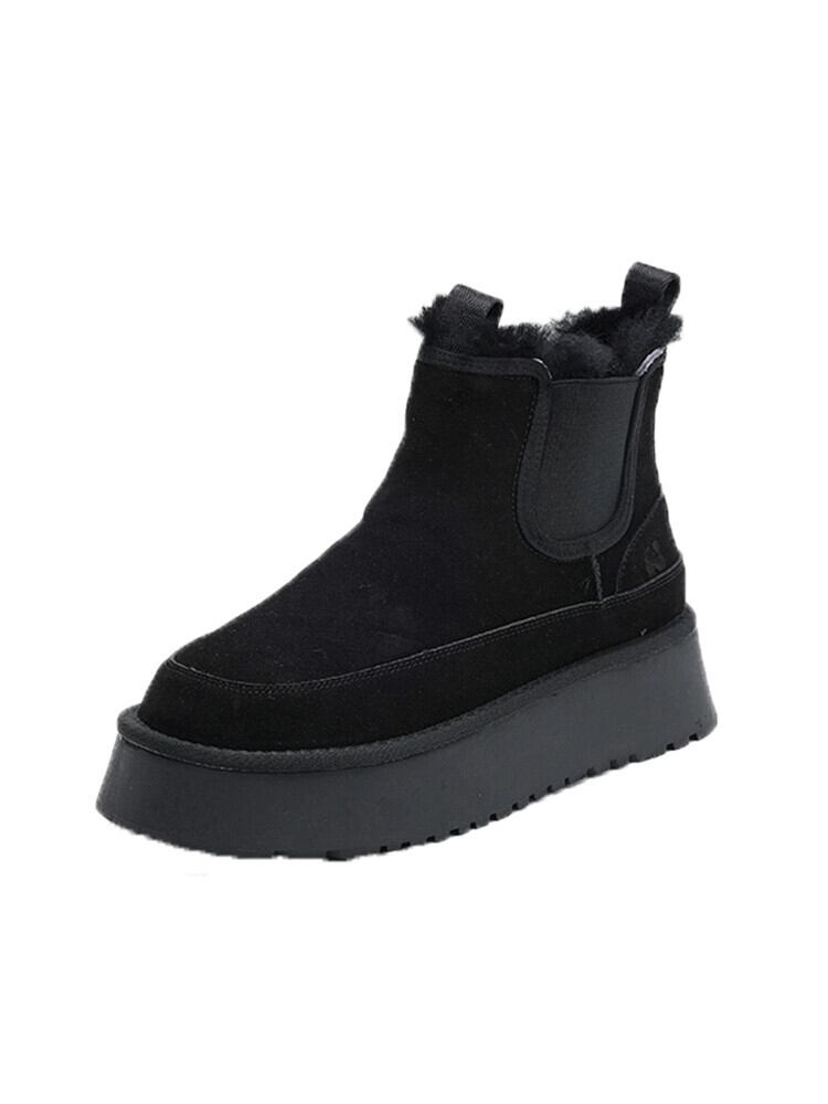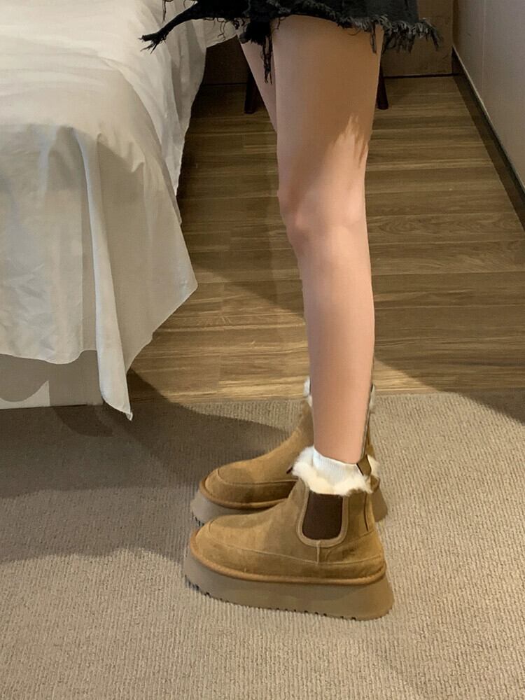 Jia Bufake スノーブーツ レディース 2024 春の新スタイル フレンチ スタイル レトロ プラス ベルベット 厚底 弾性 ショート ブーツ トレンディ 靴 シューズ エラスティック 伸縮 スプリング 春物 jxjxf12674031701