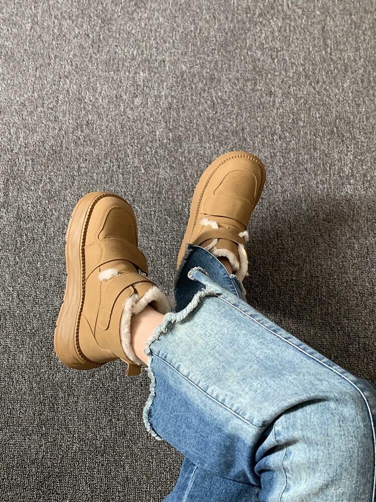 Jia Bujia 春のスノーブーツの女性 2024 スタイルベルクロ多用途ノンスリップ厚底コットンシューズ 靴 スプリング 春物 jxjxf18519322079