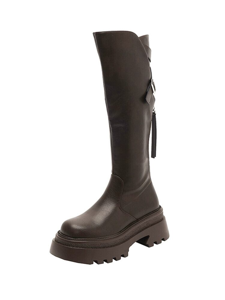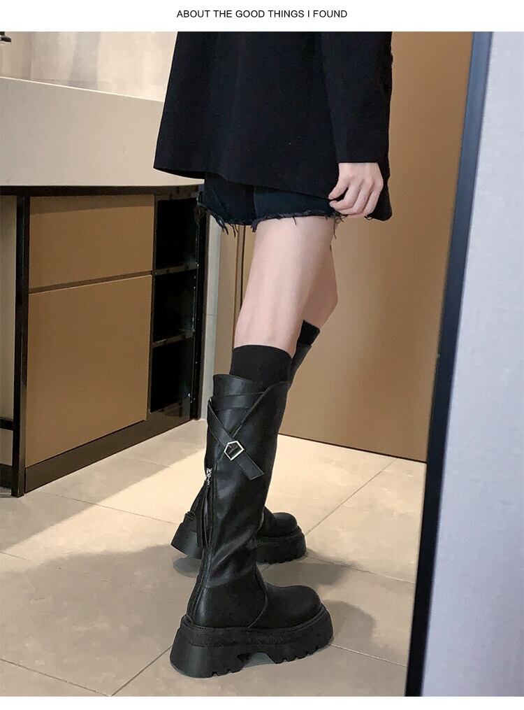 Jia Bufake ブーツの女性 2024 春の新しい気質多目的ベルトバックルプラスベルベット厚いヒールスリムブーツトレンド 靴 シューズ スプリング 春物 ハーネス jxjxf60427012149