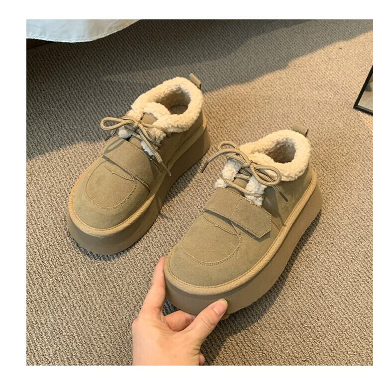 Jia Bujia カジュアルシューズの女性 2024 春の新スタイルフレンチスタイルオールマッチファッションノンスリップ厚い底プラスベルベットの綿の靴 コットン スプリング 春物 jxjxf13289635164