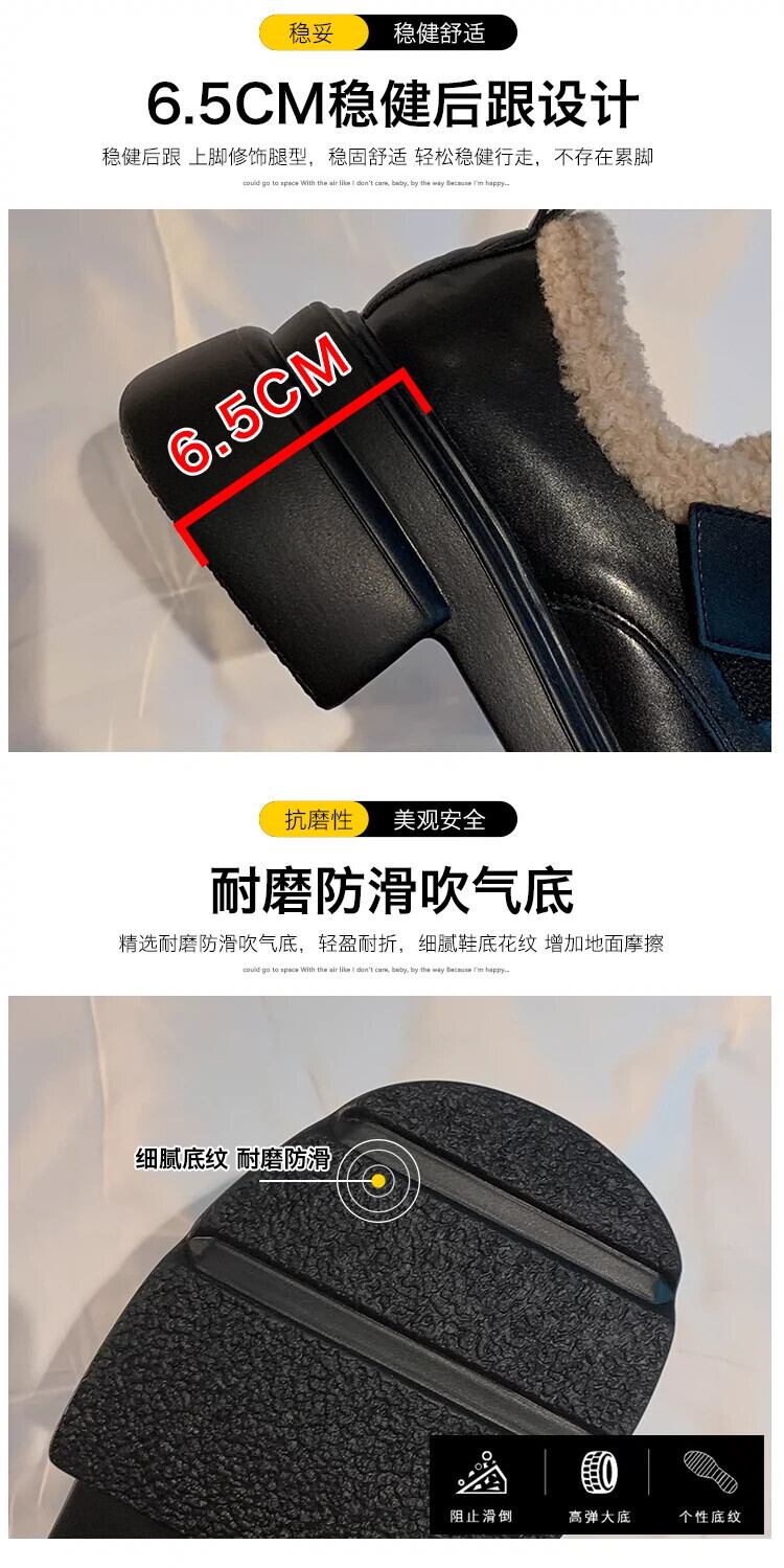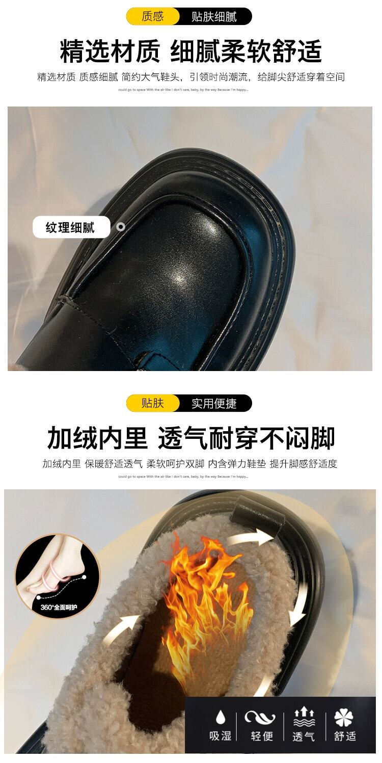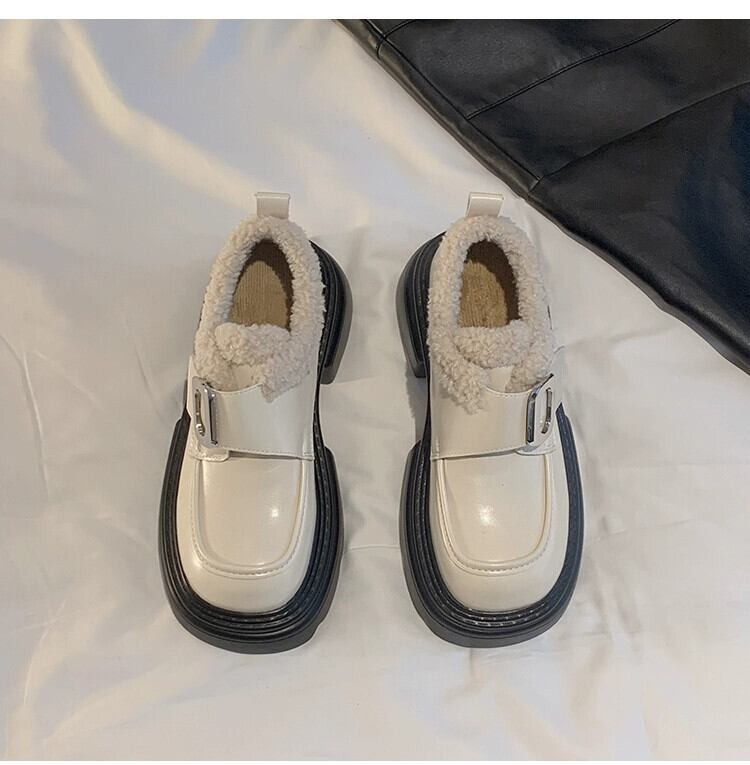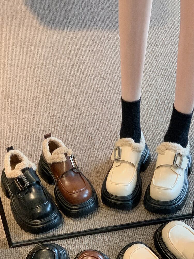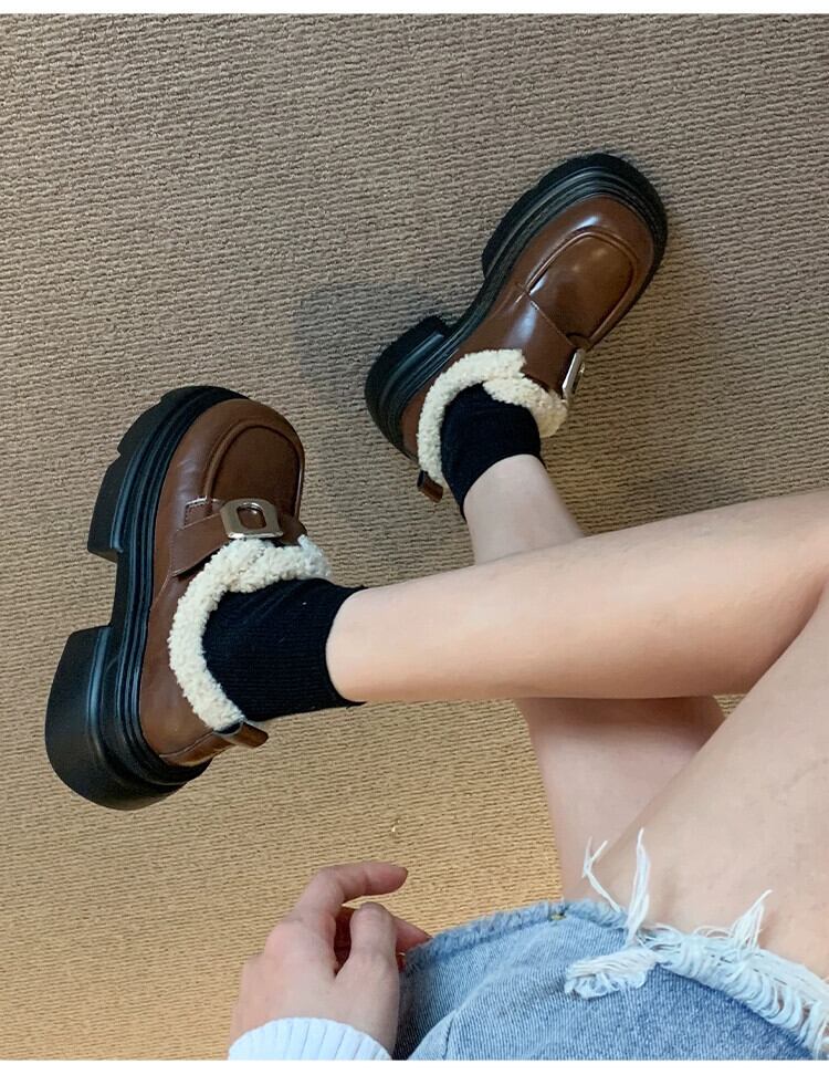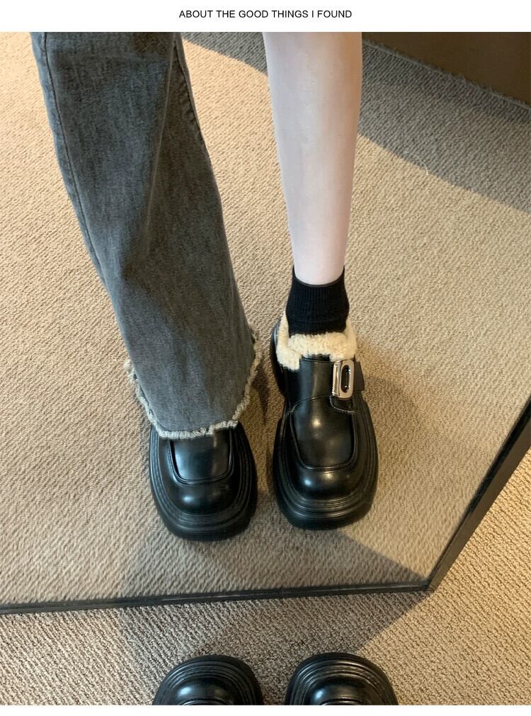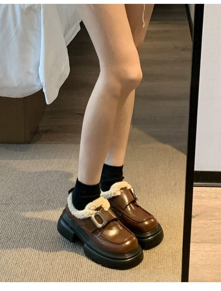Jia Bujia インターネット有名人のシングルシューズの女性 2023 冬の新ファッション暖かくスタイリッシュなレトロな厚底プラスベルベットの小さな革靴 ウィンター 冬物 レザー jxjxf15654201708