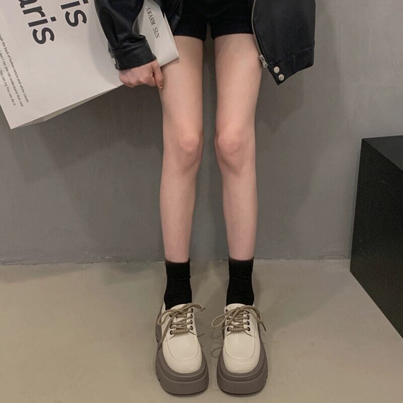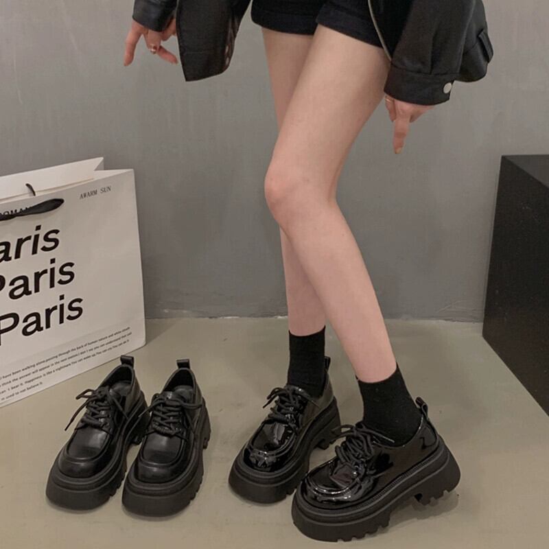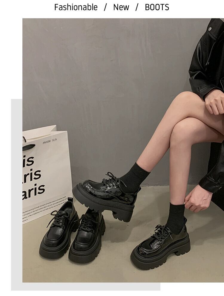 Jia Bujia 英国スタイルの革の靴の女性 2024 春と秋の新スタイルのファッショナブルな気質快適な厚いヒールを高めるシングルシューズのトレンド スプリング 春物 オータム 秋物 レザー jxjxf39954082695