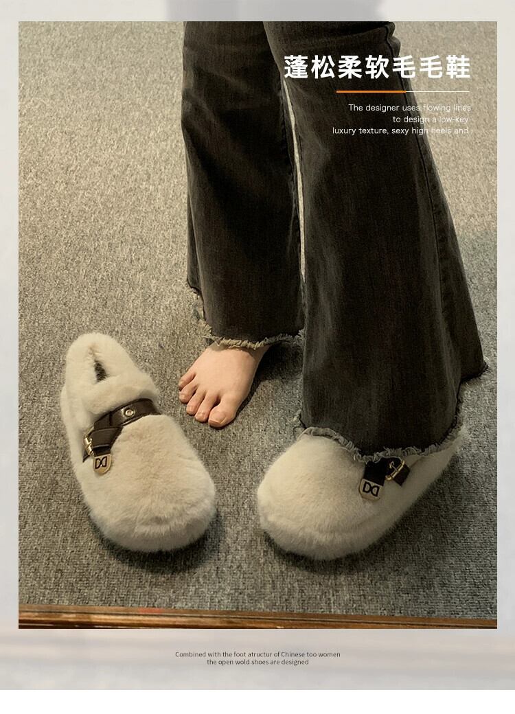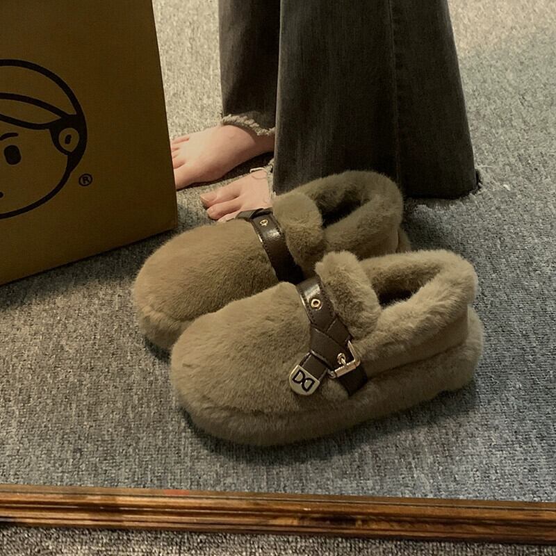 Jia Bu フェイクコットンシューズの女性の 2024 春レトロ西洋スタイルプラスベルベット暖かい厚底 Comtable 毛皮の靴 スプリング 春物 jxjxf21980929221