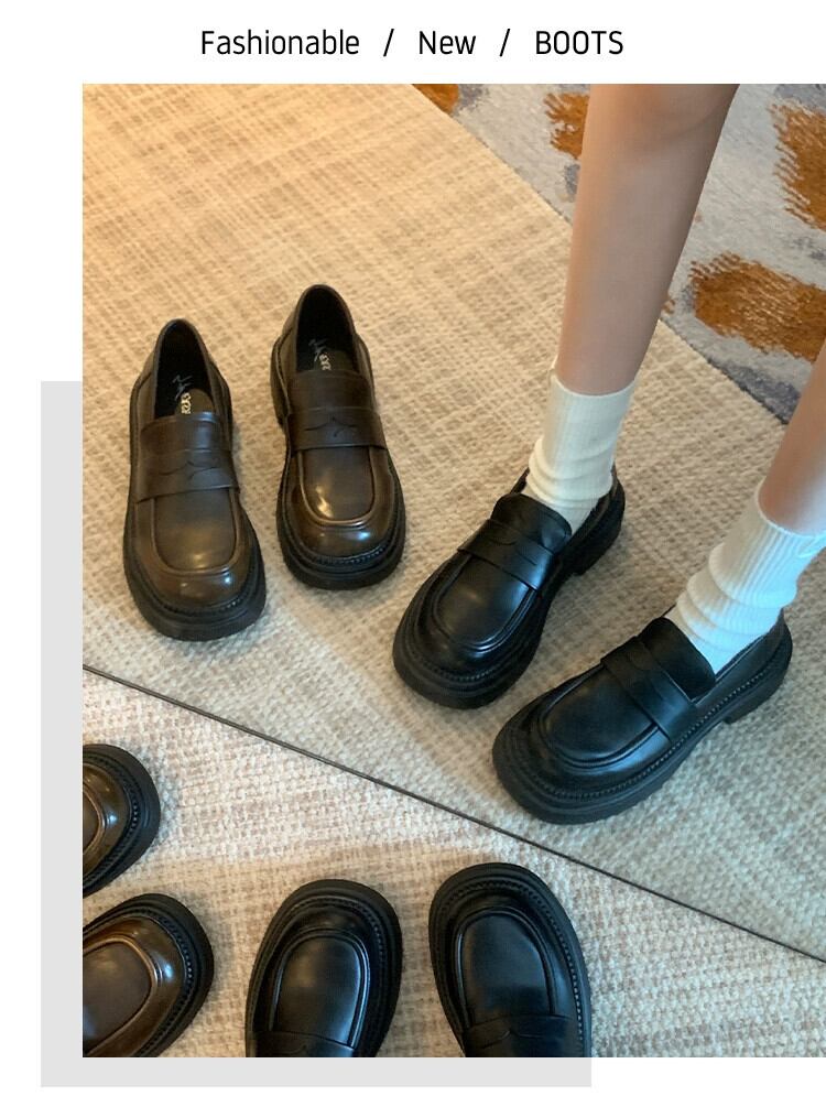 Jia Bufake 小さな革靴の女性 2024 春の新スタイルの小さな黒の厚底多用途英国スタイルのローファー シューズ ブラック スプリング 春物 レザー jxjxf10827523235