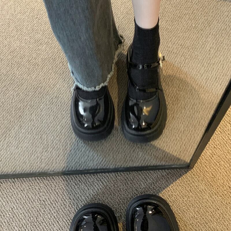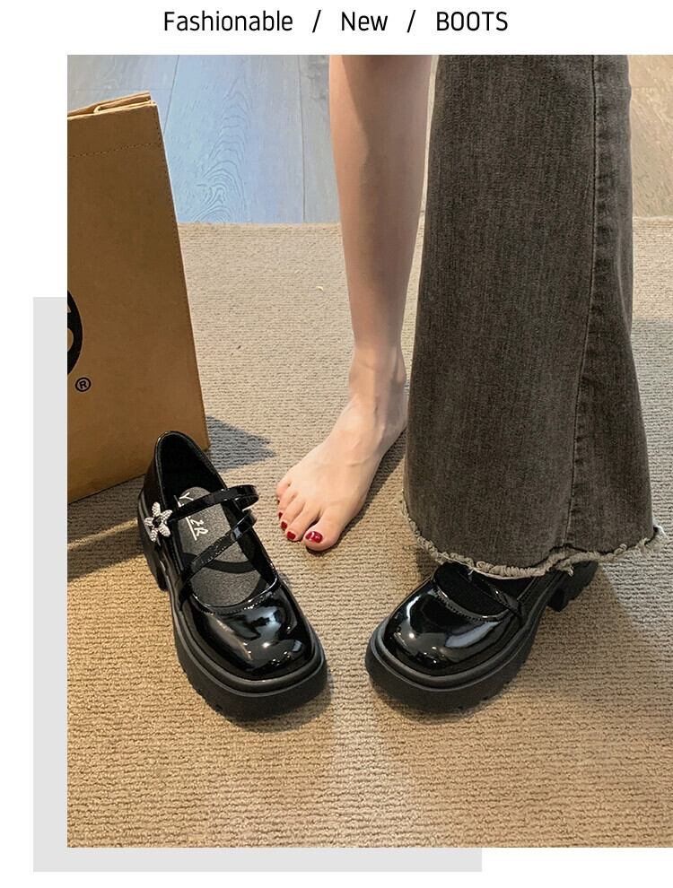 Jia Bujia メリージェーンシューズ レディース 2024 春秋スタイル多用途、優しい、小さな厚底の小さな革靴 スプリング 春物 オータム 秋物 レザー jxjxf74732951123