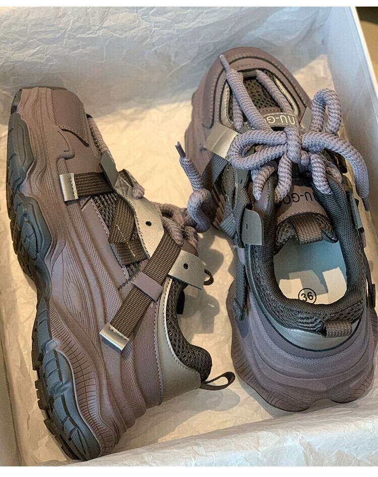 Jia Bufake ダッドシューズ レディース 2024 春 多用途 通気性 ランニング 厚底 高さを高める スポーツシューズ 靴 スプリング 春物 jxjxf94749315357