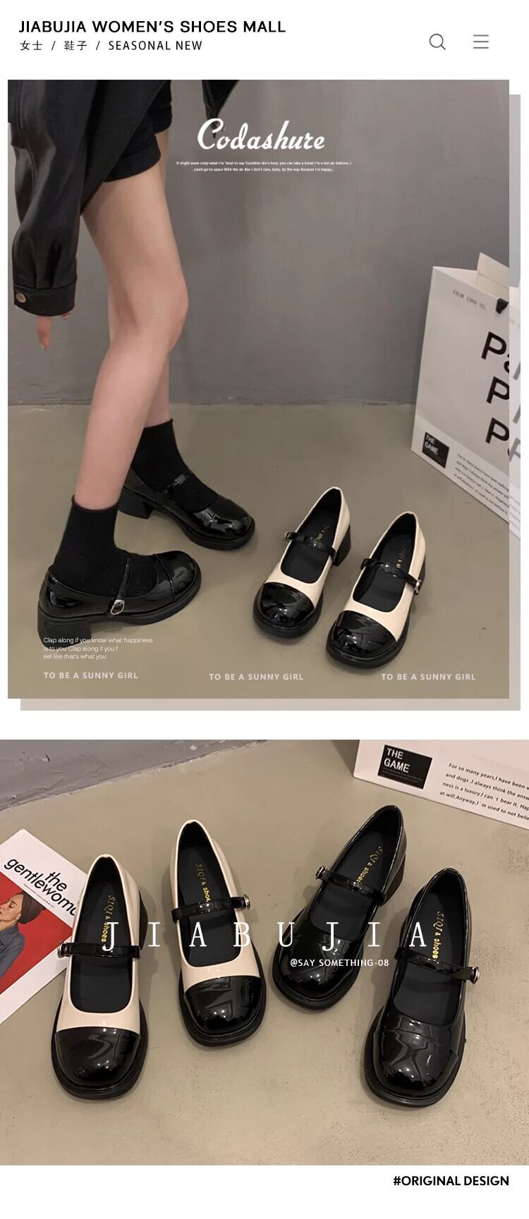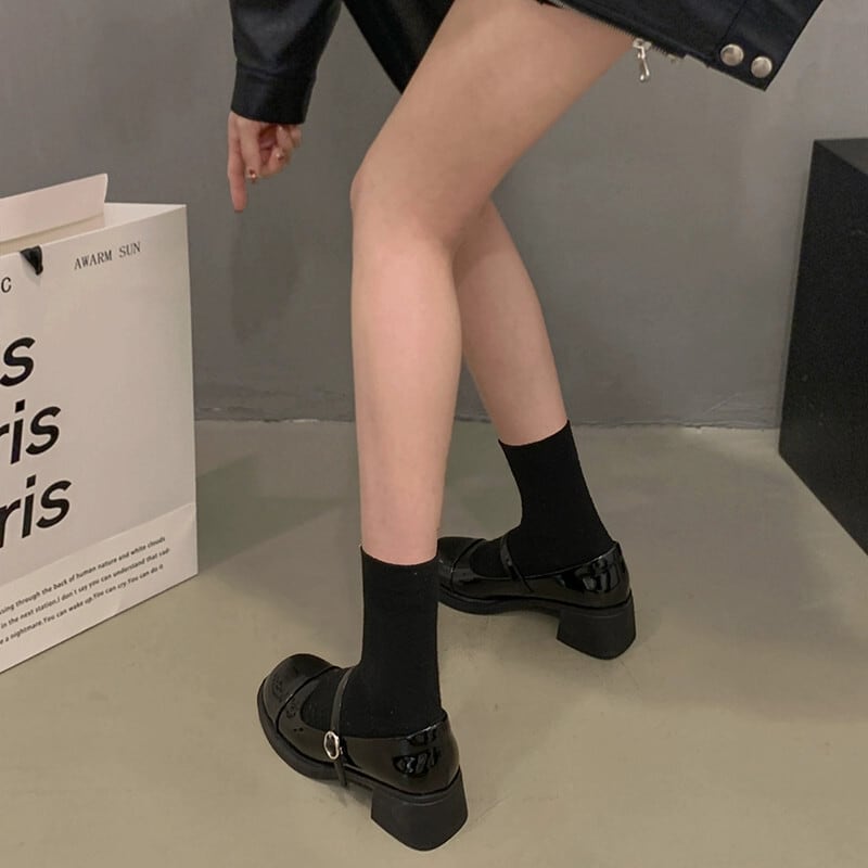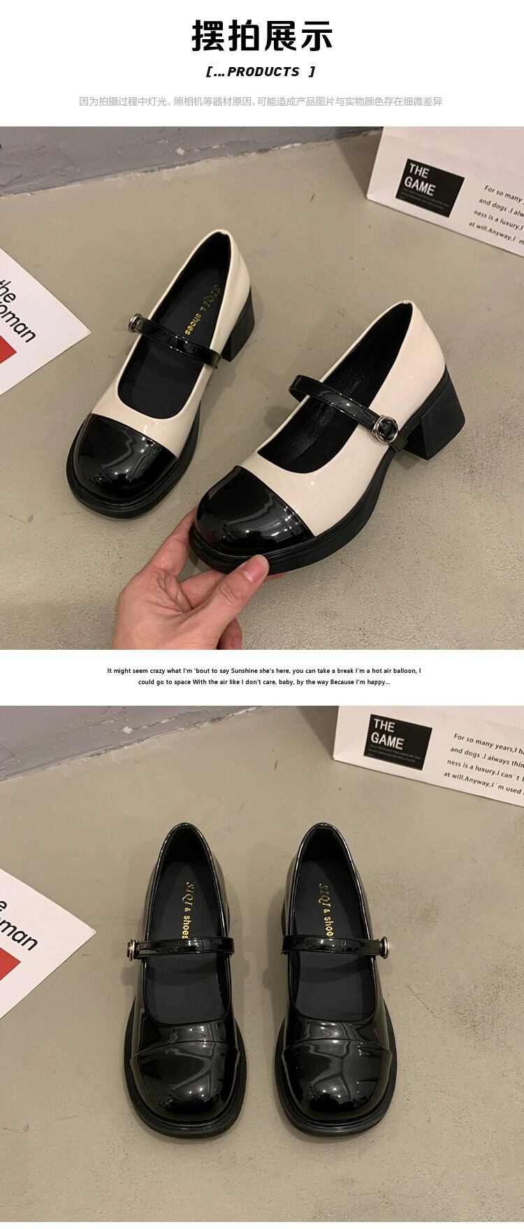 Jia Bufake メリージェーンの靴の女性の 2024 春と秋のスタイルのシングルシューズ多用途フレンチレトロ太いヒールの小さな革の靴 スプリング 春物 オータム 秋物 レザー jxjxf86587142024