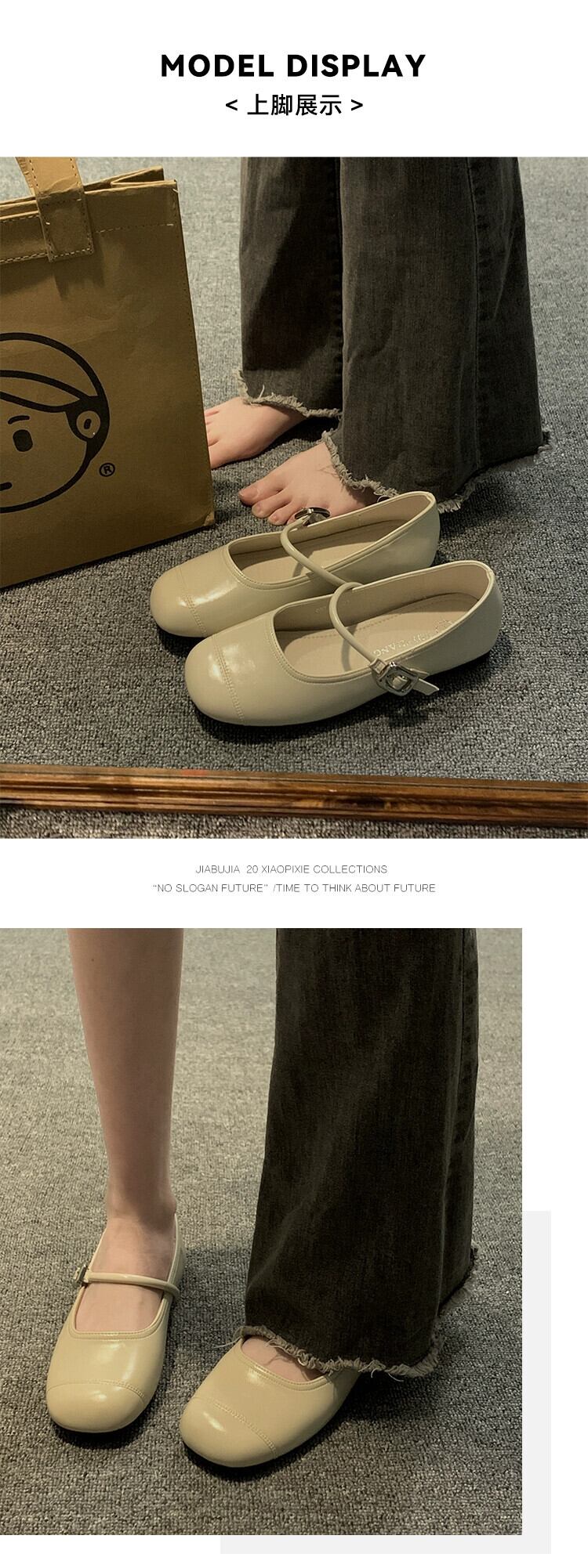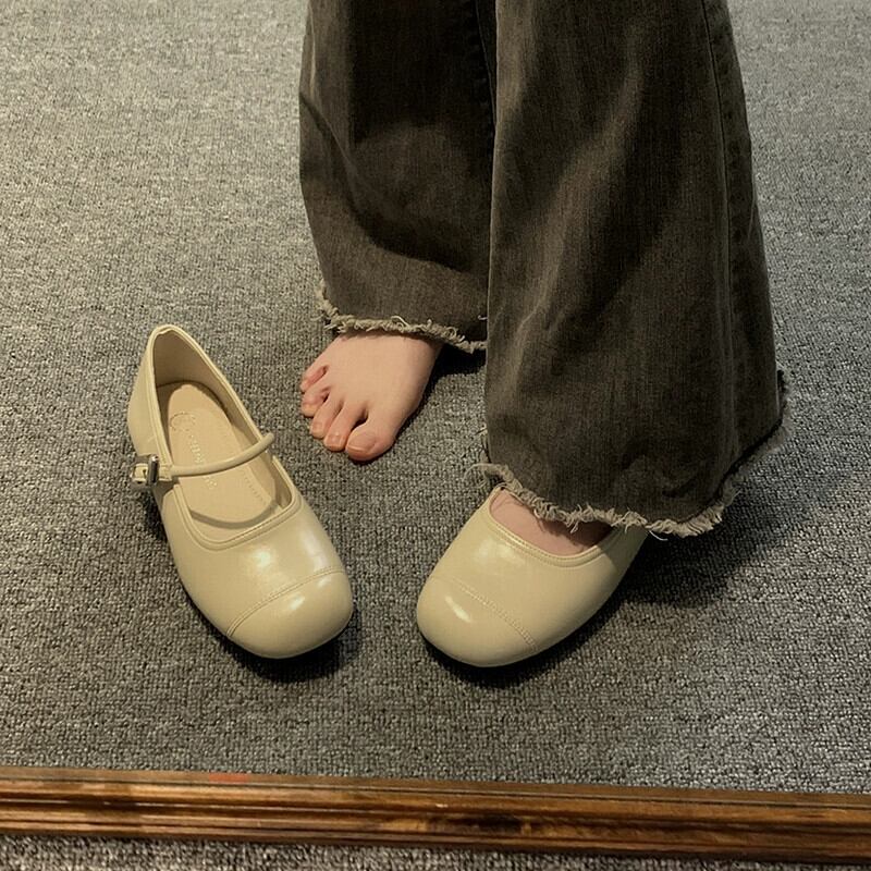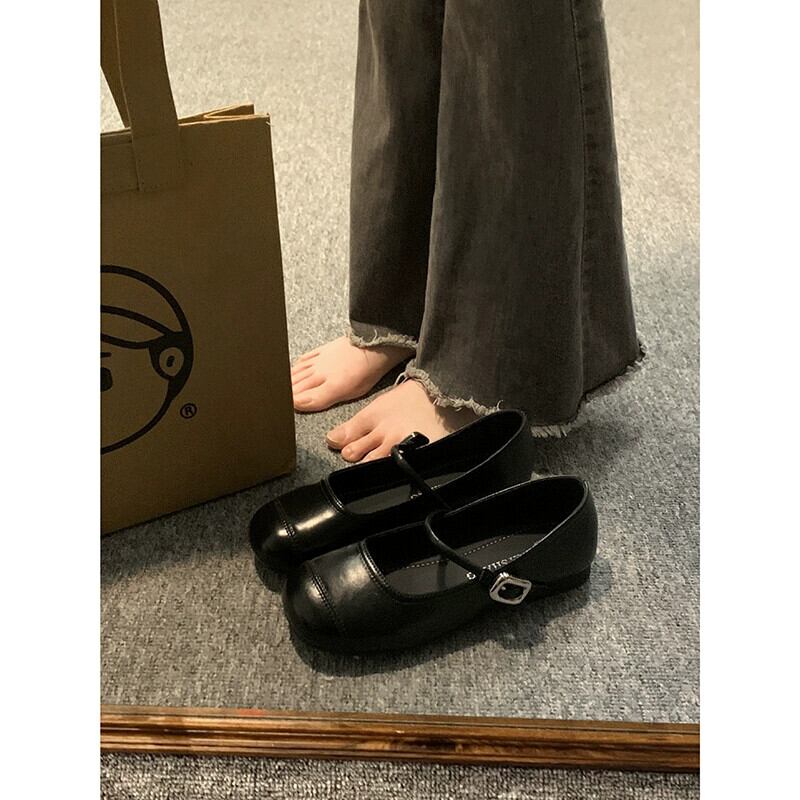 Jia Bufake メリージェーンシューズ レディース 2024 春と秋の多用途フラットシューズ スカート付き 小さな革靴 フレンチシングルシューズ スプリング 春物 オータム 秋物 レザー jxjxf3433667645