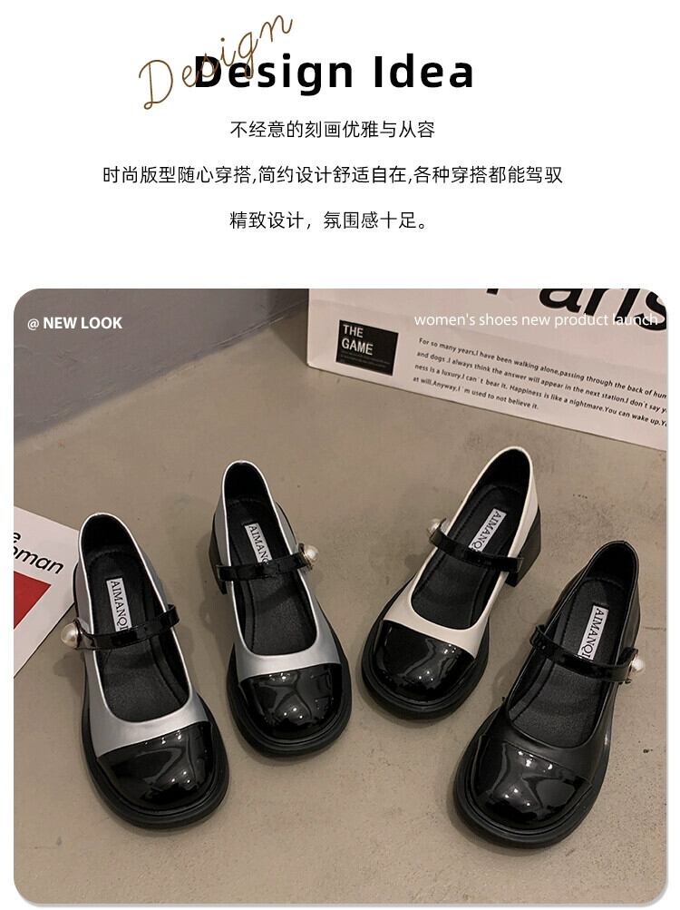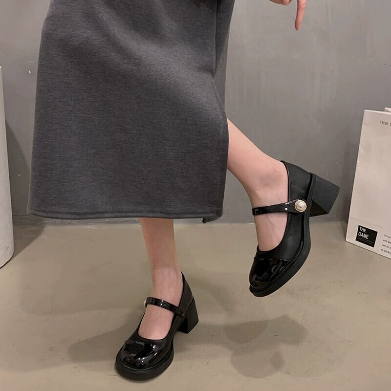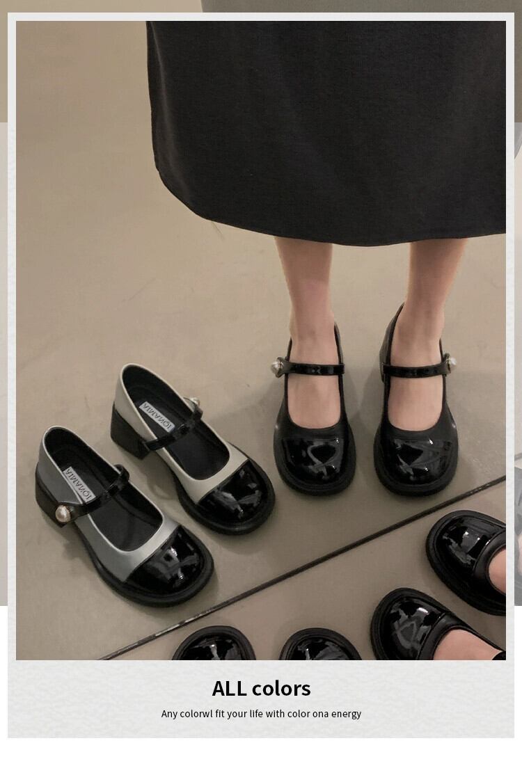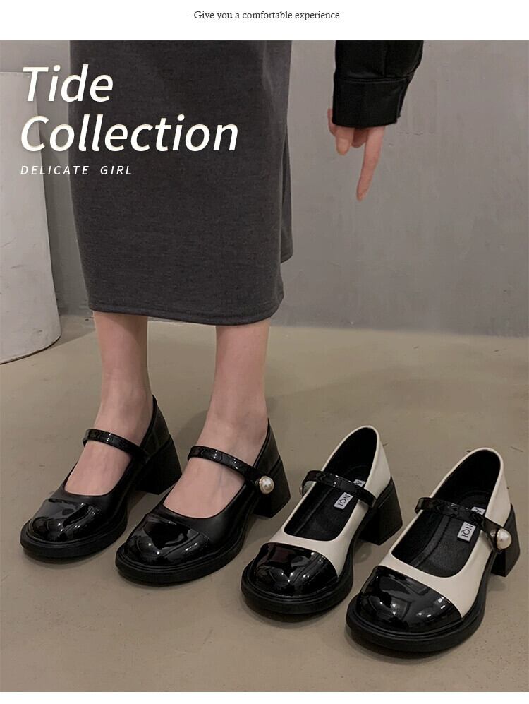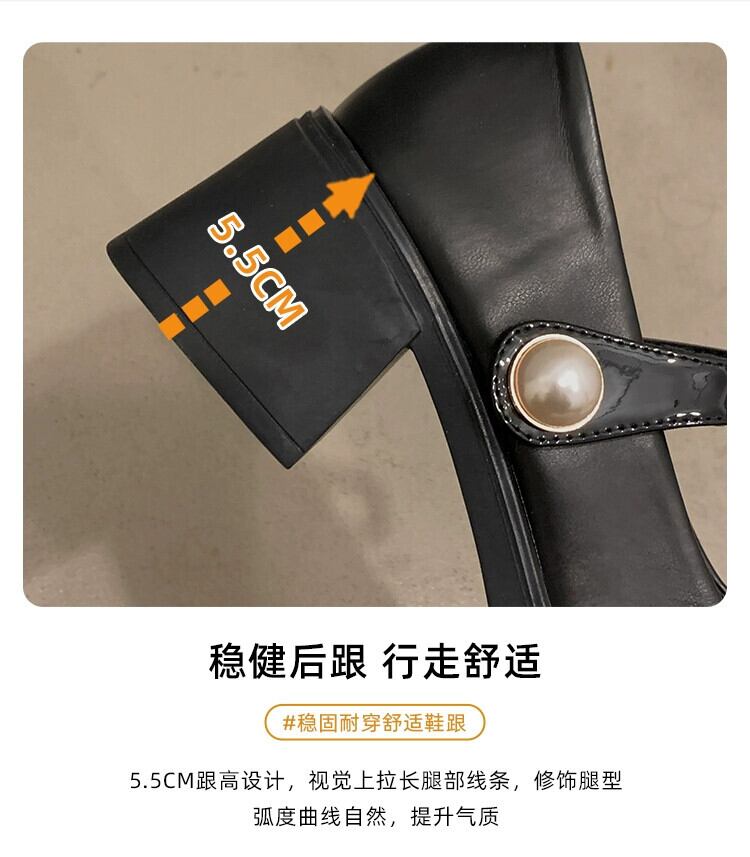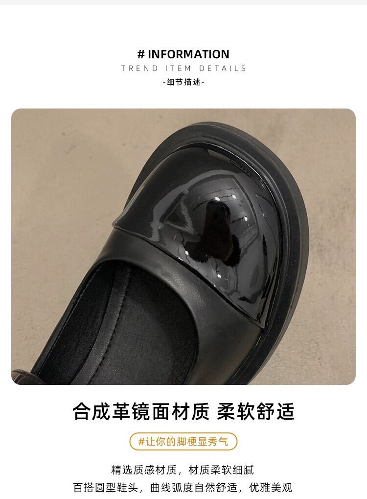 Jia Bufake メリージェーンの靴の女性の 2024 春フレンチスタイルの靴レトロ太いヒールかかと黒の小さな革の靴 シューズ ブラック スプリング 春物 レザー jxjxf41084654036