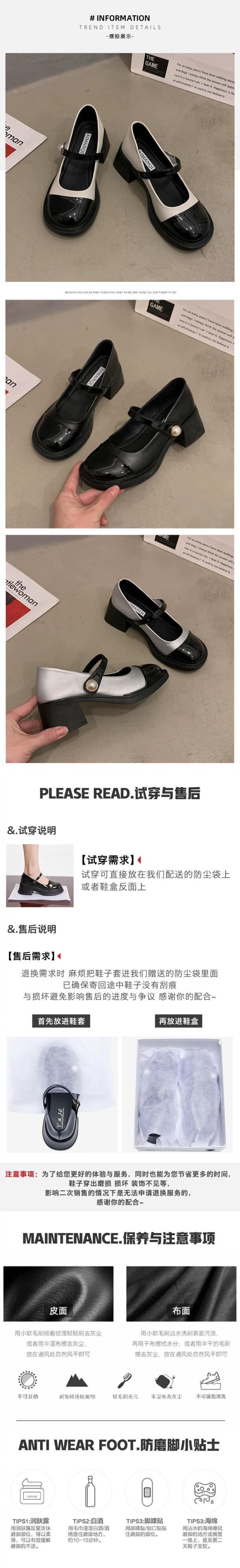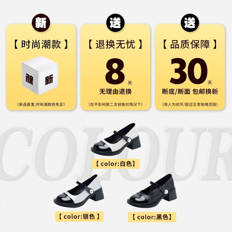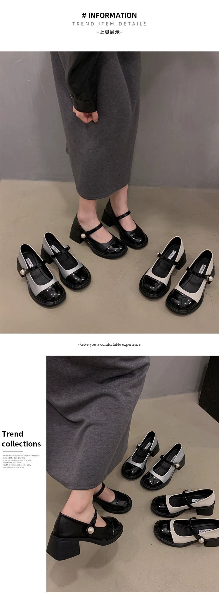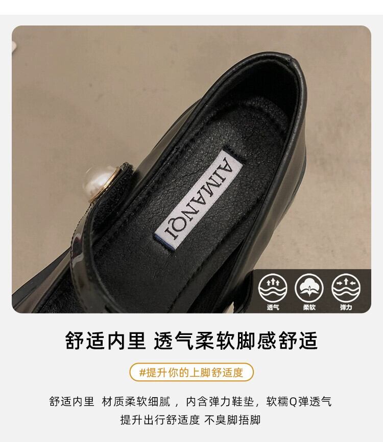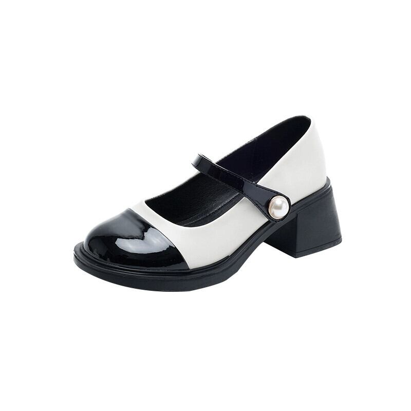 Jia Bufake メリージェーンの靴の女性の 2024 春フレンチスタイルの靴レトロ太いヒールかかと黒の小さな革の靴 シューズ ブラック スプリング 春物 レザー jxjxf41084654036