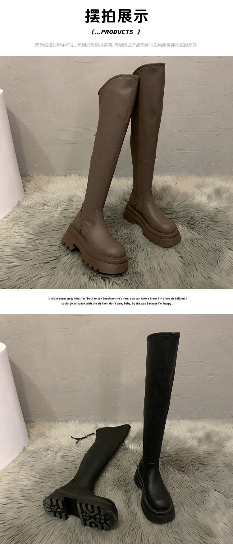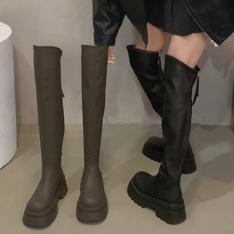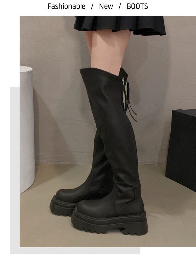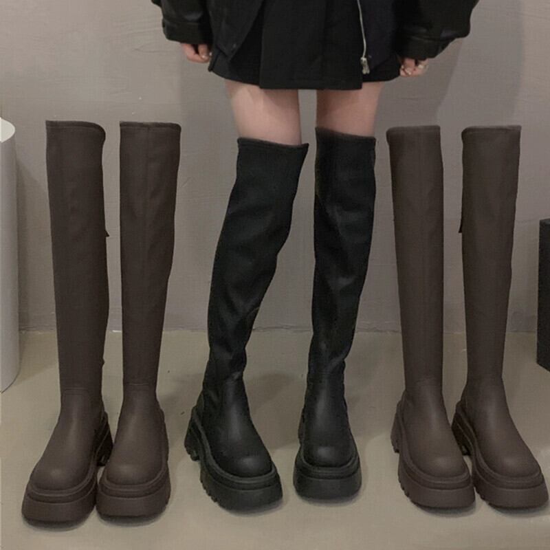 Jia Bujia 膝上ブーツの女性 2024 春の新スタイルファッショナブルで多用途なプラスベルベットの厚底スリムブーツ 靴 シューズ スプリング 春物 jxjxf63110896944