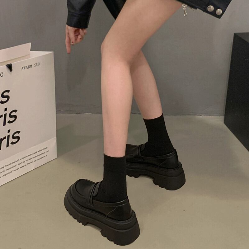 Jia Bufake 小さな革靴の女性 2024 春の新スタイル多用途小さな黒の厚底英国スタイルのローファー シューズ ブラック スプリング 春物 レザー jxjxf98172185296
