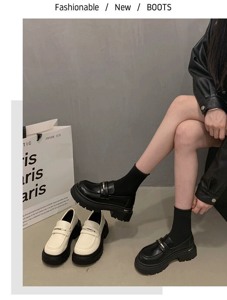 Jia Bufake 小さな革靴の女性 2024 春と秋の新スタイルのシングルシューズ多用途レトロラウンドトゥ厚底ローファー スプリング 春物 オータム 秋物 レザー jxjxf71831979850