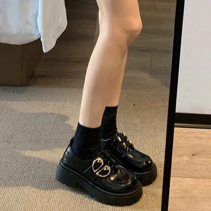 Jia Bufake 小さな革の靴の女性 2024 春の新ローファーレトロ英国スタイルの厚い底多用途黒の靴 シューズ ブラック スプリング 春物 レザー jxjxf46624966387