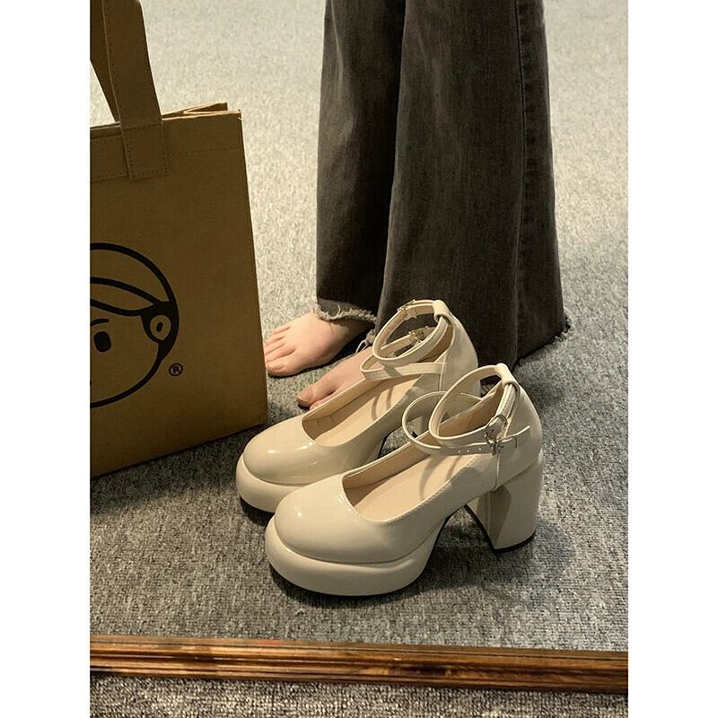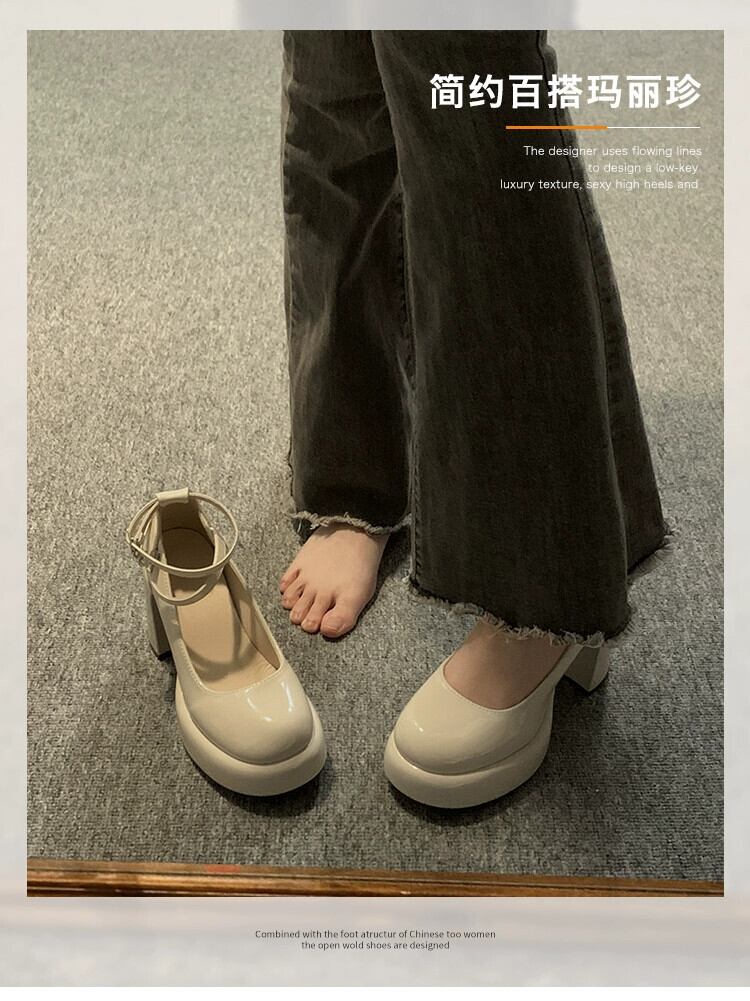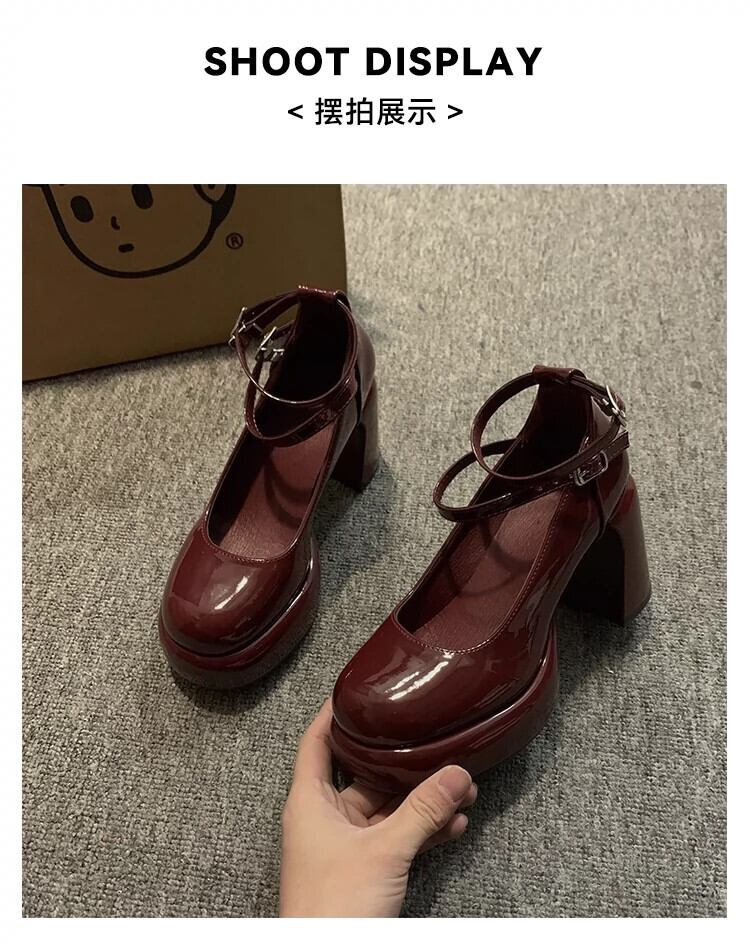 Jia Bufake メリージェーンシューズ レディース 2024 春 レッド 太いヒール 防水 プラットフォーム スモール ブラック ヒール 靴 スプリング 春物 jxjxf30437545371