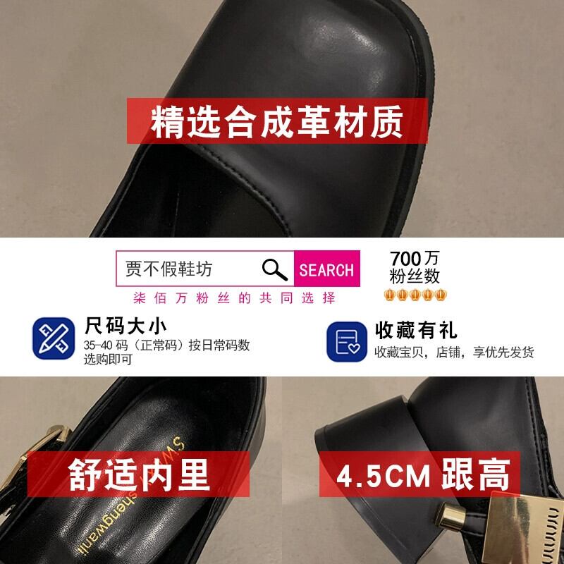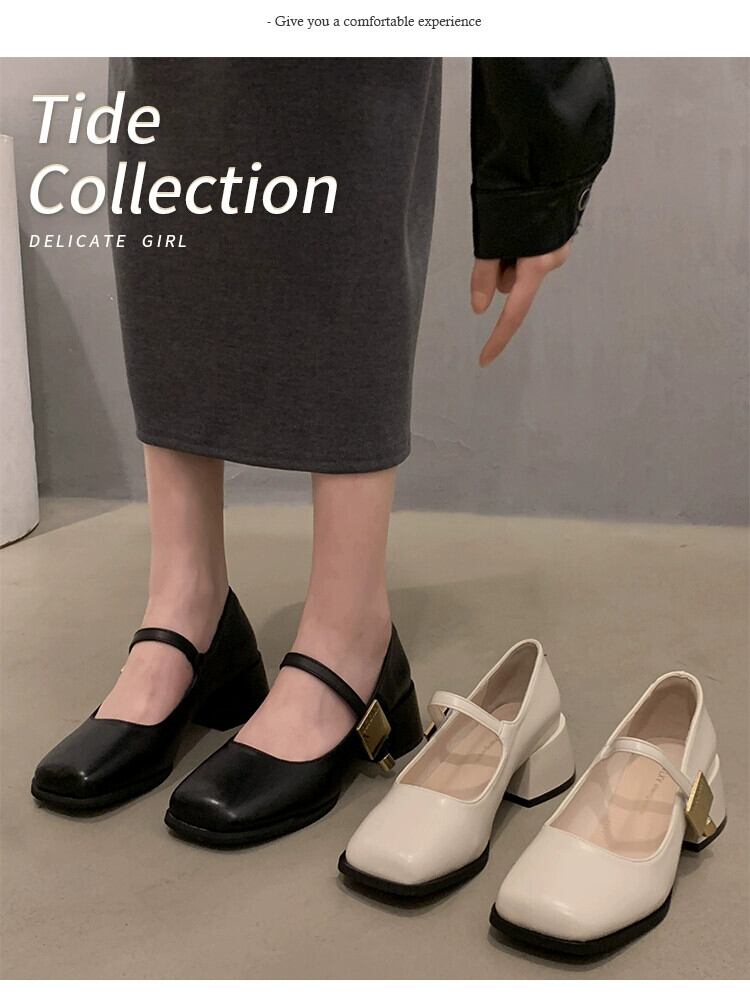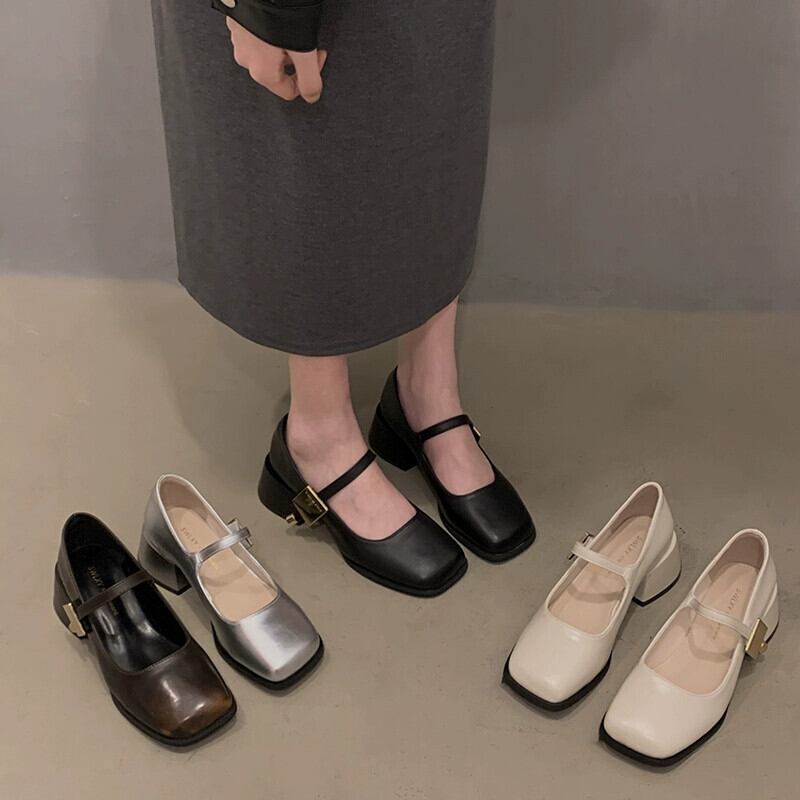Jia Bujia スクエアトゥシングルシューズ女性 2024 春と秋の新靴フランスのレトロな小さな革の靴厚いヒールメリージェーンの靴 スプリング 春物 オータム 秋物 レザー スクウェア jxjxf24130274192