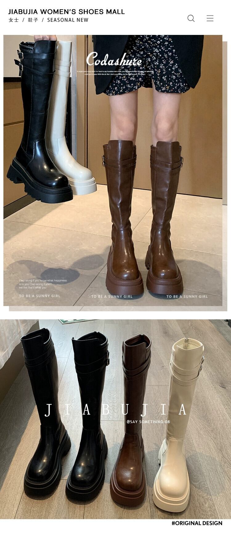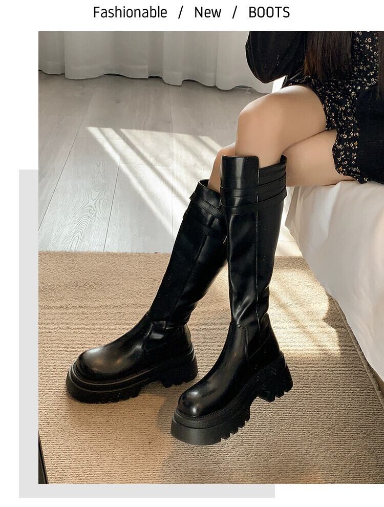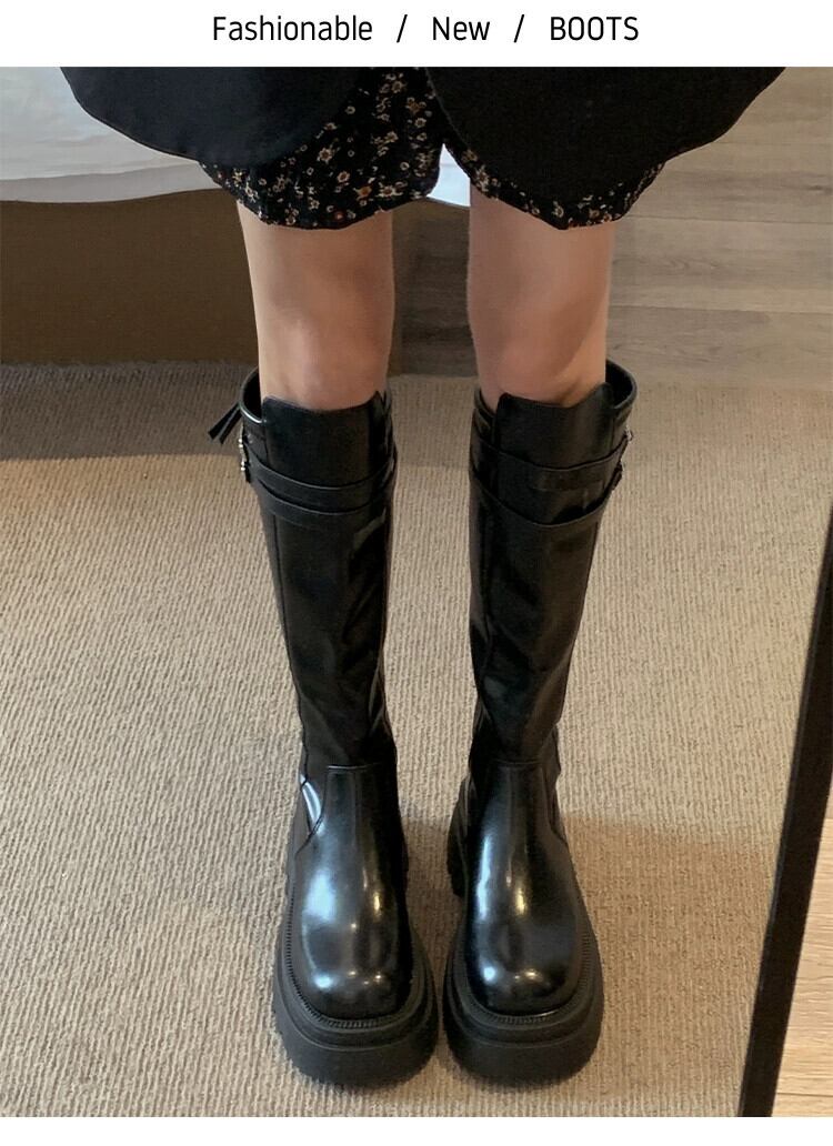 Jia Bujia インターネット有名人のブーツの女性 2024 春の新スーパーレトロスリムファッション厚底フレンチスリムブーツ 靴 シューズ スプリング 春物 jxjxf63175208004