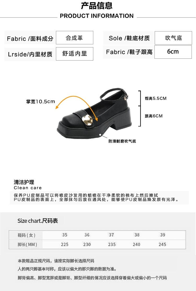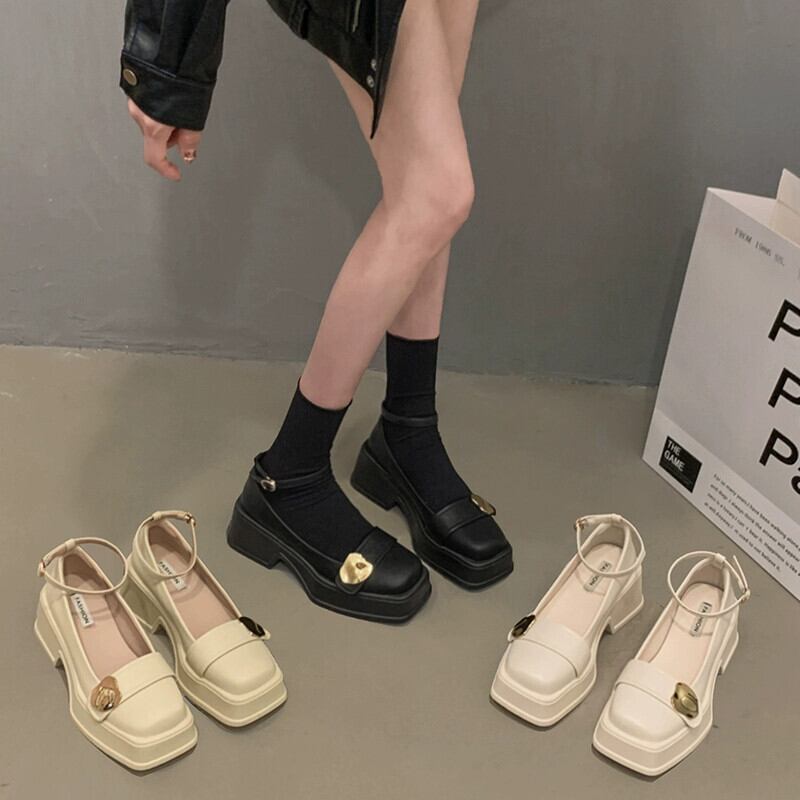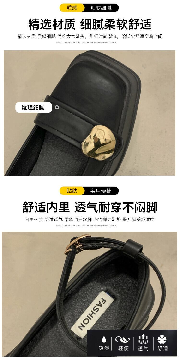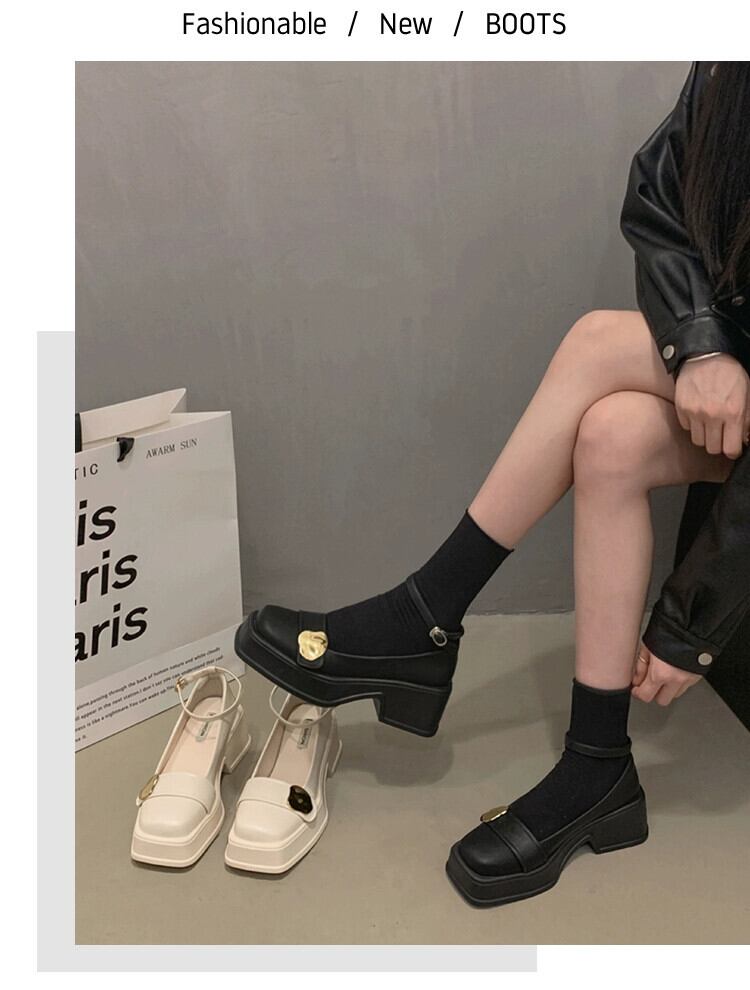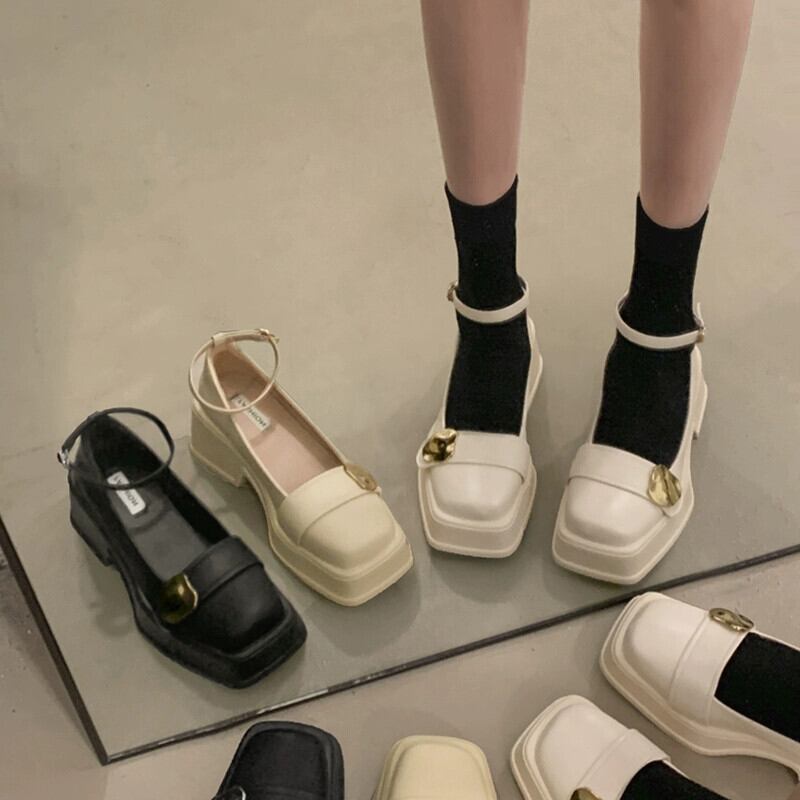 Jia Bufake メリージェーンの靴の女性の 2024 春と秋の小さな革の靴小さな厚いヒールスクエアトゥスタイルの靴 シューズ スプリング 春物 オータム 秋物 レザー スクウェア jxjxf63361818494