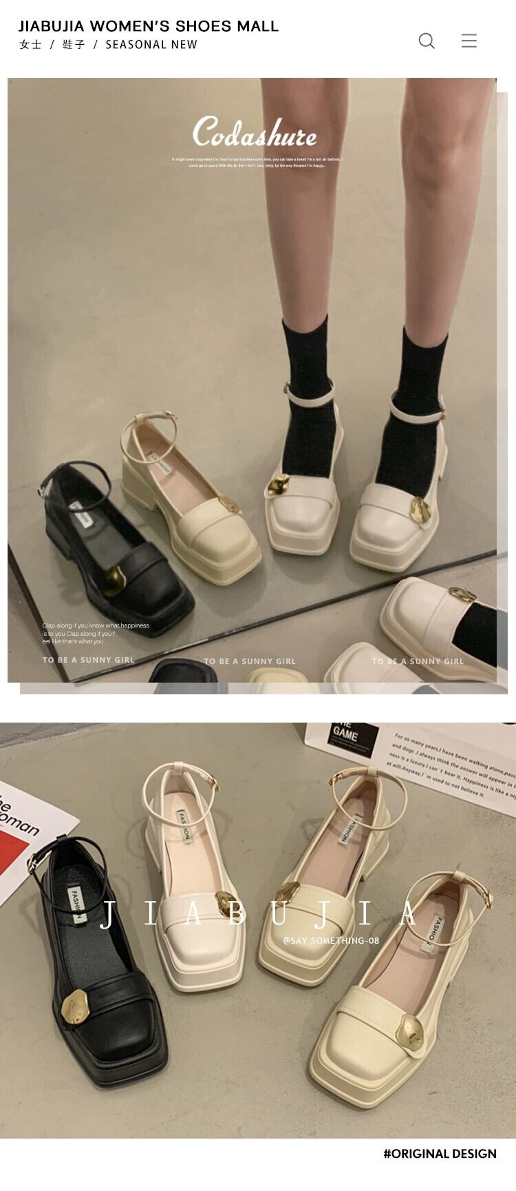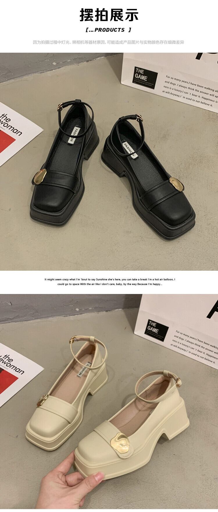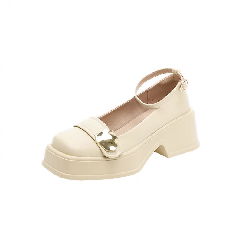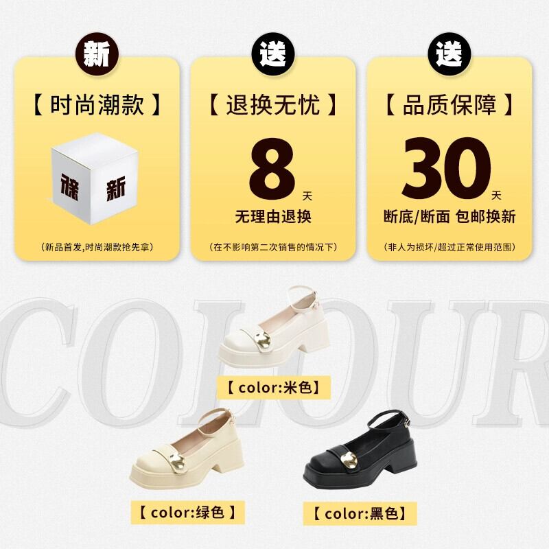 Jia Bufake メリージェーンの靴の女性の 2024 春と秋の小さな革の靴小さな厚いヒールスクエアトゥスタイルの靴 シューズ スプリング 春物 オータム 秋物 レザー スクウェア jxjxf63361818494