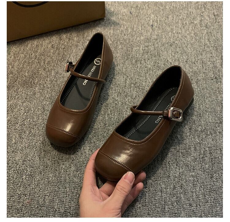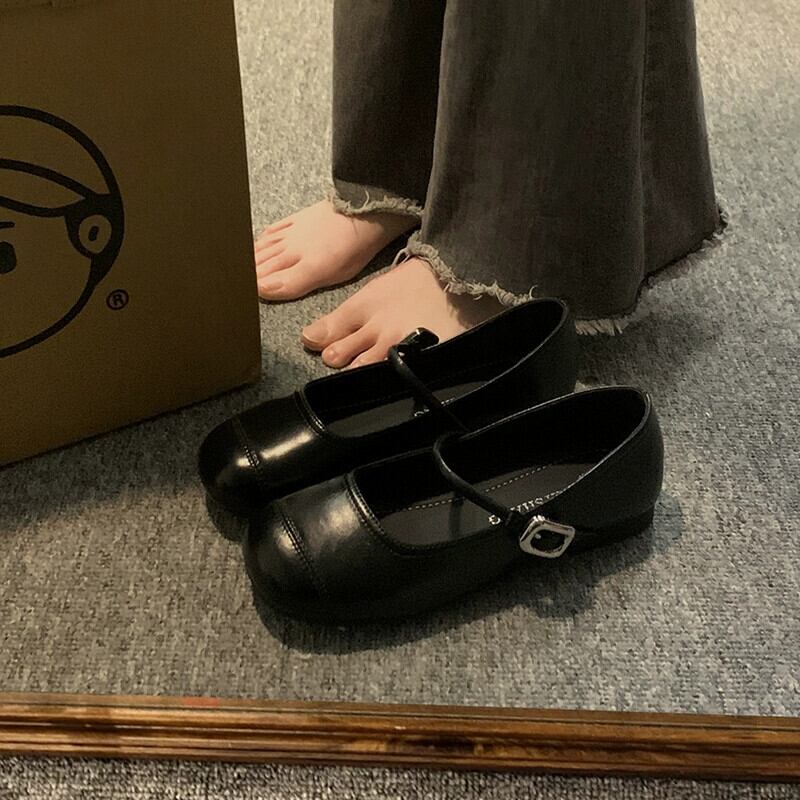 Jia Bufake 小さな革の靴の女性 2024 春の新靴優しい気質フランスのメリージェーンの靴ソフトソールビーニー靴 シューズ スプリング 春物 レザー jxjxf147100245