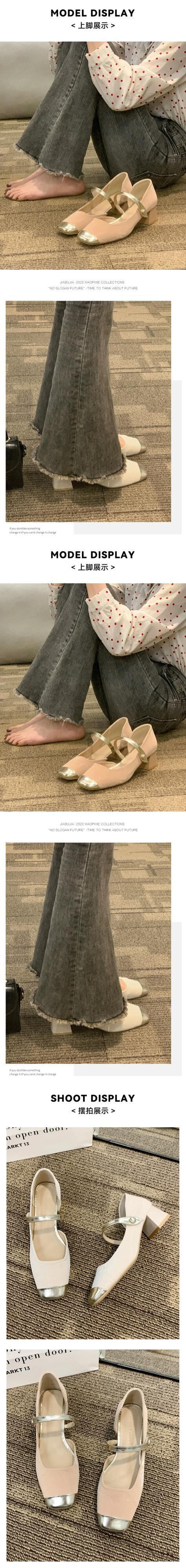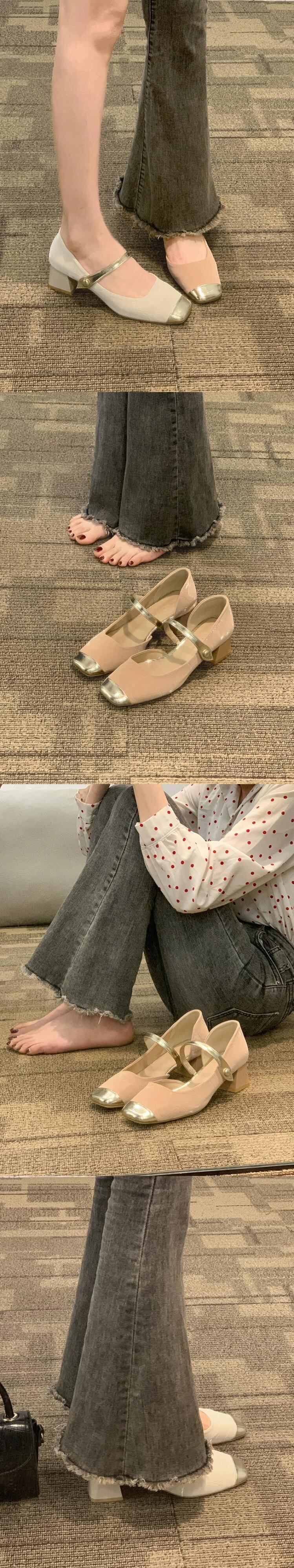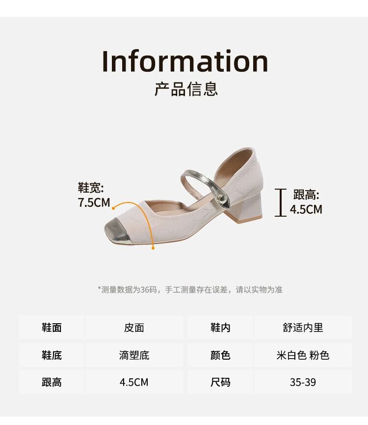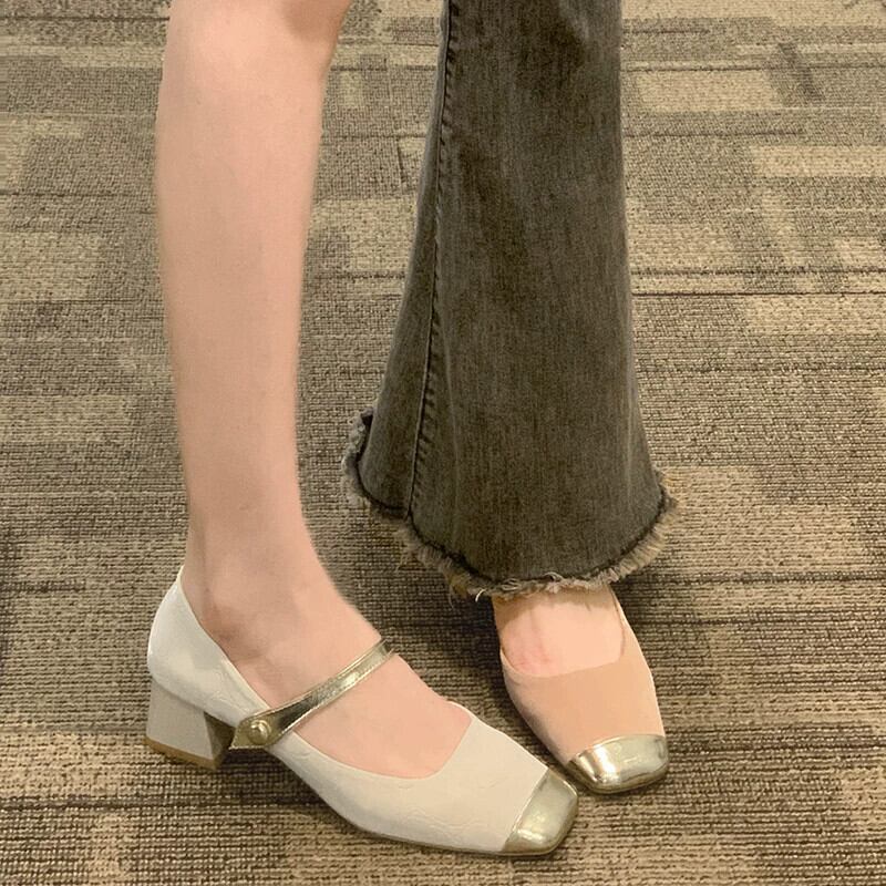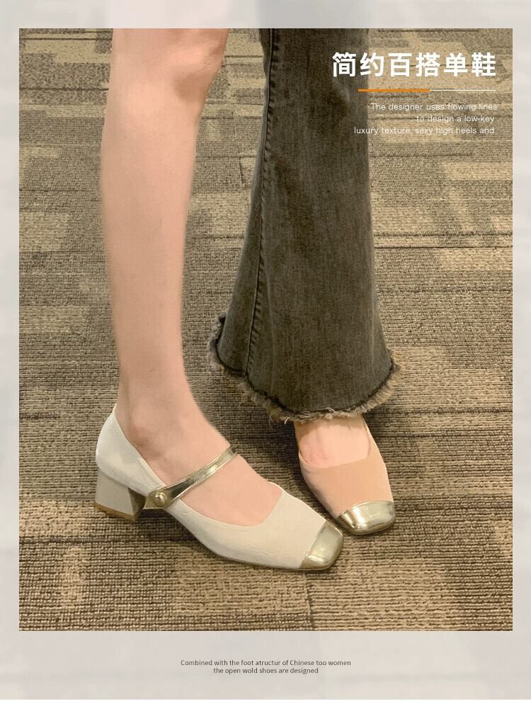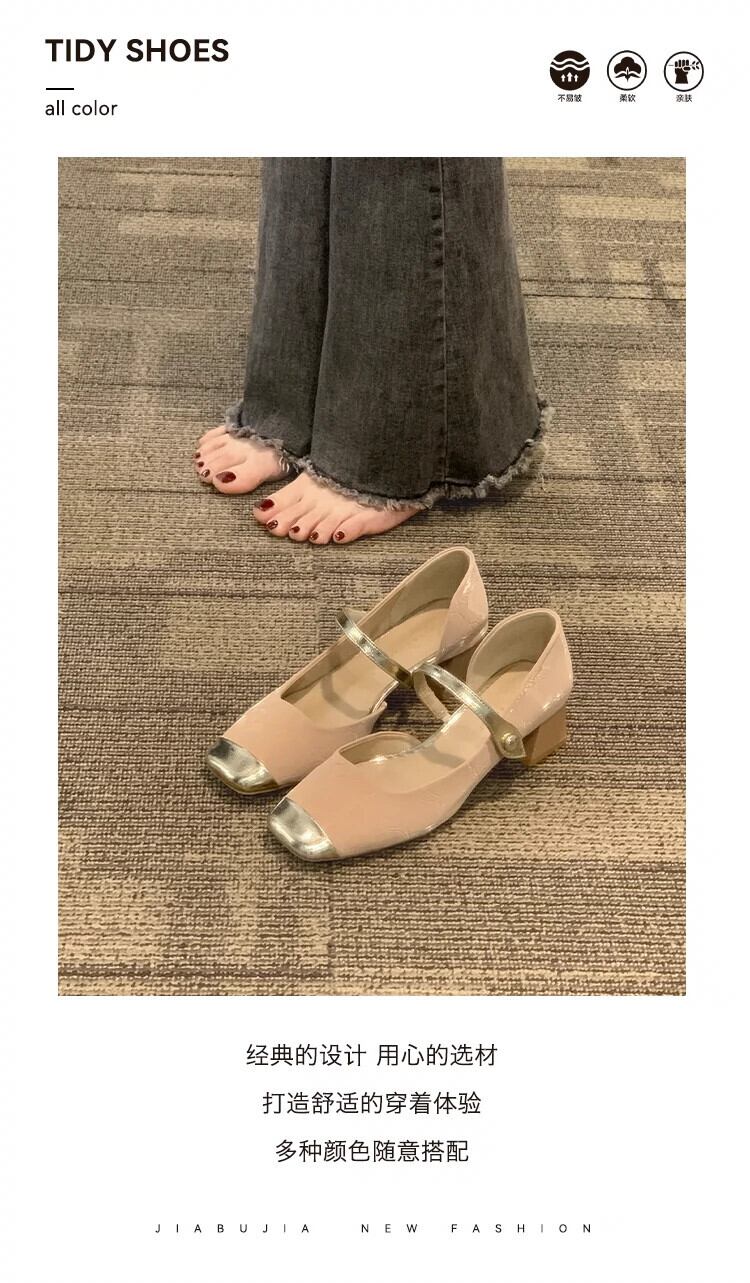 Jia Bufake メリージェーンの靴の女性の 2024 春と秋の靴多用途スクエアトゥフレンチシングルシューズ太いヒールヒール スプリング 春物 オータム 秋物 スクウェア jxjxf42375229589