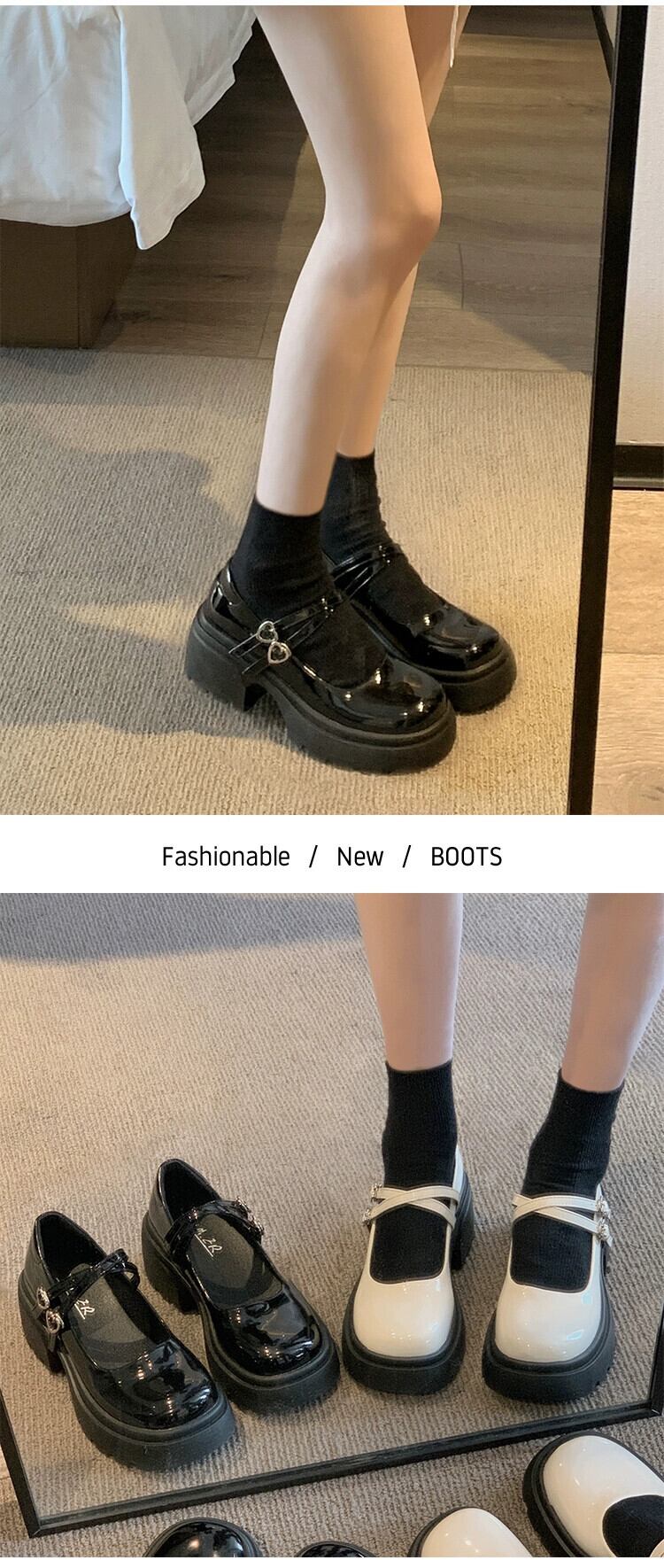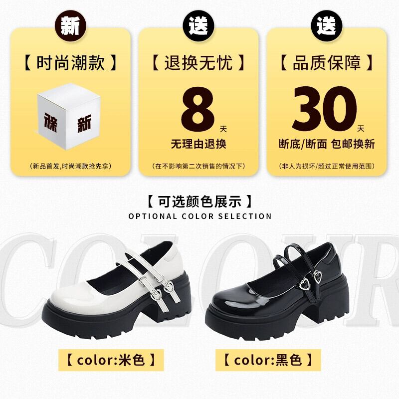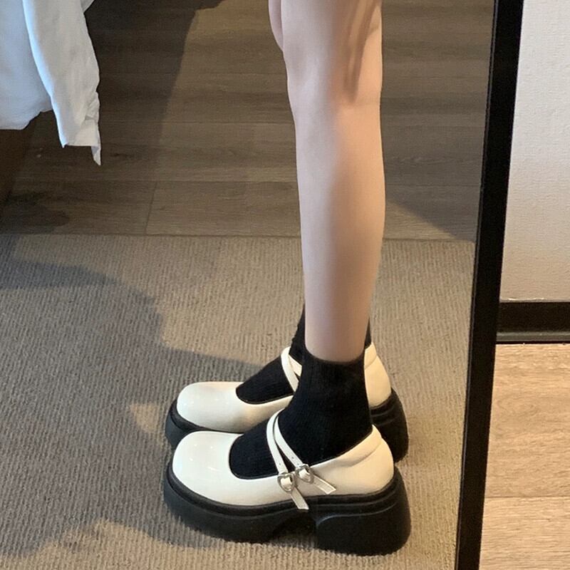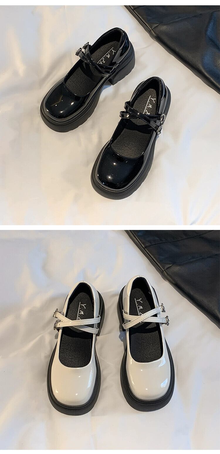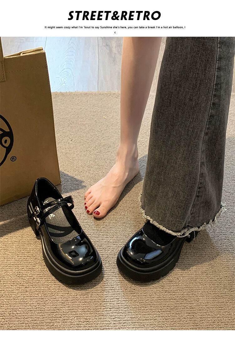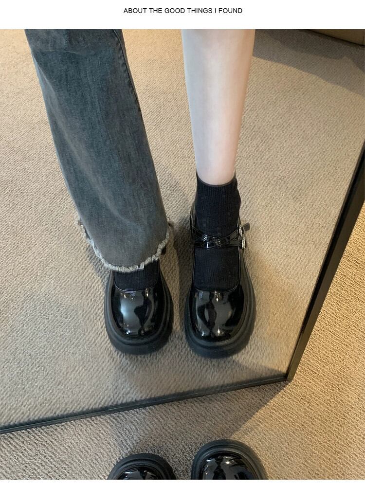 Jia Bufake メアリージェーン婦人靴 2024 春甘くて多用途な小さなレトロ浅口厚いヒール小さな革の靴 シューズ 大人ガーリー スウィート キュート カジュアル スプリング 春物 レザー jxjxf73305523631