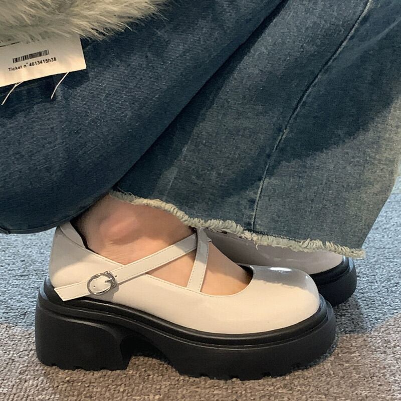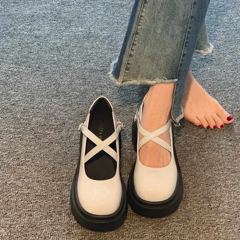 Jia Bufake メリージェーンの靴の女性 2024 春レトロな多用途の小さなヒールとスカートスタイルの靴 シューズ スプリング 春物 jxjxf82401245590