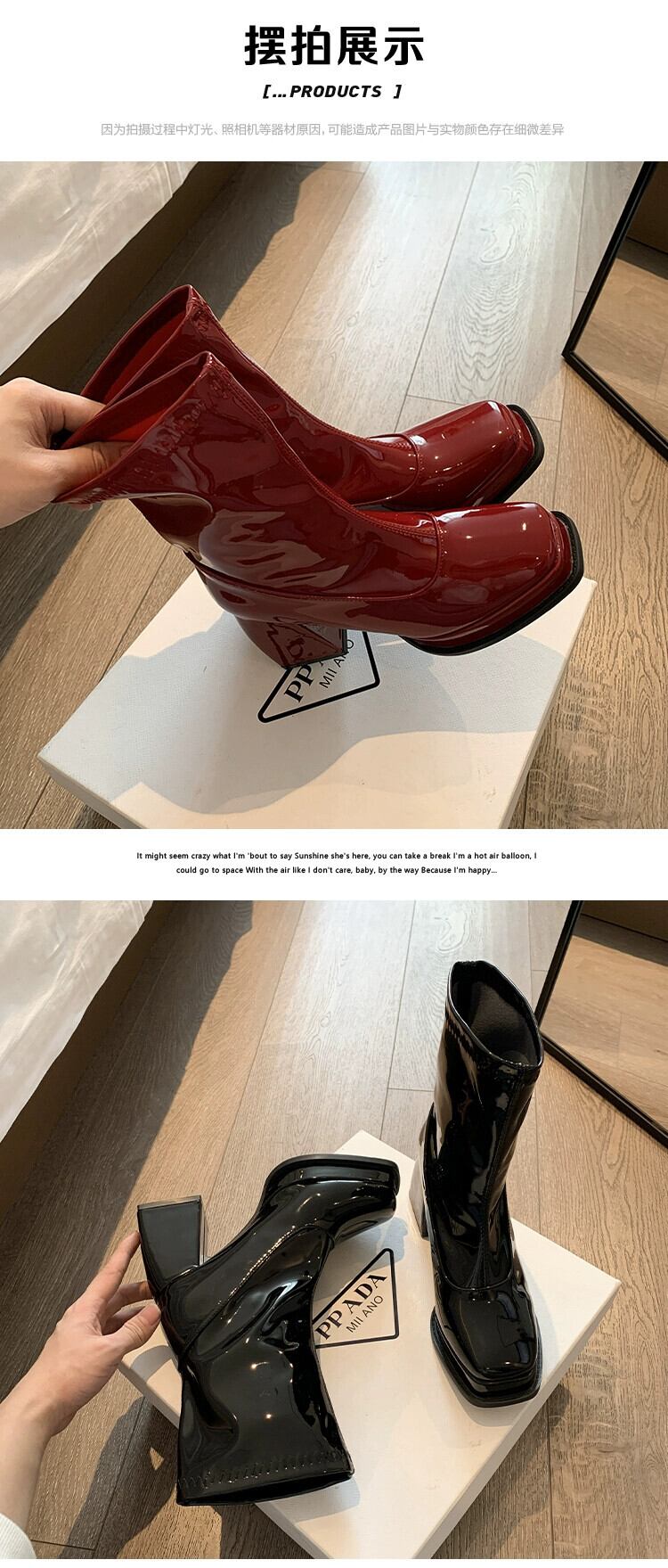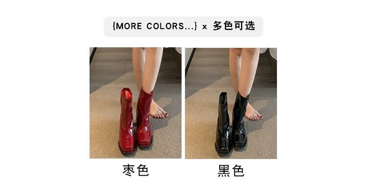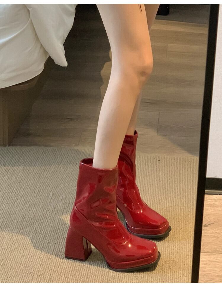 Jia Bujia スクエアトゥショートブーツの女性 2024 春の新ファッションレトロハンサムな小さなハイヒールフレンチスリムブーツ 靴 シューズ スプリング 春物 スクウェア jxjxf15267985990