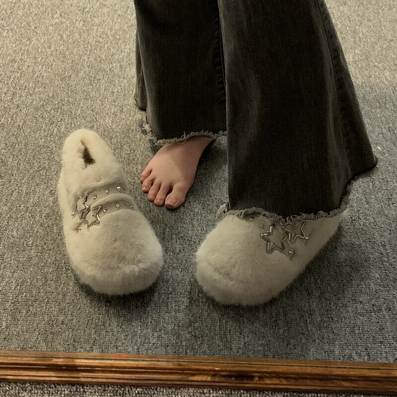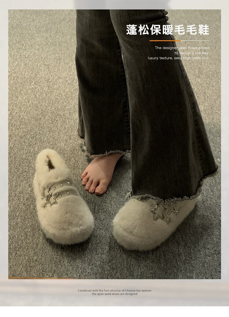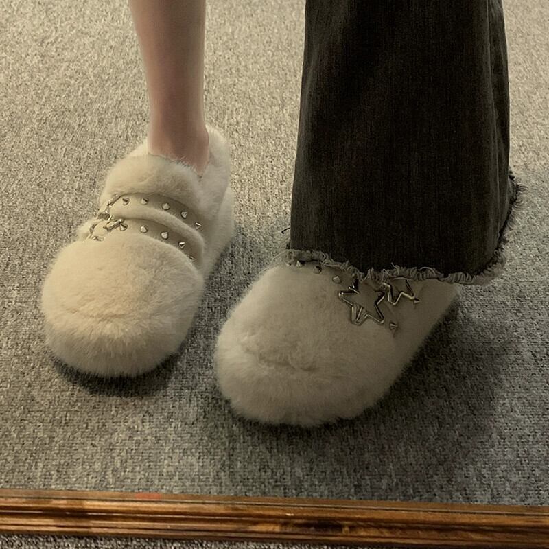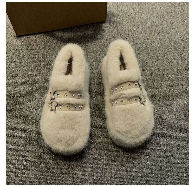 Jia Bujia 女性の毛皮のような靴 2024 春の新スタイルハンサムなリベット西洋スタイルの人気の暖かい柔らかい底の綿の靴のトレンド シューズ コットン スプリング 春物 jxjxf29827034357