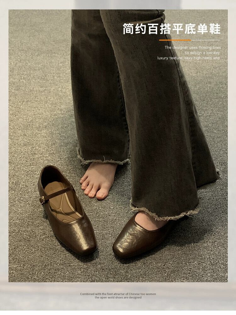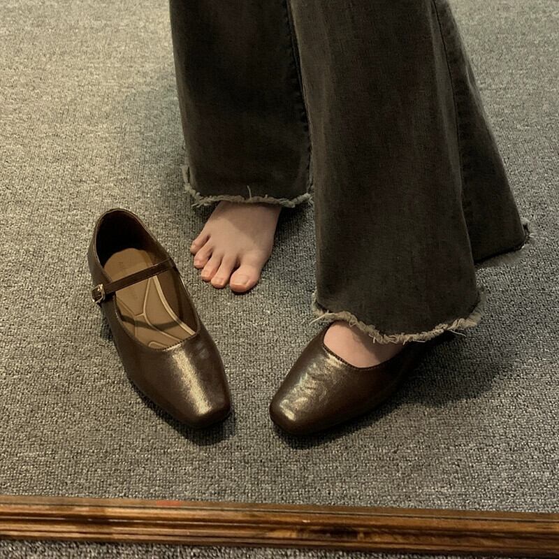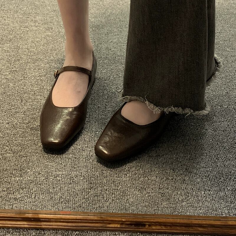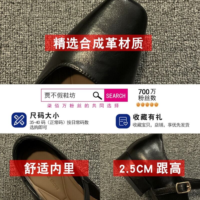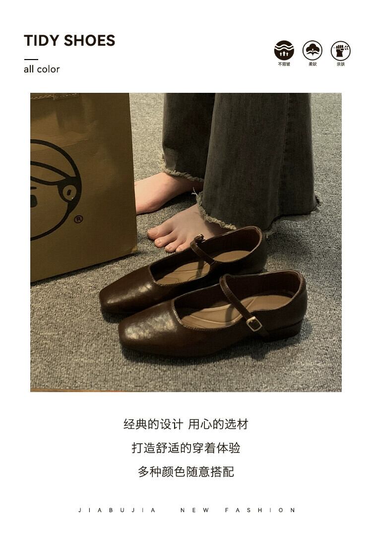Jia Bujia スタイルシングルシューズ女性 2024 春の新ファッションレトロ多用途ローヒールスクエアトゥフレンチメリージェーンシューズ 靴 スプリング 春物 スクウェア jxjxf5451850728