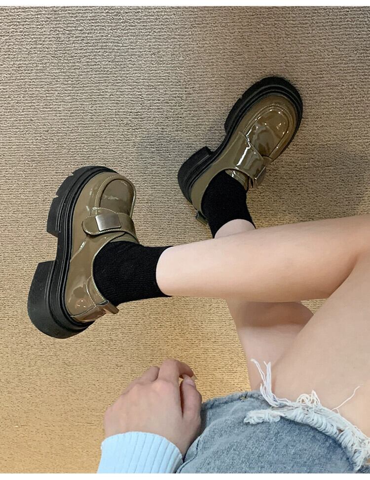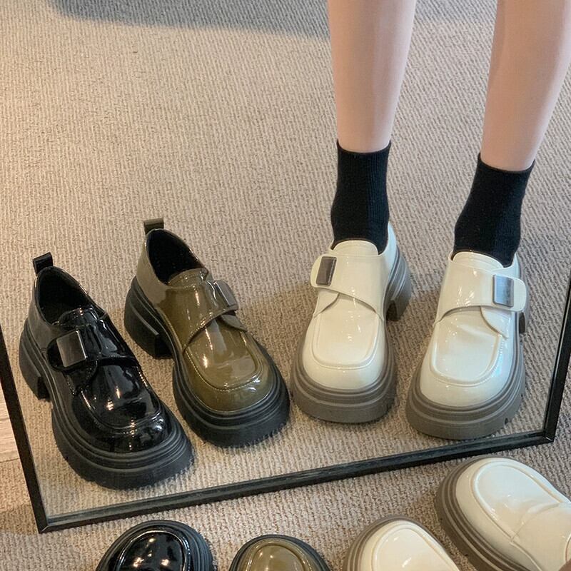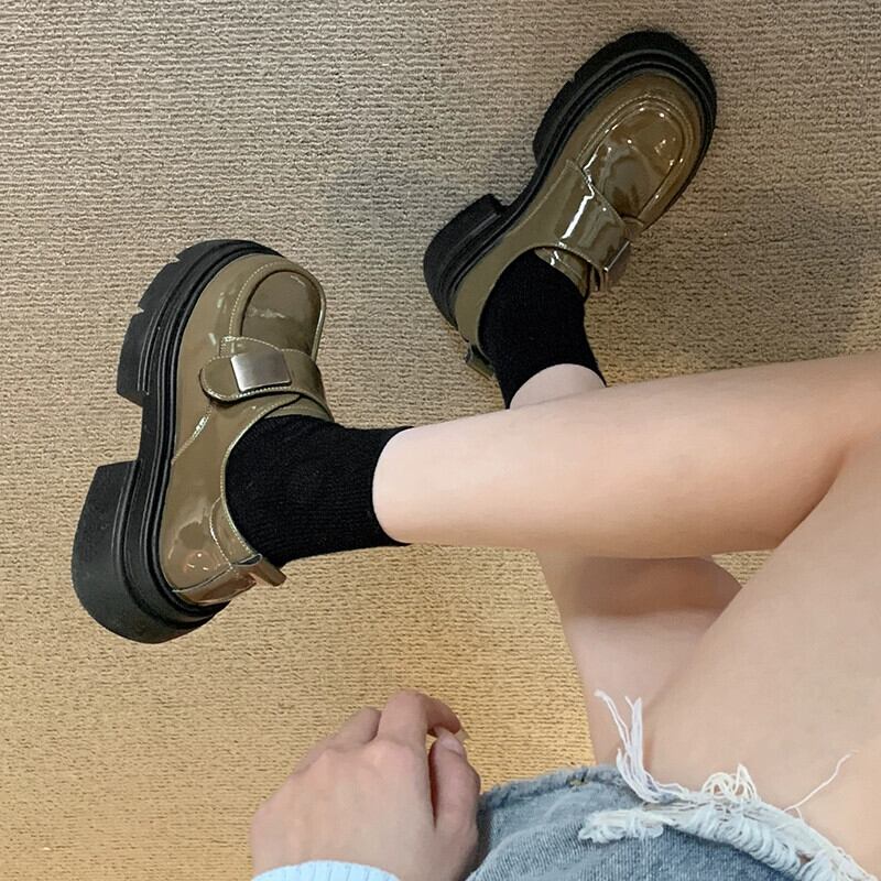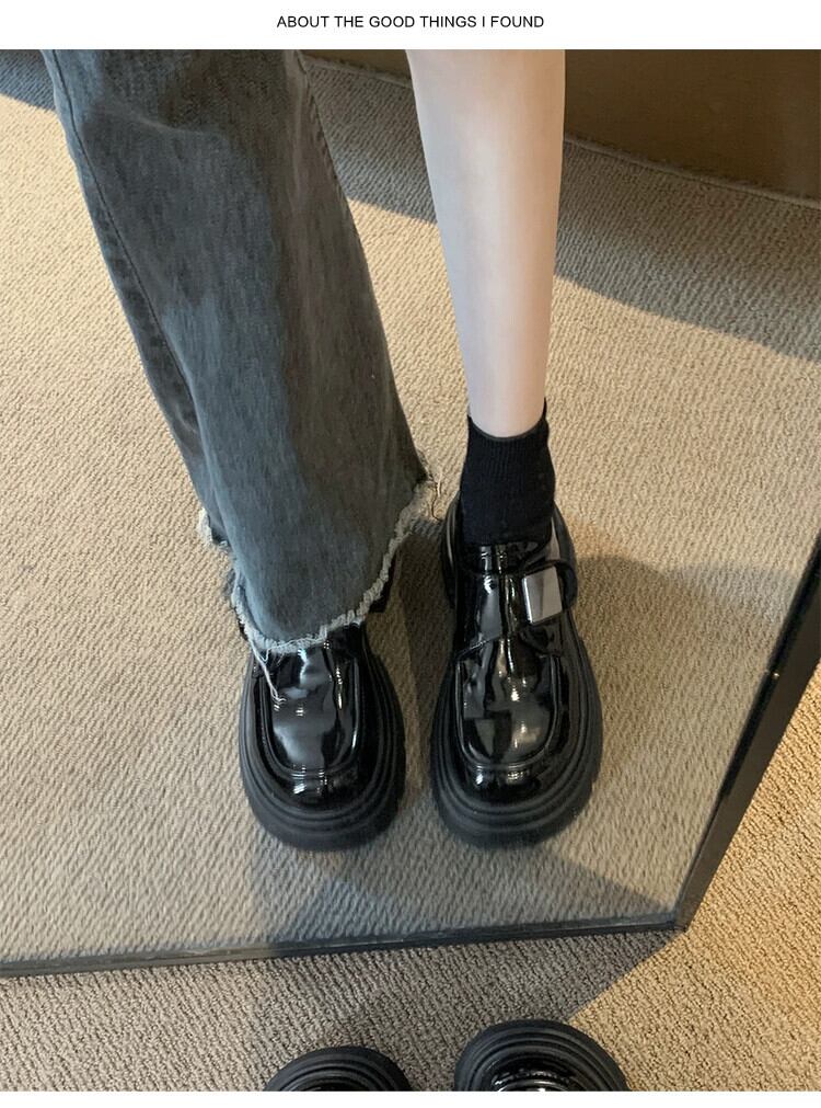 Jia Bufake 厚底小さな革靴の女性 2024 春の新靴気質黒の厚底英国スタイルのローファー シューズ ブラック スプリング 春物 レザー jxjxf16631511465