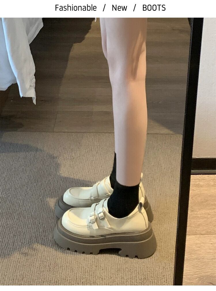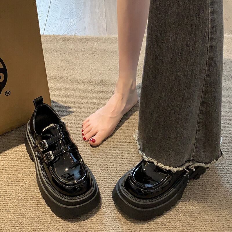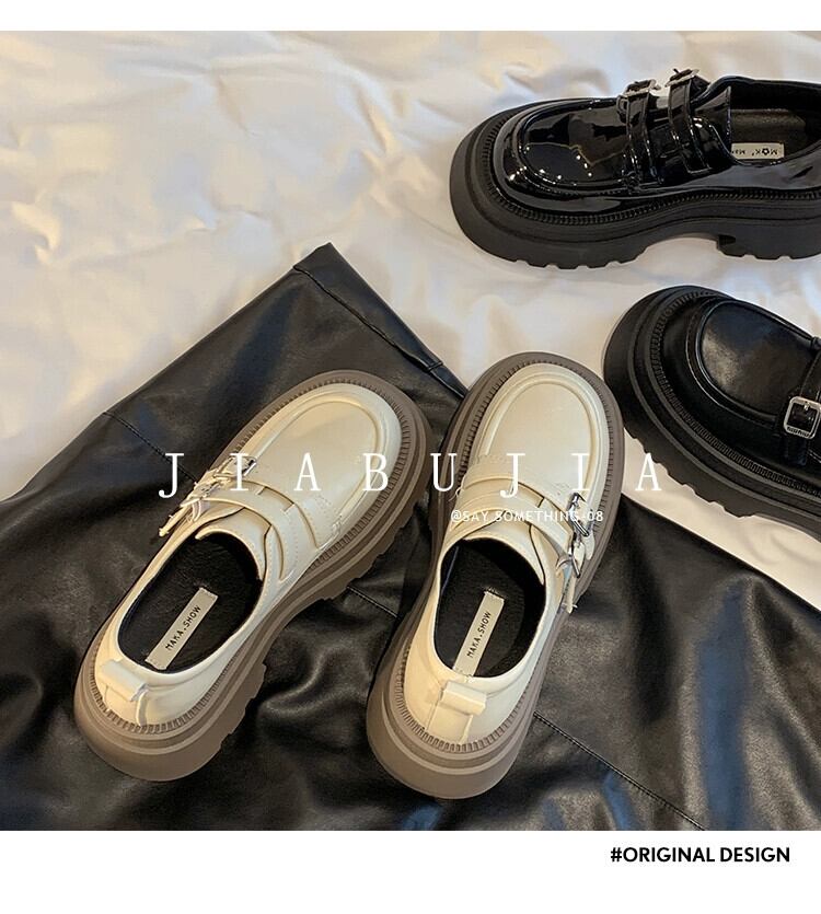 Jia Bufake 小さな革靴の女性 2024 春の新靴レトロ英国スタイルの厚底ローファースタイルの靴 シューズ スプリング 春物 レザー jxjxf18398600398