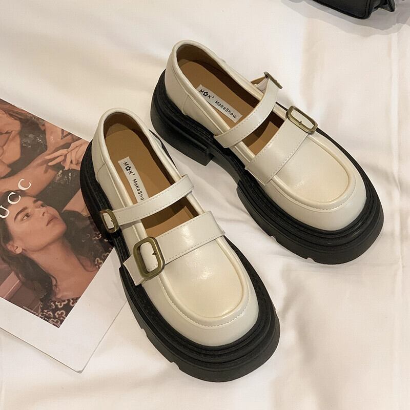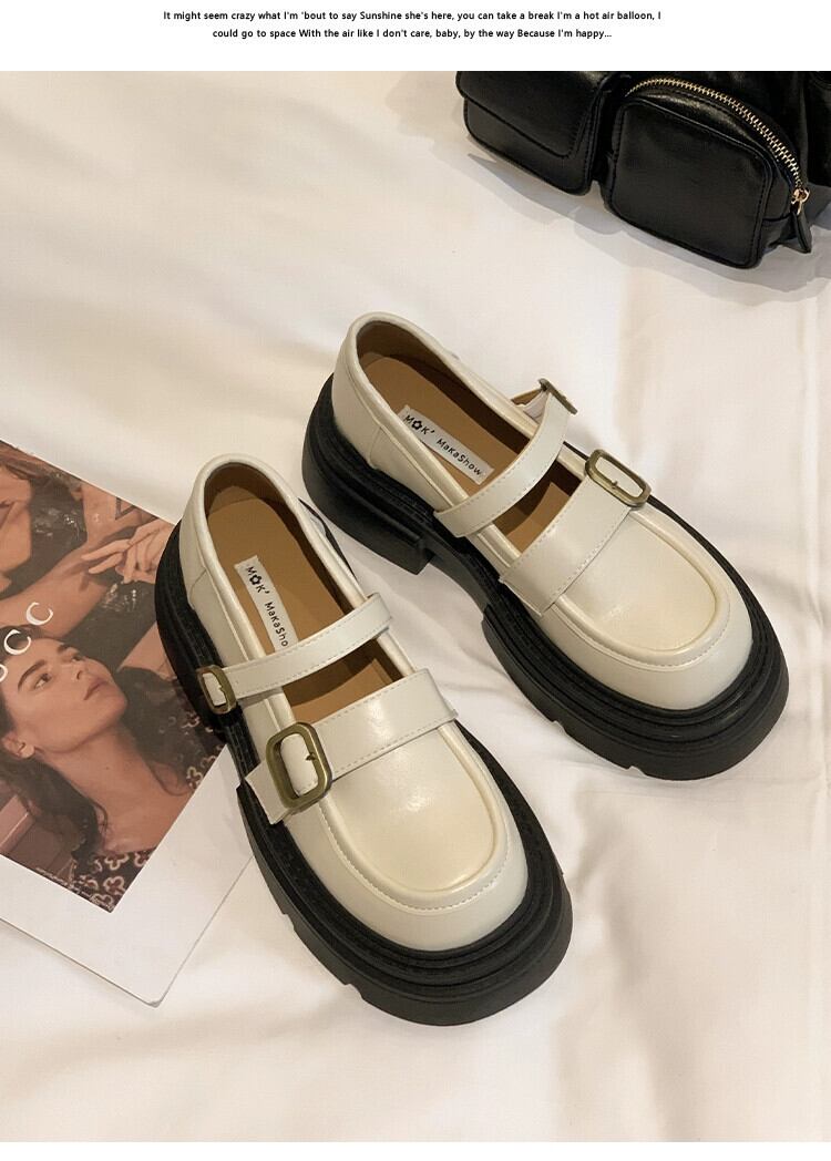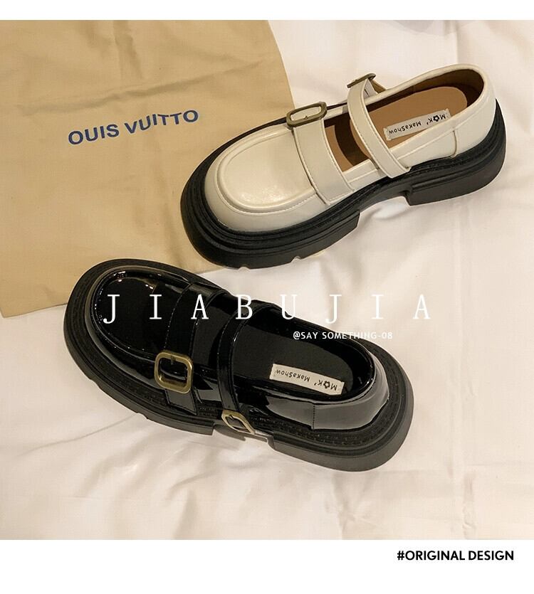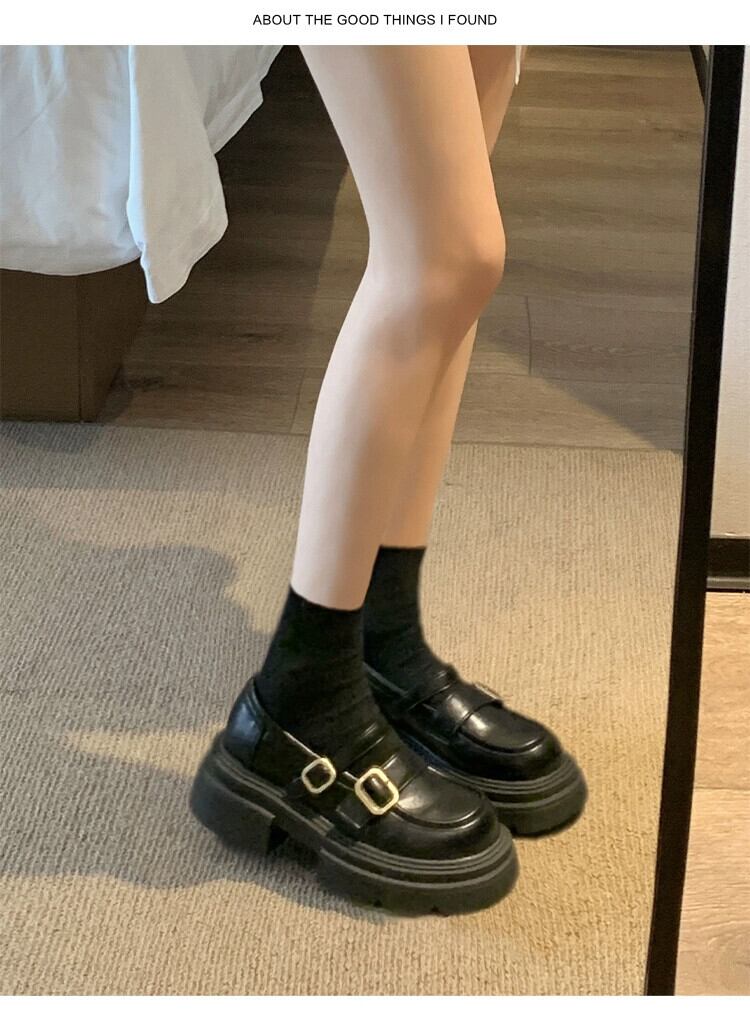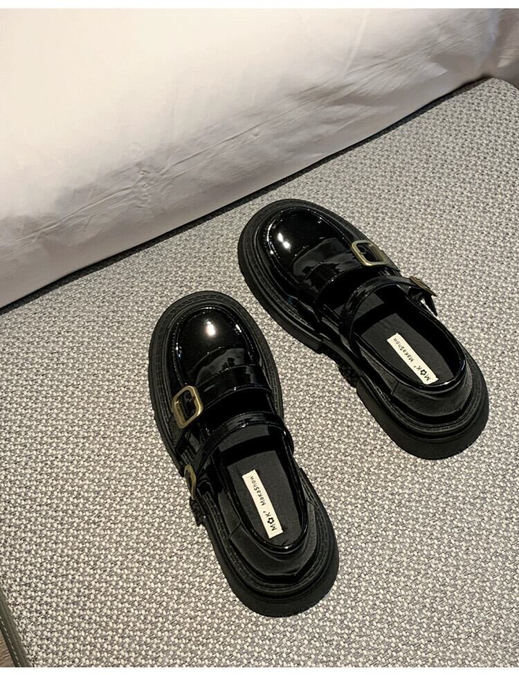 Jia Bufake 小さな革の靴の女性 2024 春と秋の新靴レトロな英国スタイルの黒の厚底スタイルの靴 シューズ ブラック スプリング 春物 オータム 秋物 レザー jxjxf38047263646