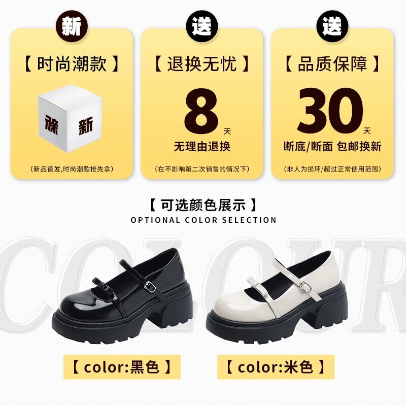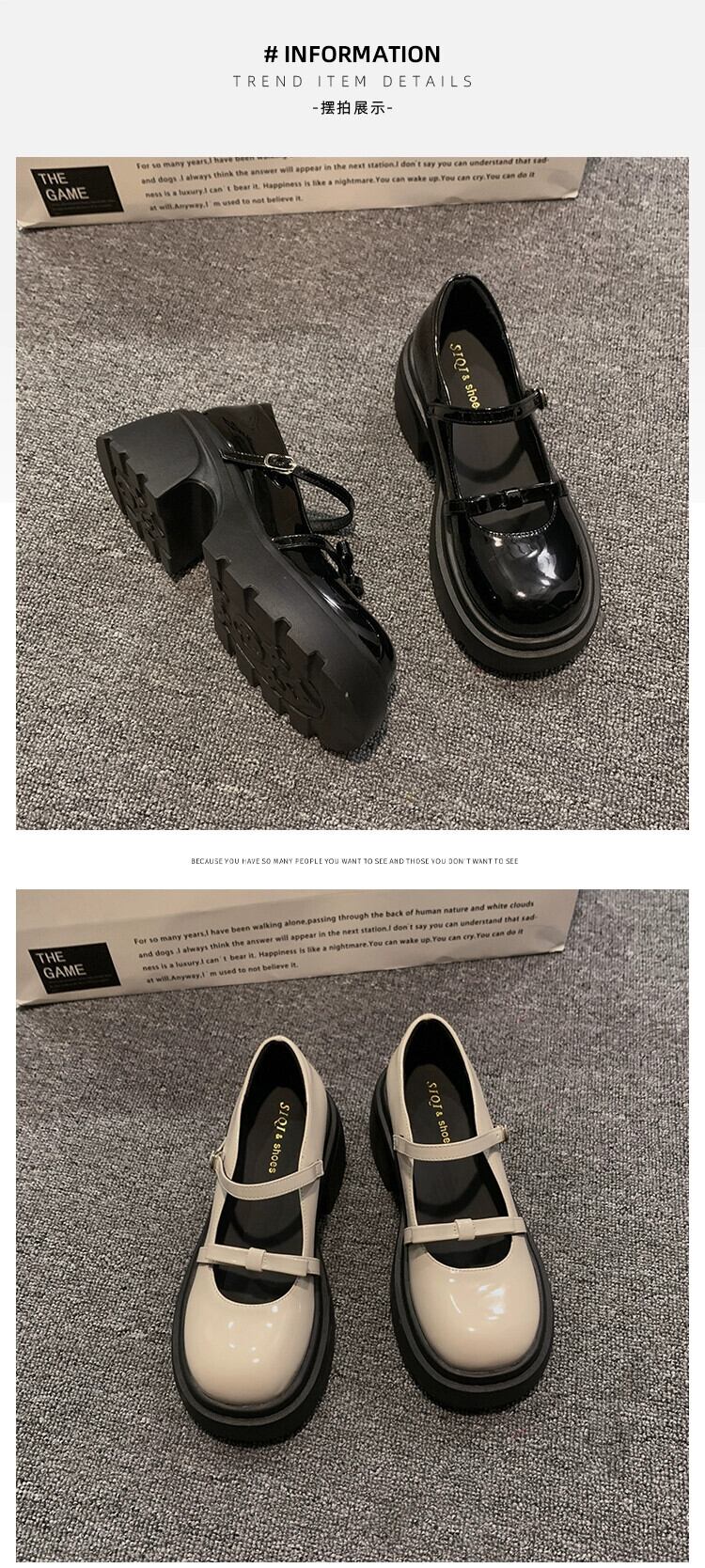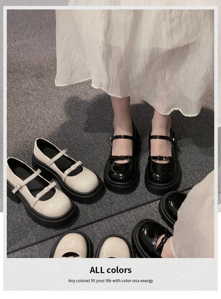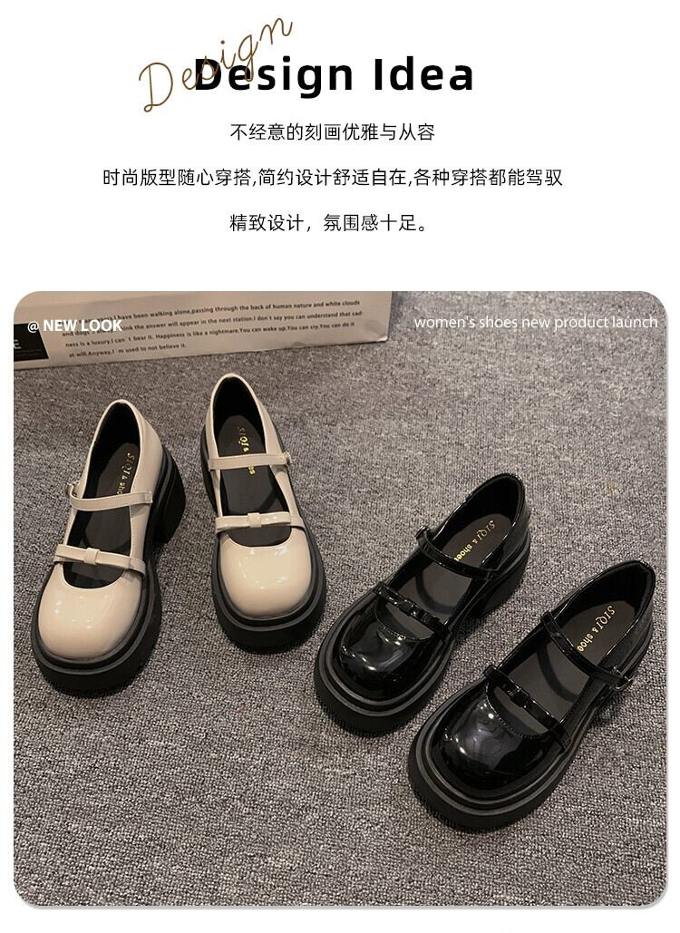Jia Bujia メリージェーンシューズ レディース 2024 春と秋 ese スタイルの靴 スカート付き 太いヒール 厚底 小さな革靴 スプリング 春物 オータム 秋物 レザー jxjxf14048039985