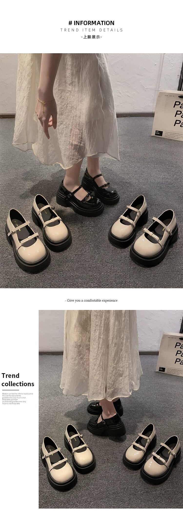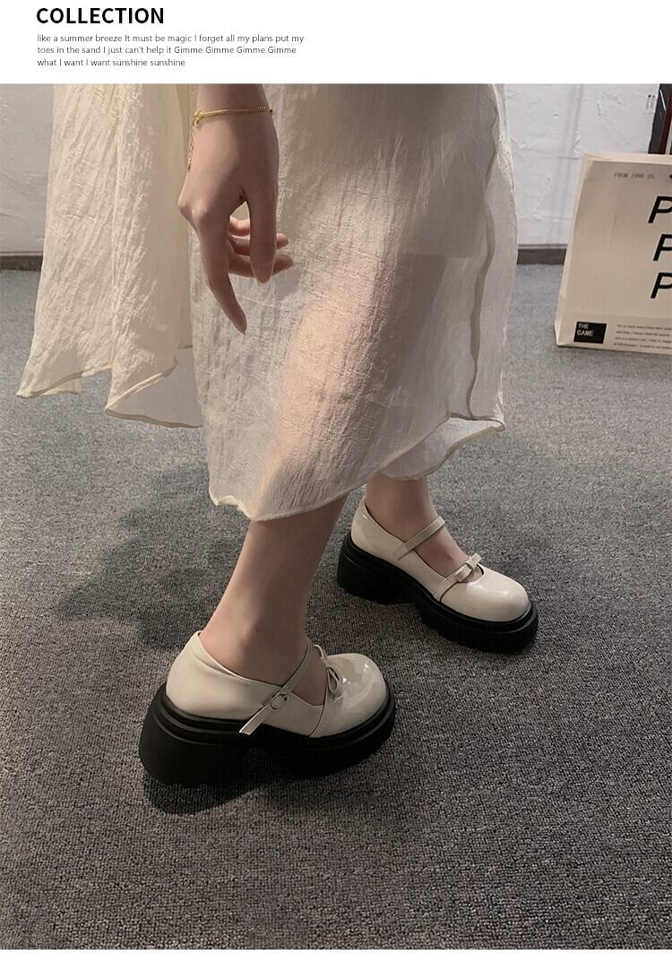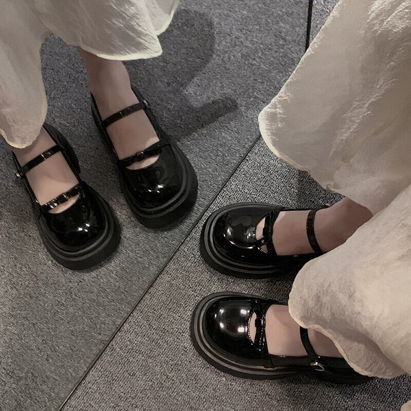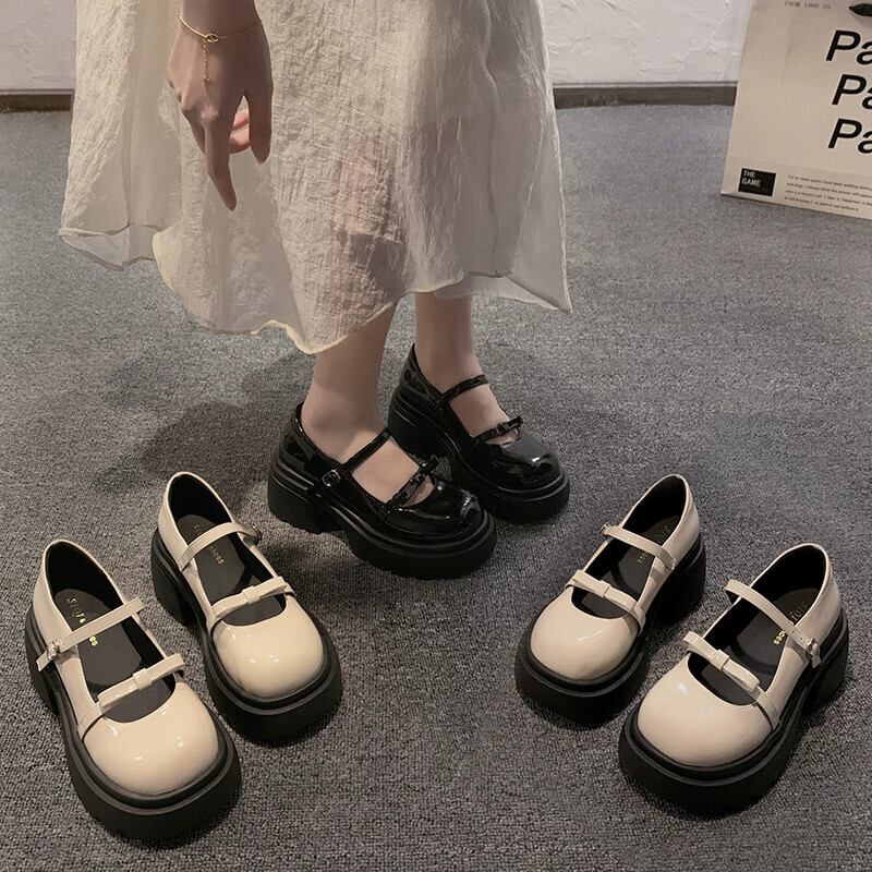 Jia Bujia メリージェーンシューズ レディース 2024 春と秋 ese スタイルの靴 スカート付き 太いヒール 厚底 小さな革靴 スプリング 春物 オータム 秋物 レザー jxjxf14048039985