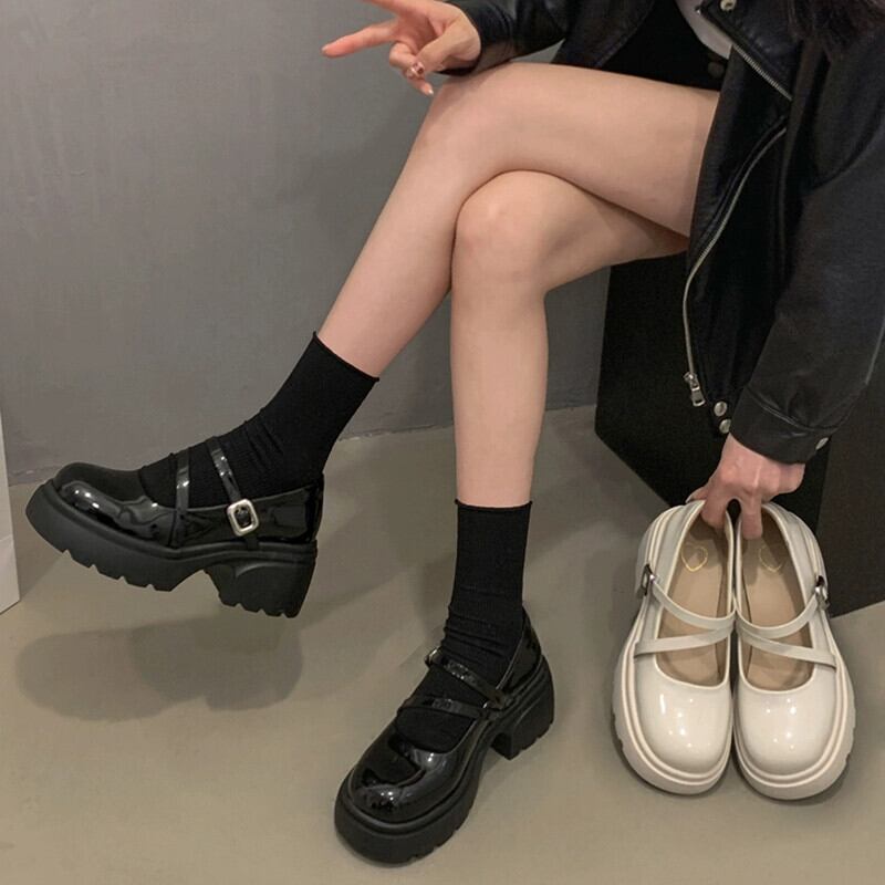 Jia Bufake メリージェーンの靴の女性 2024 春と秋の新靴小さな厚底シングルシューズスカート付き小さな革靴 スプリング 春物 オータム 秋物 レザー jxjxf73514679842