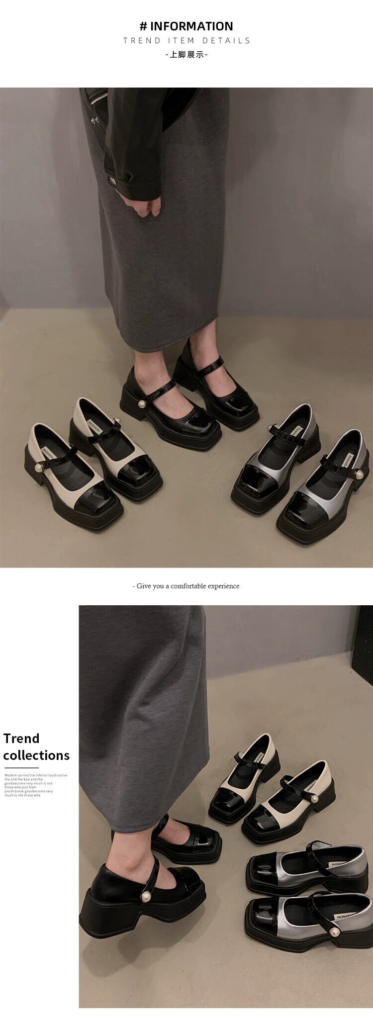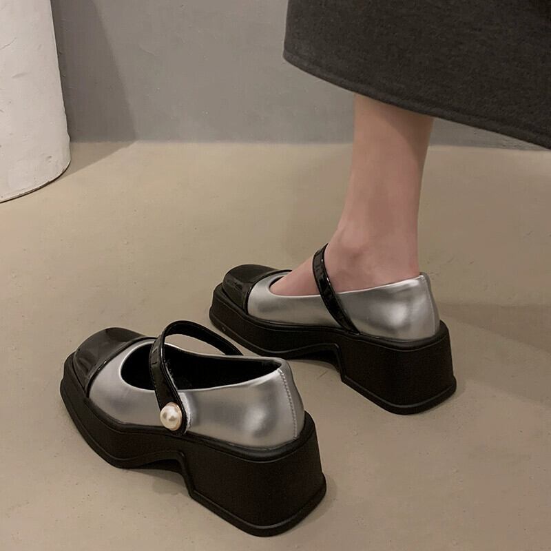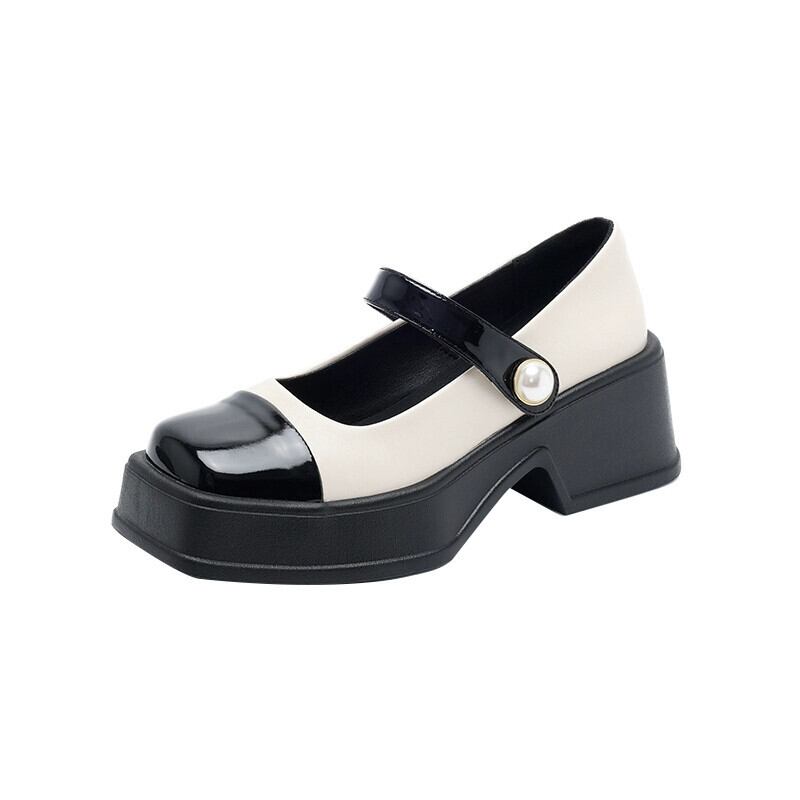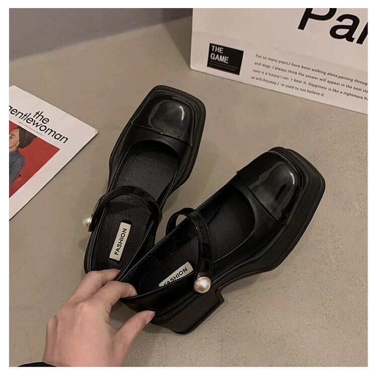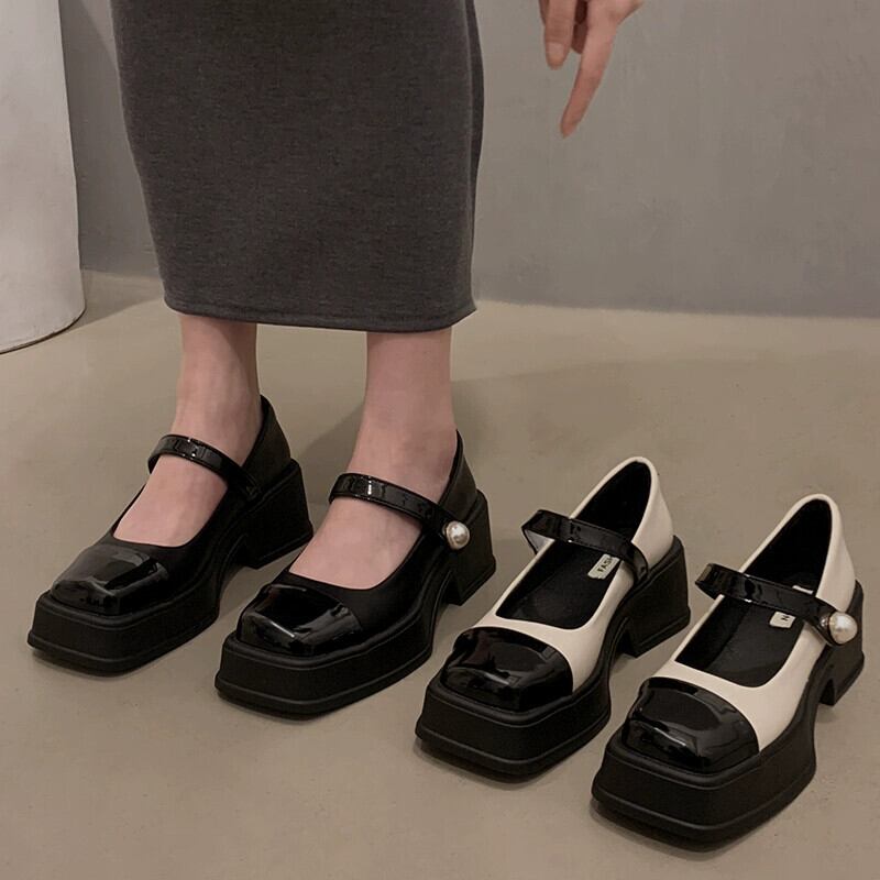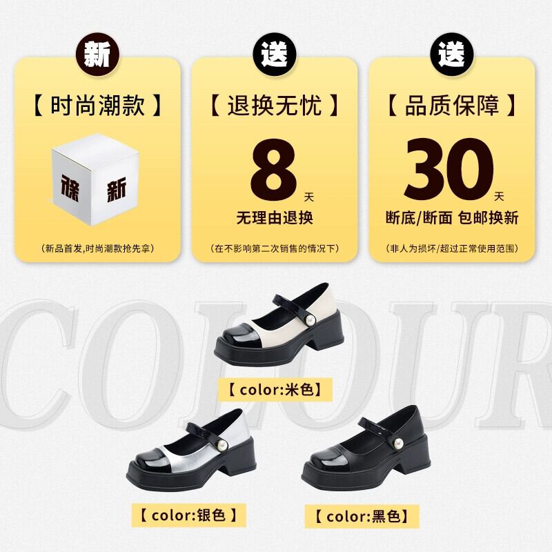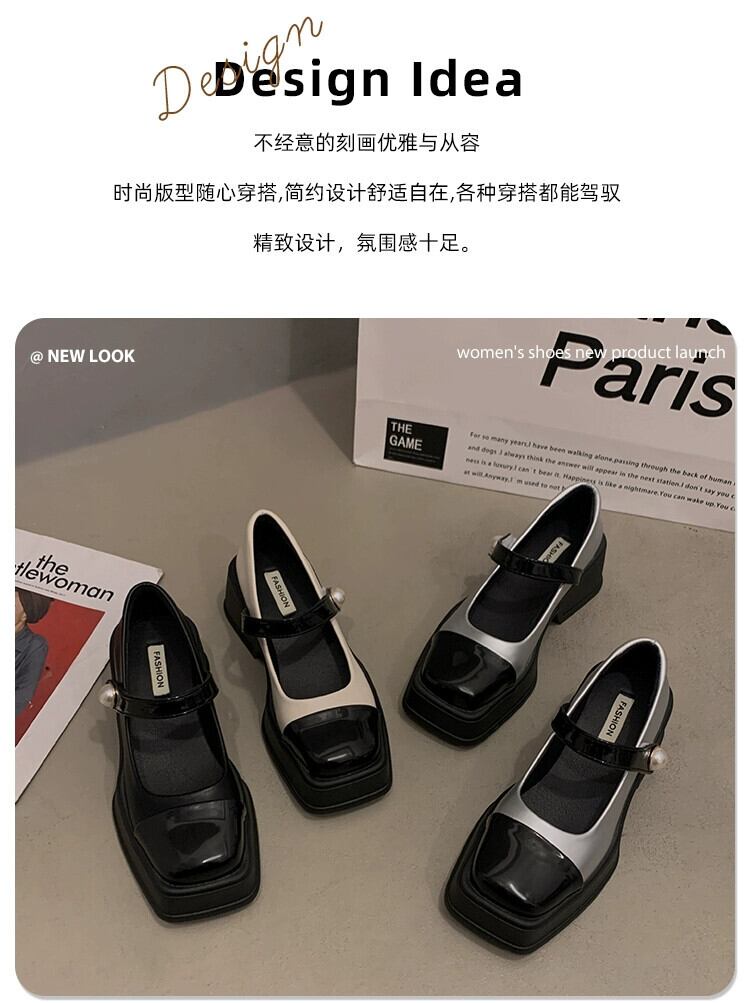 Jia Bujia スクエアトゥシューズ レディース 2024 春と秋 レトロ 多用途 ブロックヒール スカート付き メリージェーンシューズ 靴 スプリング 春物 オータム 秋物 スクウェア jxjxf35975668868