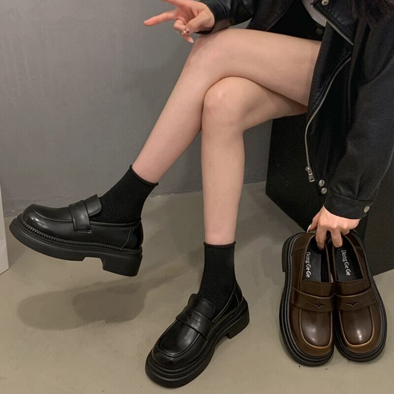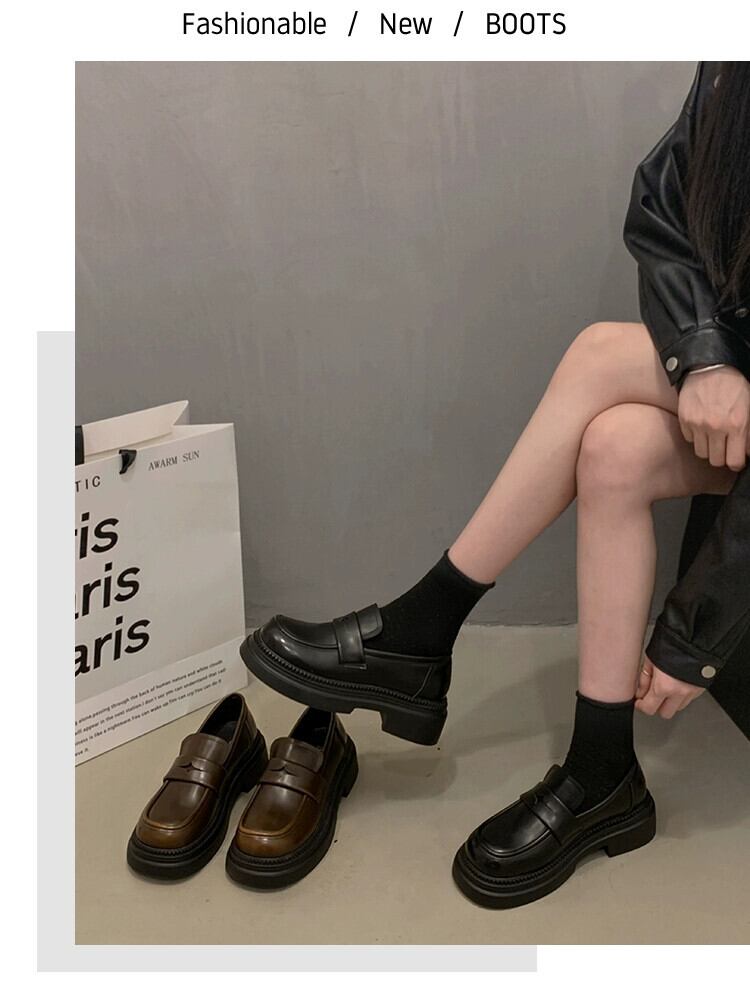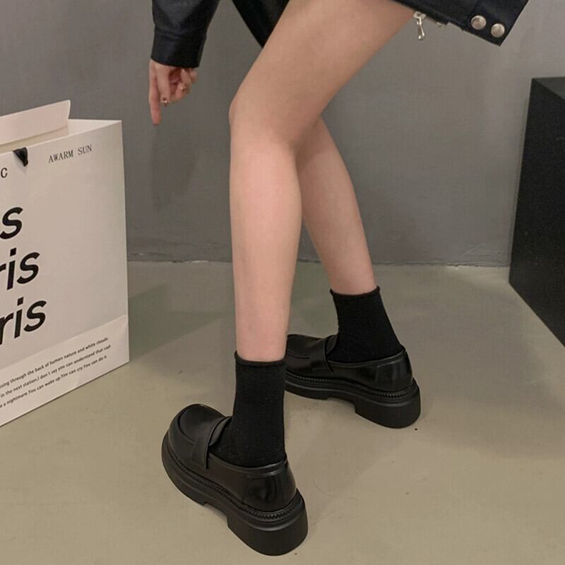 Jia Bufake 小さな革の靴の女性 2024 春の新靴レトロ英国スタイルのローファー小さな厚い底の靴 シューズ スプリング 春物 レザー jxjxf48457190194