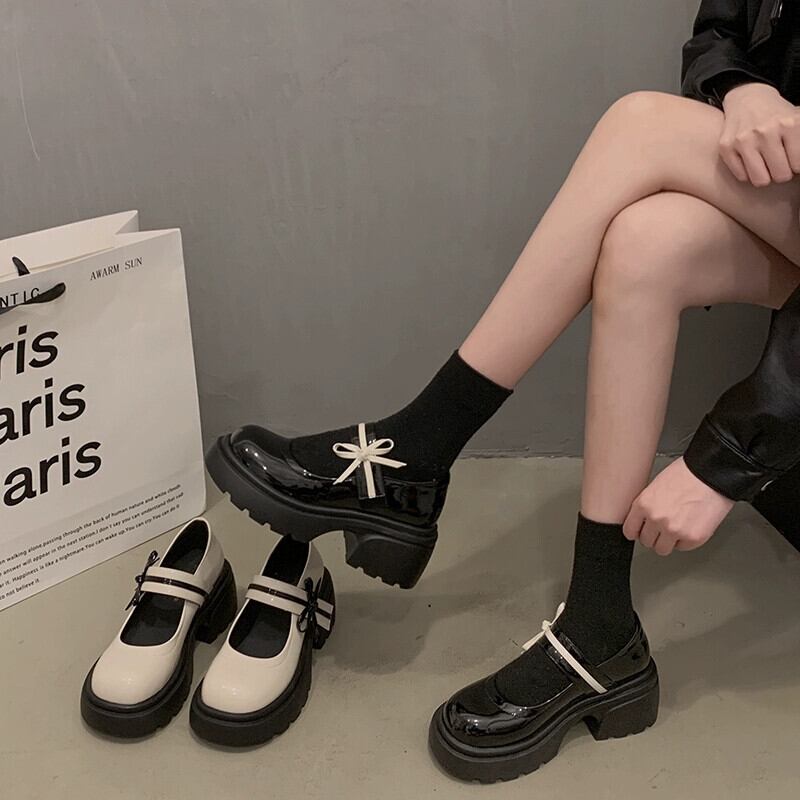 Jia Bufake メリージェーンの靴の女性の 2024 春と秋のシングルシューズスタイルフレンチスタイルの太いヒールの小さな革の靴 スプリング 春物 オータム 秋物 レザー jxjxf48060184683