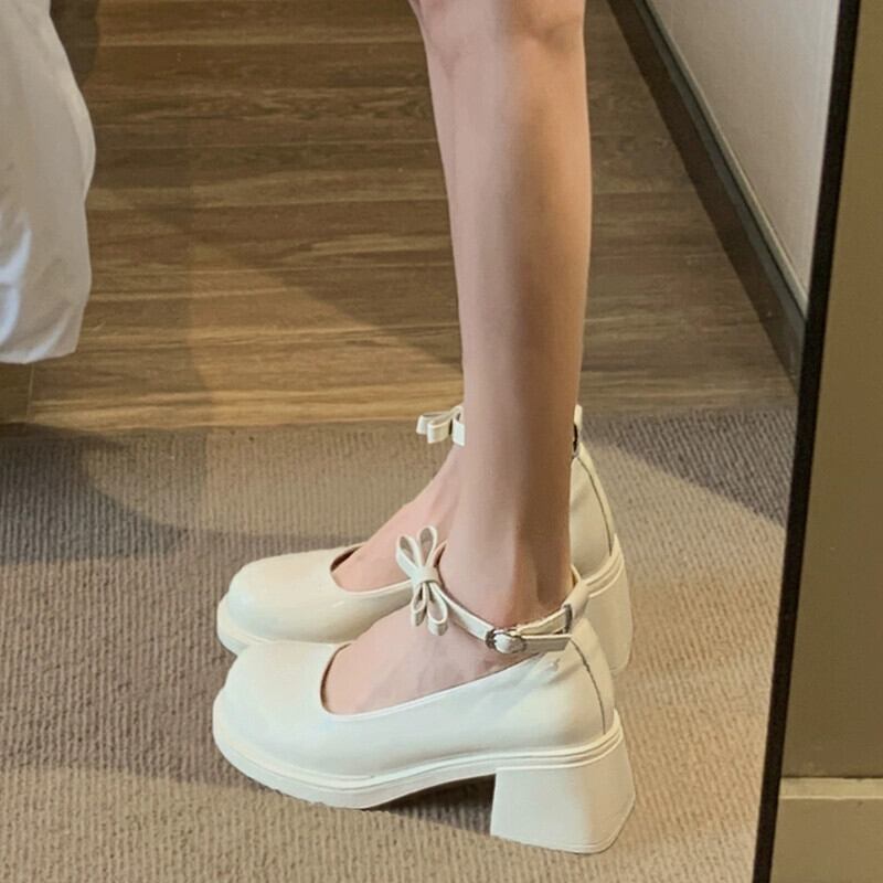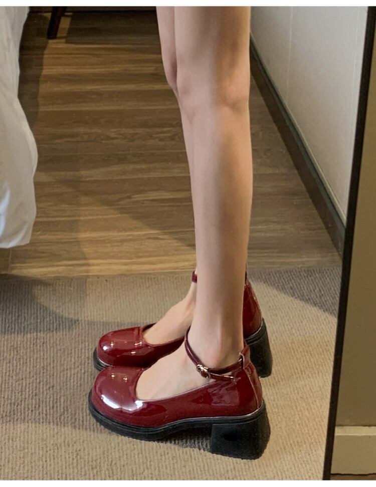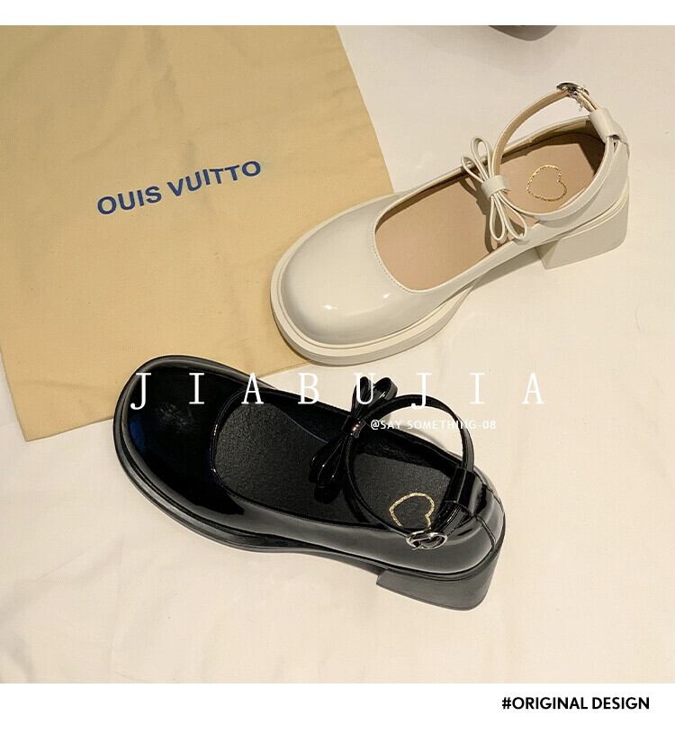 Jia Bufake メリージェーンの靴の女性の 2024 春レトロな甘い多用途の小さな厚いヒールの小さな革の靴 シューズ 大人ガーリー スウィート キュート カジュアル スプリング 春物 レザー jxjxf14762534871