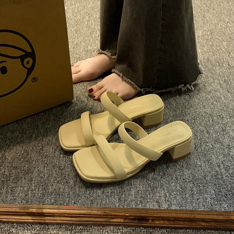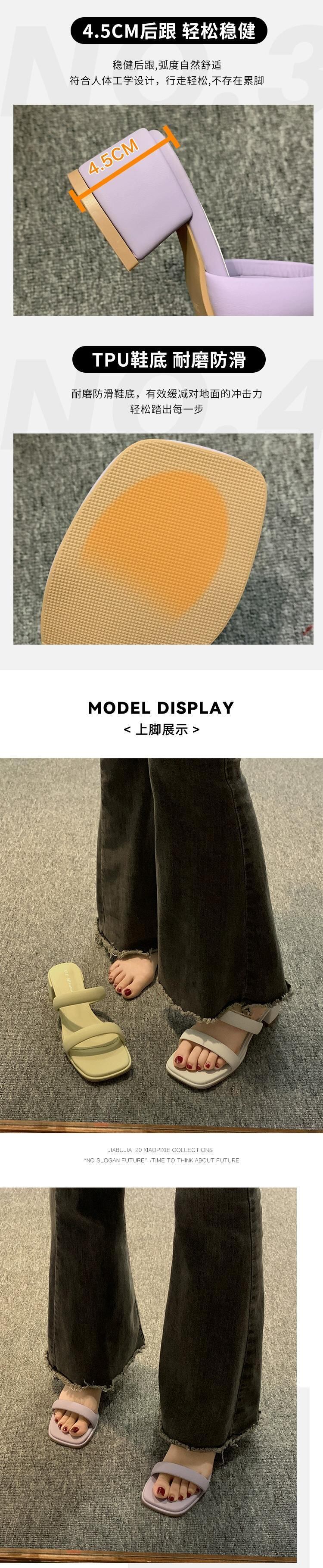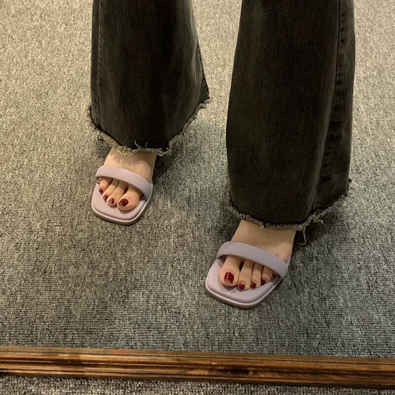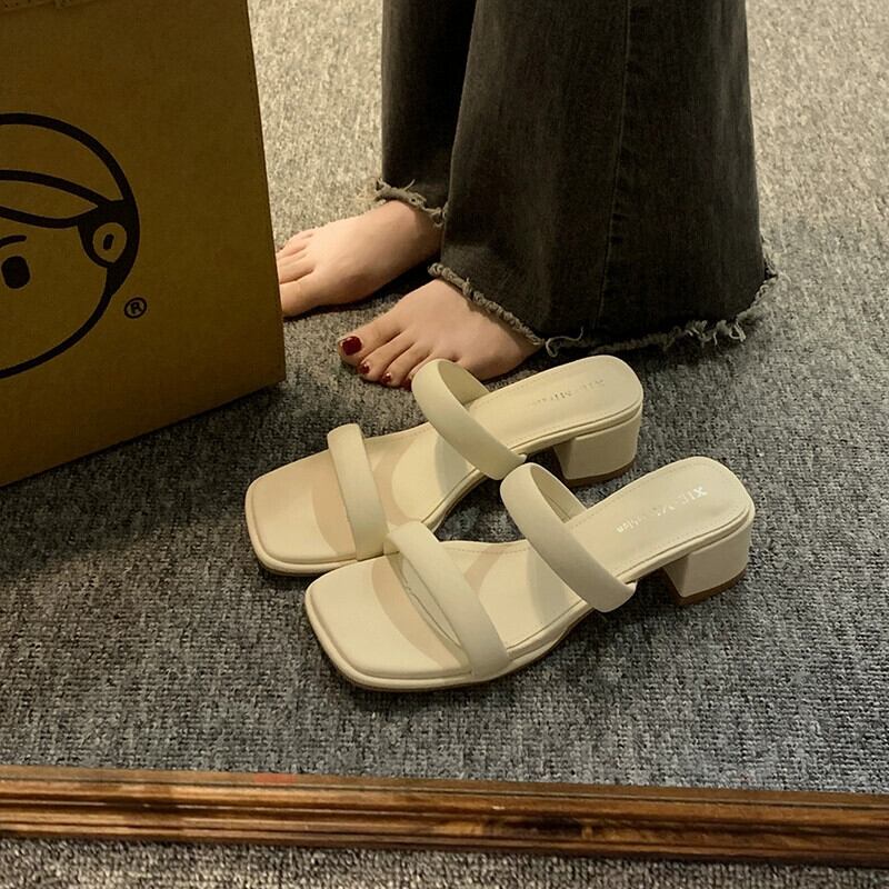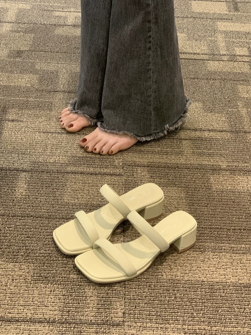 Jia Bujiaはスリッパを履いています。2024春と秋の新しいスタイルのインターネットセレブ多用途のシンプルな気質の太いヒールのワンラインサンダルです。 ミュール 靴 シューズ スプリング 春物 オータム 秋物 jxjxf70311281653