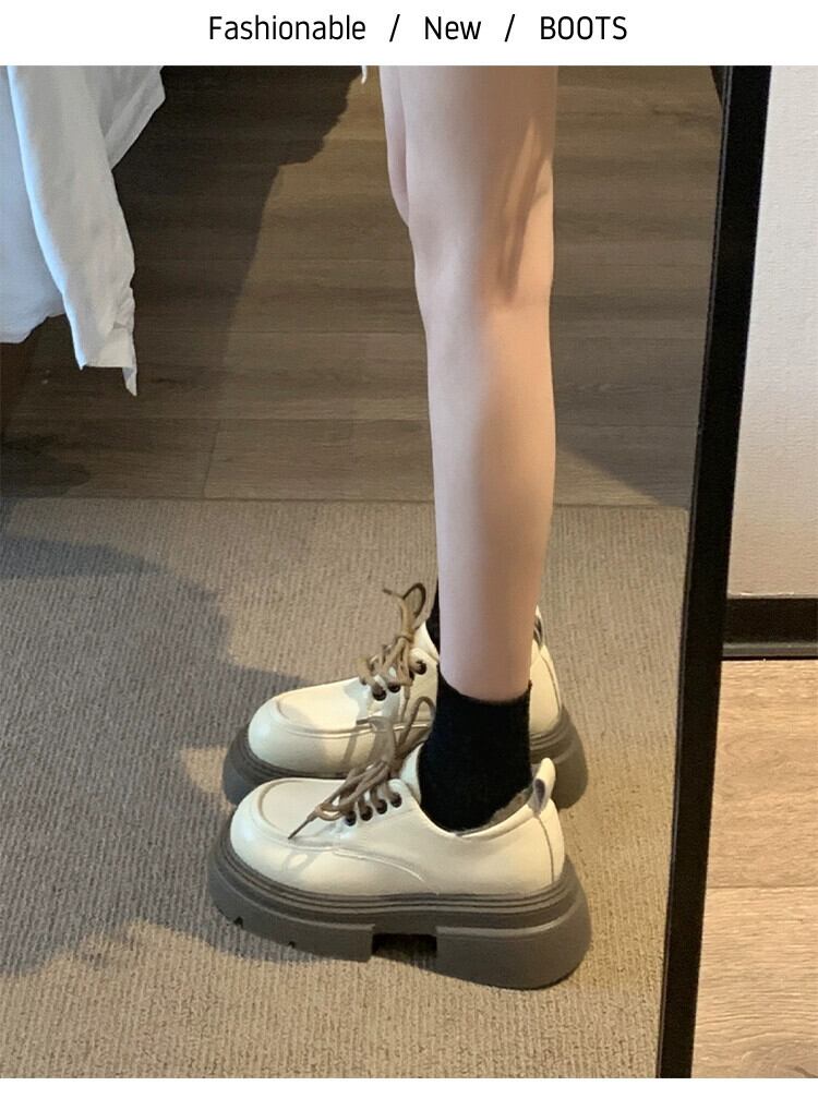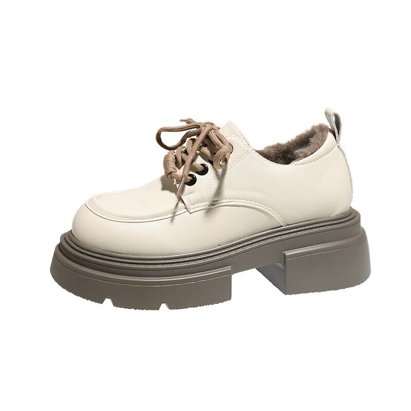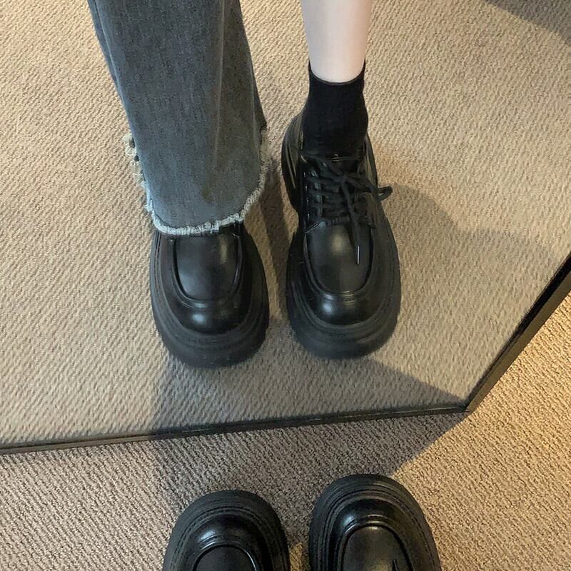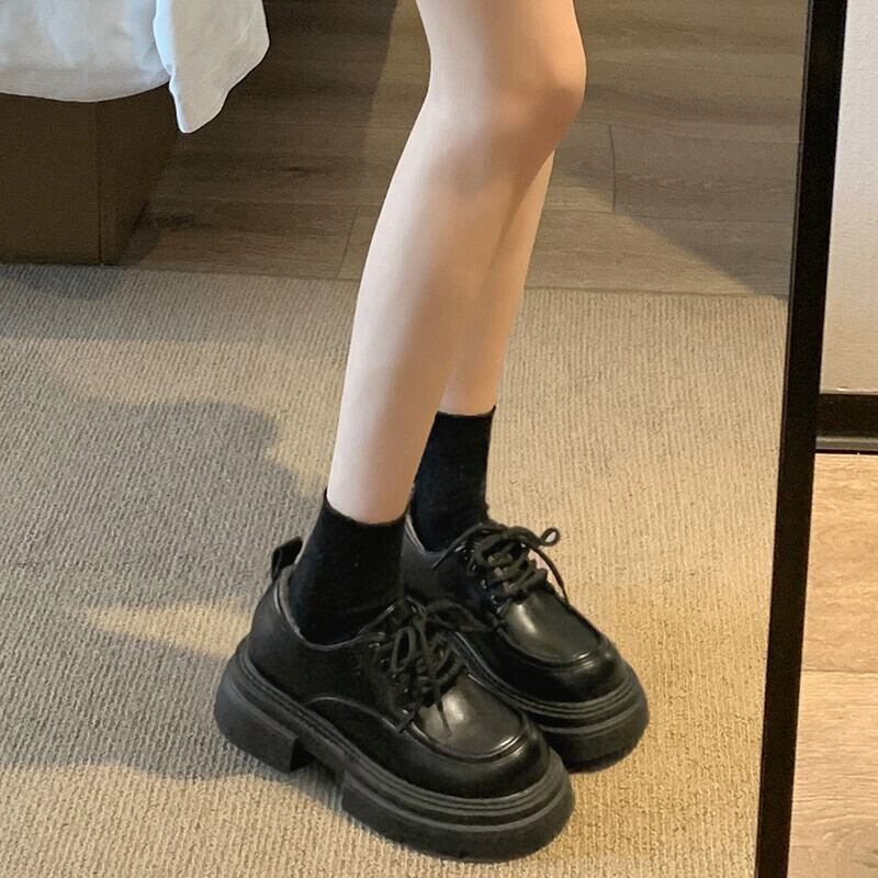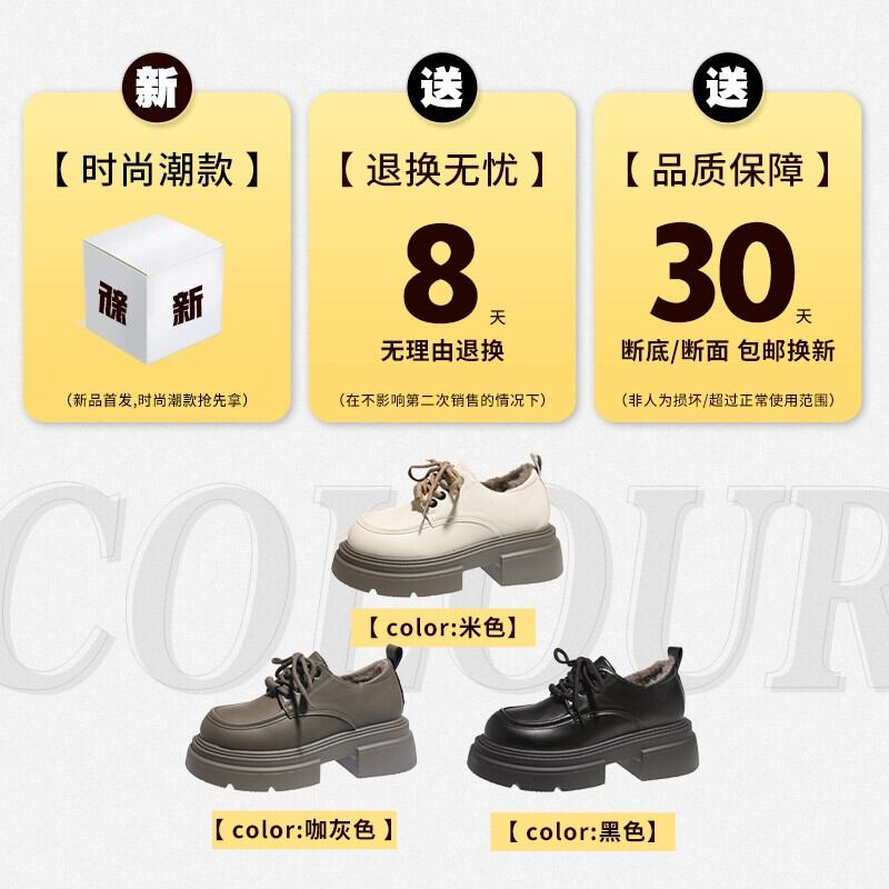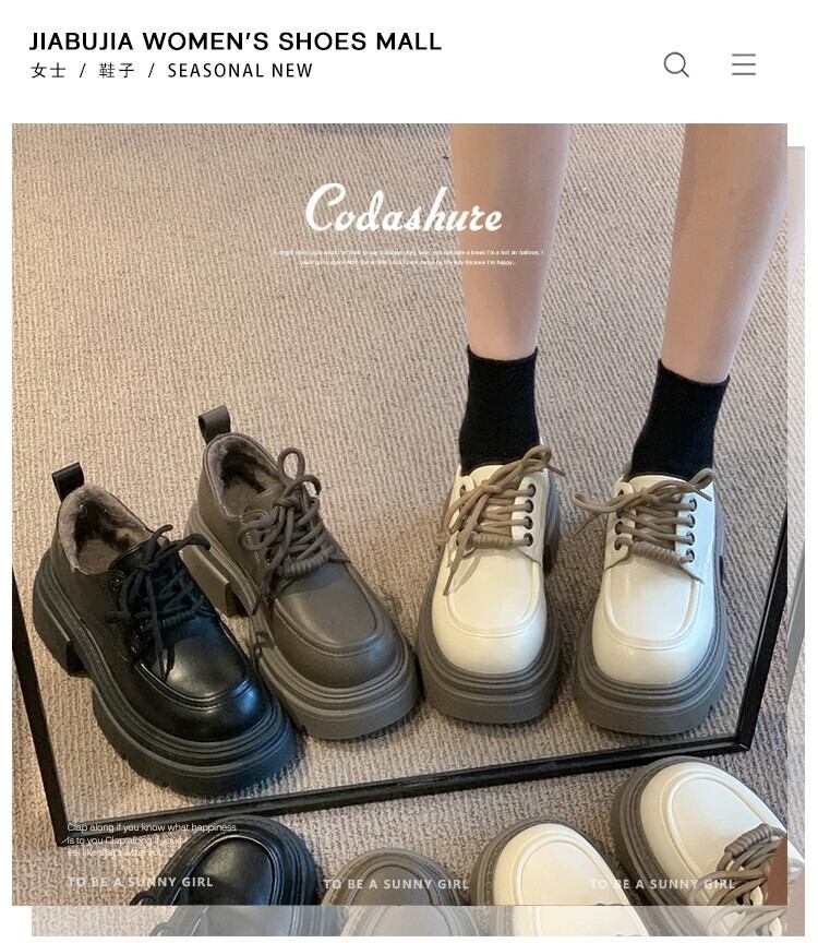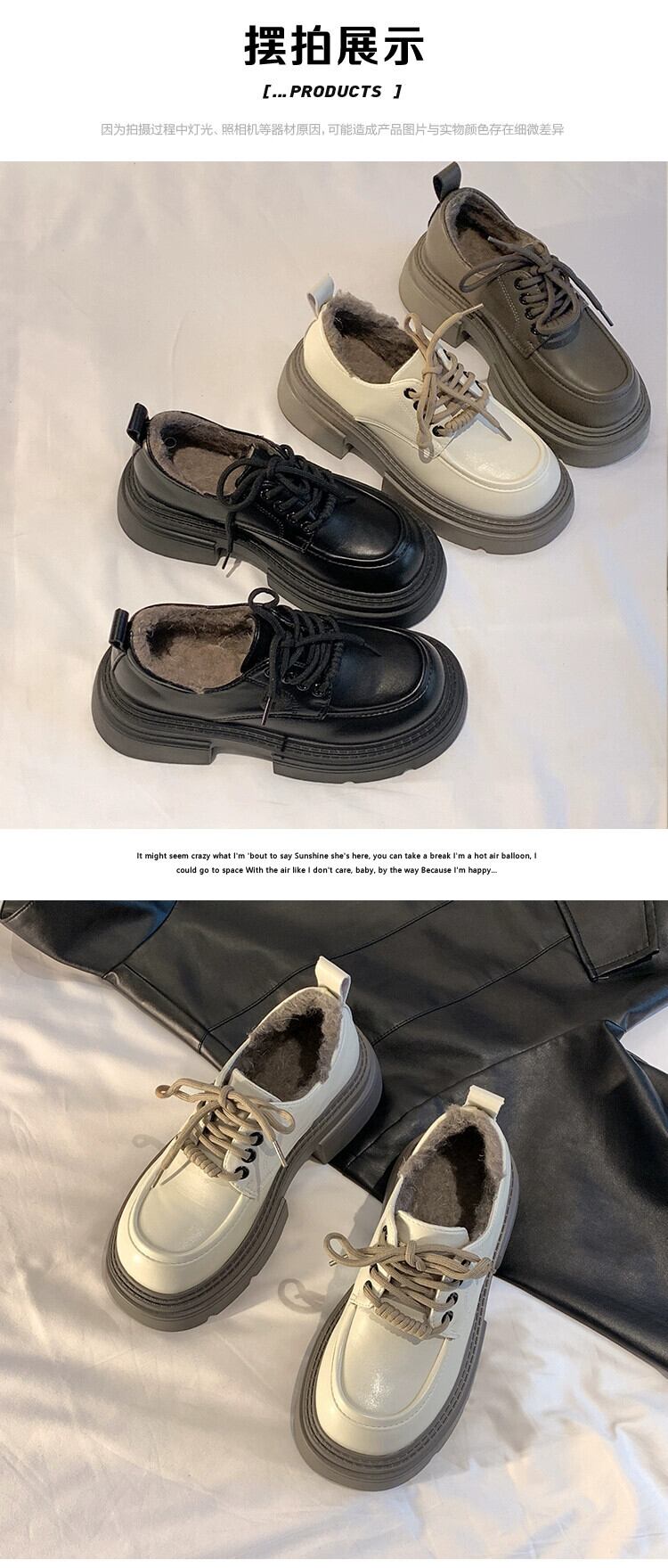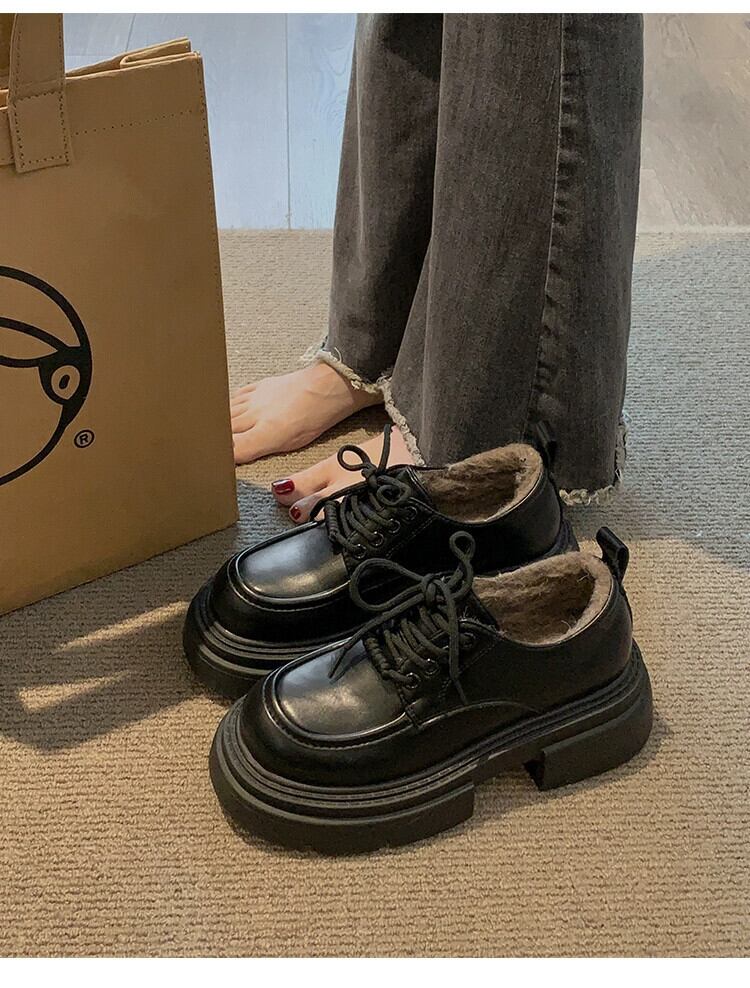 Jia Bufake 小さな革の靴の女性 2023 秋と冬の新しいベルベットの靴黒英国スタイルの厚い底強化ローファー シューズ ブラック オータム 秋物 ウィンター 冬物 レザー jxjxf58427098715