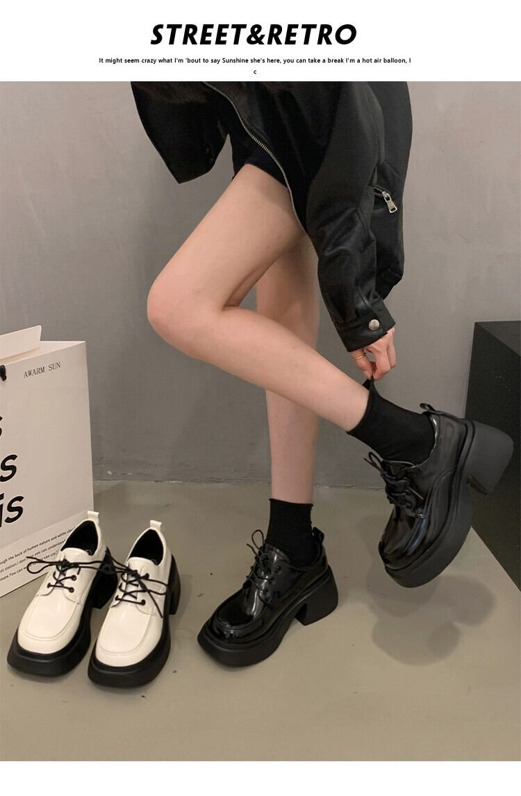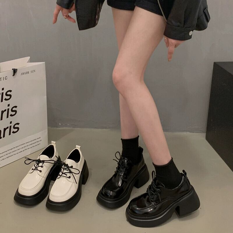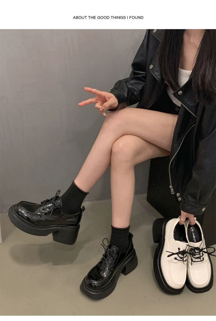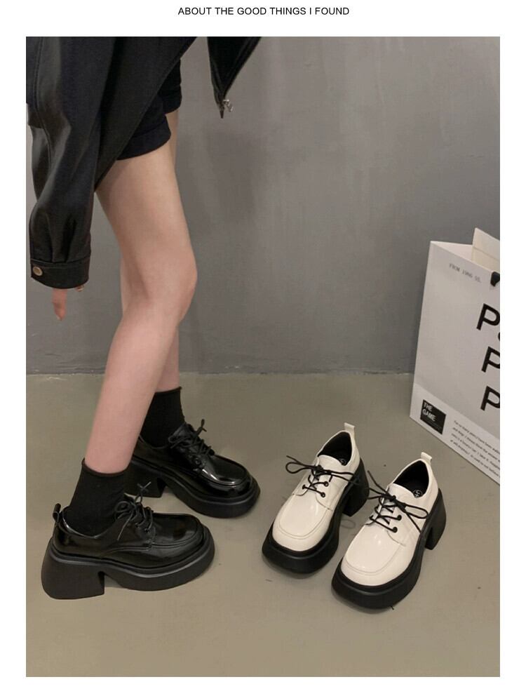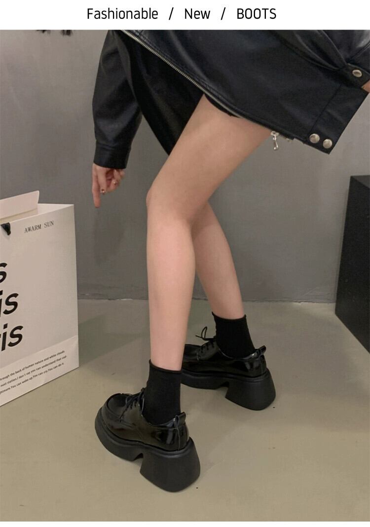 Jia Bujia 英国スタイルの小さな革靴の女性 2023 冬の新スタイルのファッショナブルで多用途な太いヒールスタイルの靴 シューズ ウィンター 冬物 レザー jxjxf46546858174