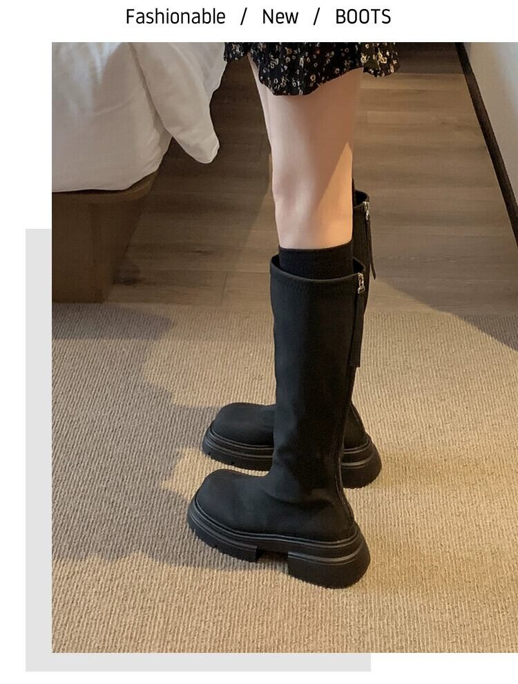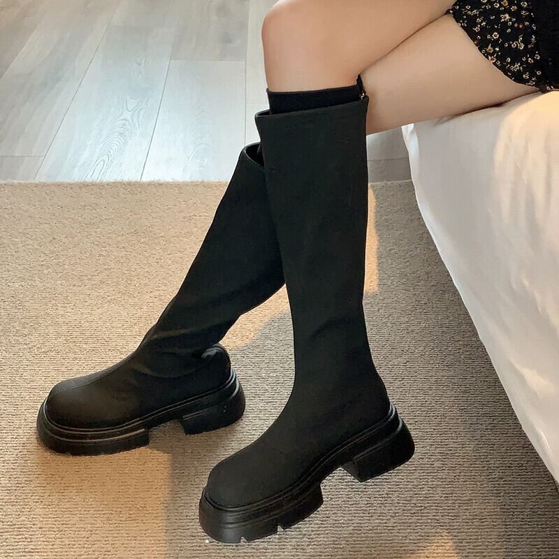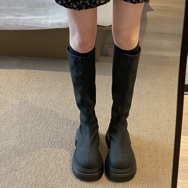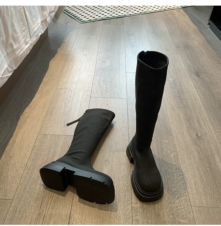 Jia Bufake 厚いヒールブーツの女性 2024 春の新スタイルシンプルで多用途な eign スタイルフレンチ高揚騎士ブーツ 靴 シューズ スプリング 春物 jxjxf52223887738