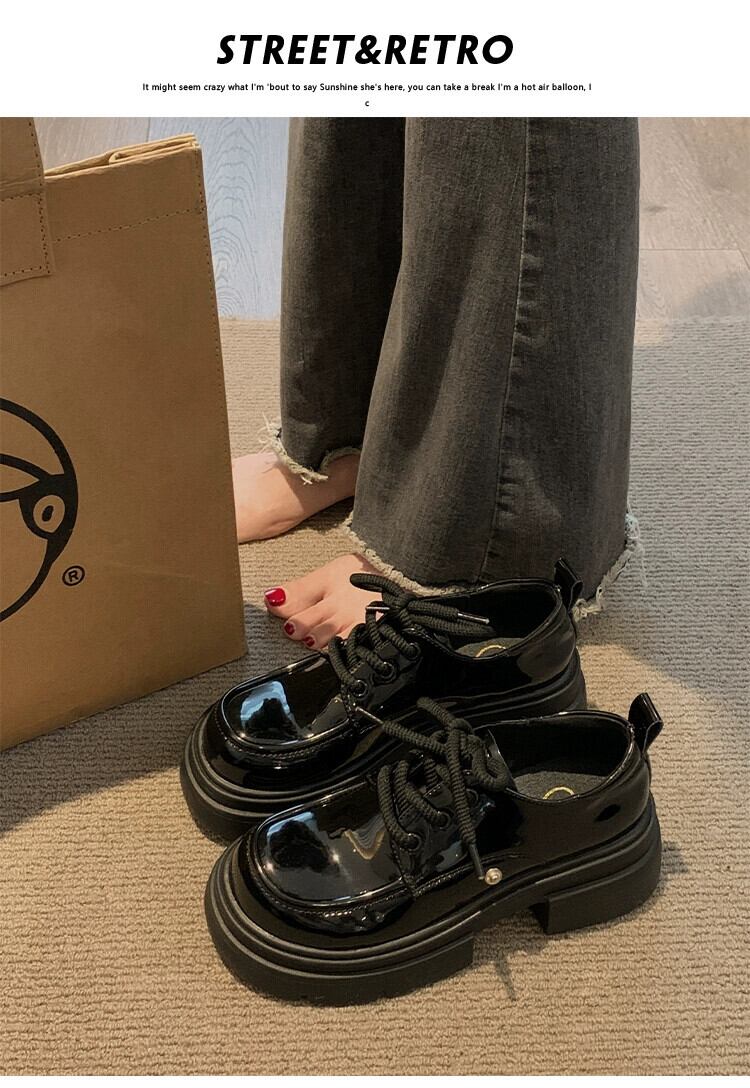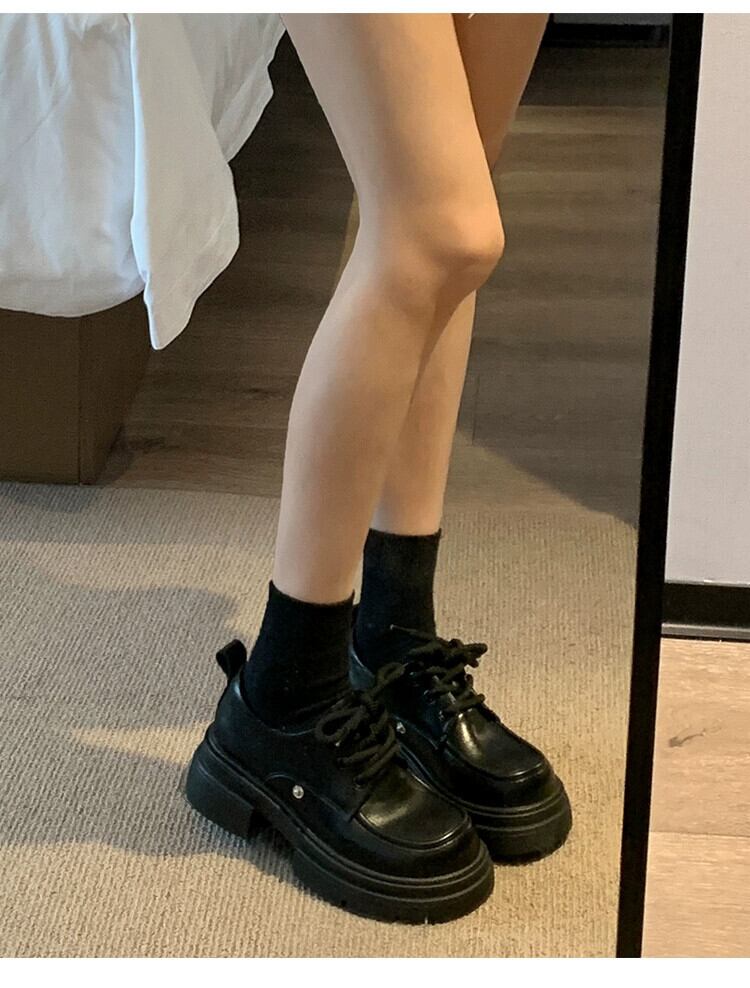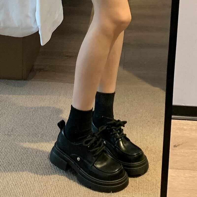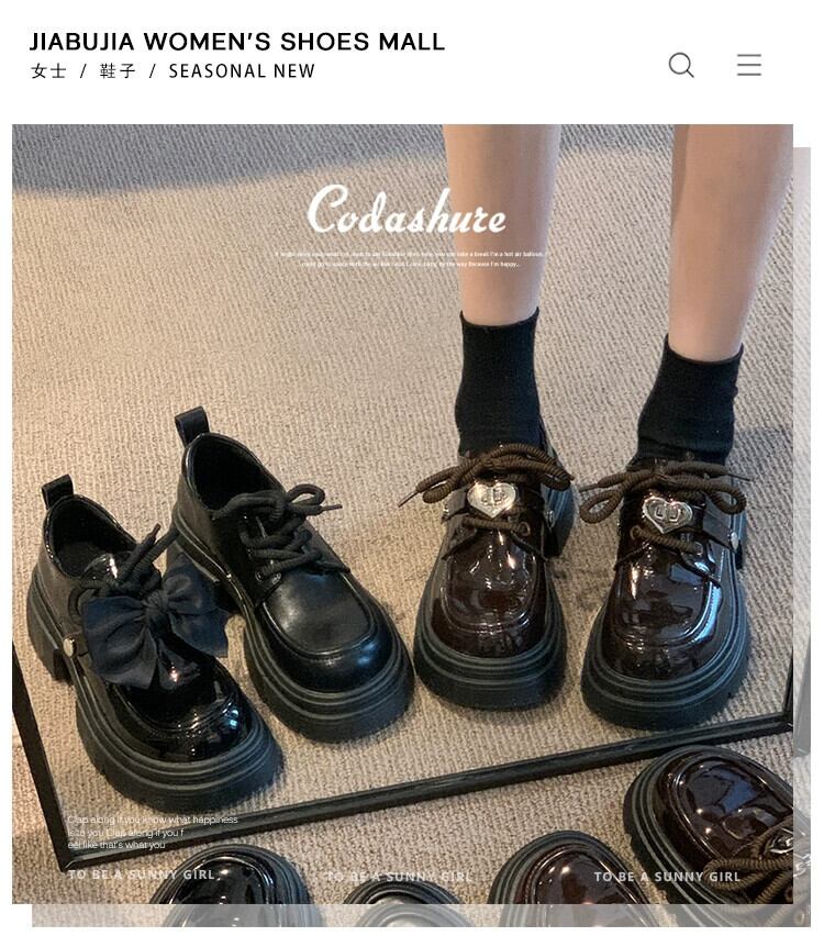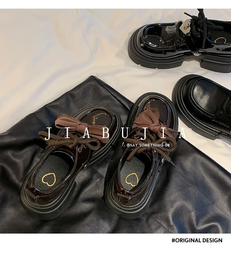 Jia Bujia 冬の小さな革の靴の女性 2023 新しいファッション人気の弓かわいい太いヒール強化シングルシューズトレンド リボン 大人ガーリー スウィート キュート カジュアル ウィンター 冬物 レザー jxjxf58508694301